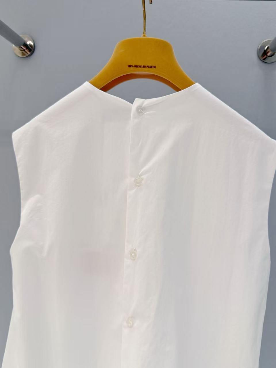 進口純棉府綢複合材質: 嚴選進口等級材質,觸感親膚柔軟,卻同時擁有極佳的挺括度,能撐起立體的背心版型,不會軟塌無神。
