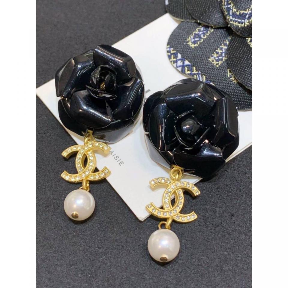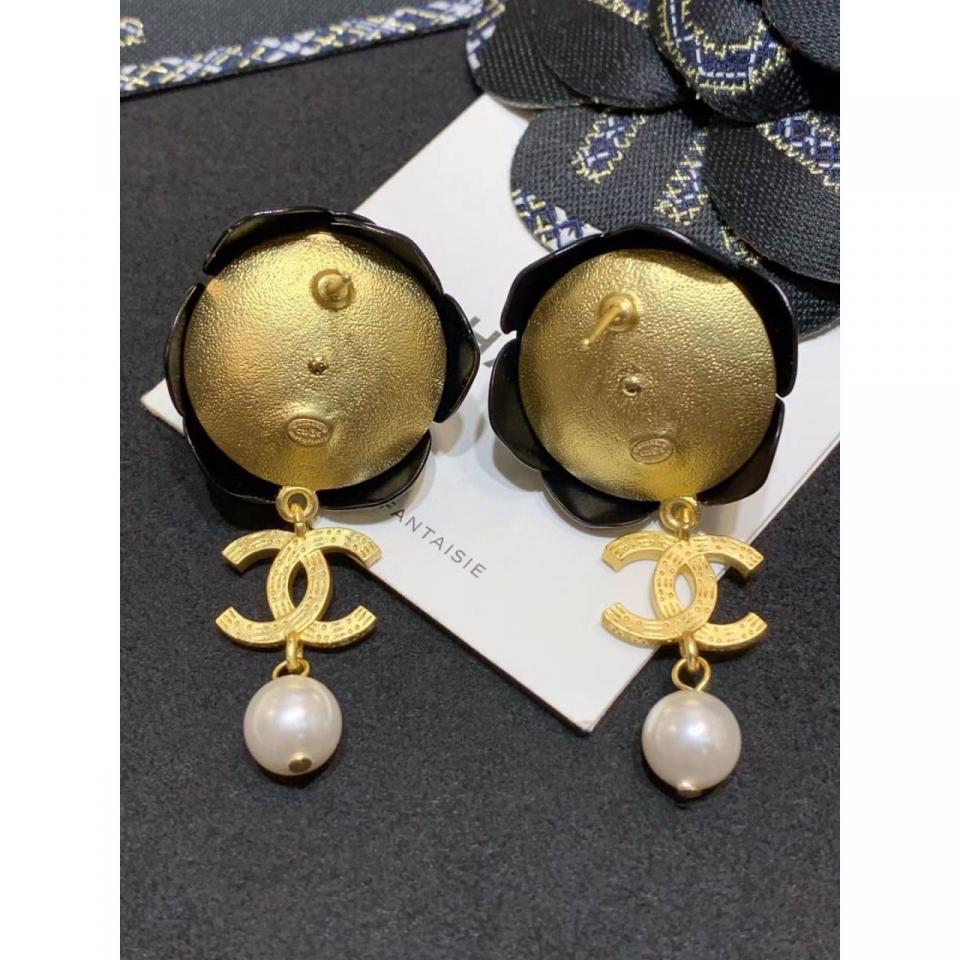 C家山茶花雙C珍珠耳環