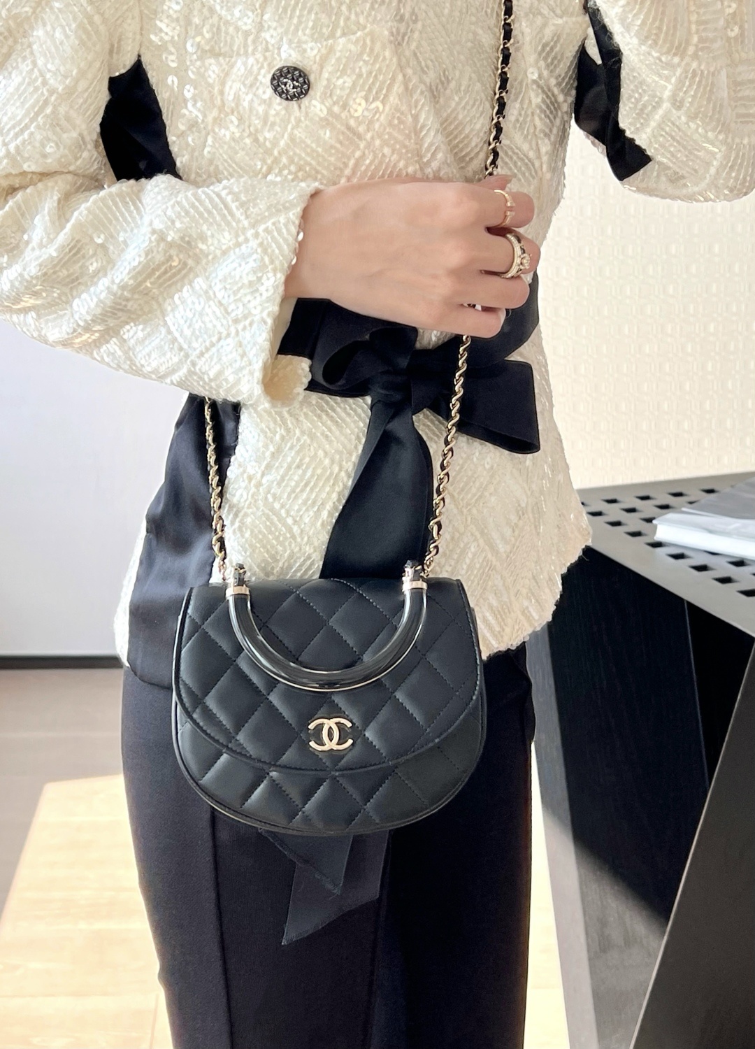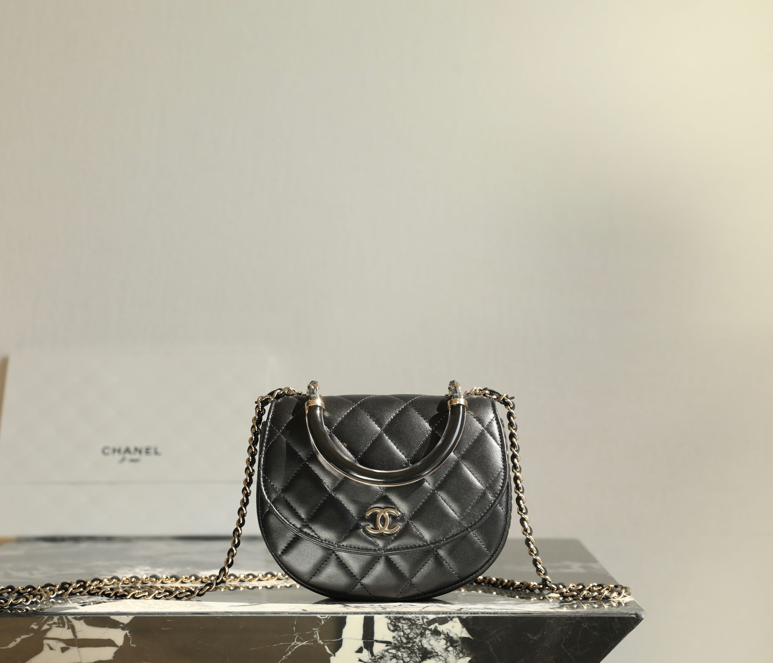2025春夏新款  C家 珐琅彩手柄迷你半圓包,優雅時髦一次擁有!