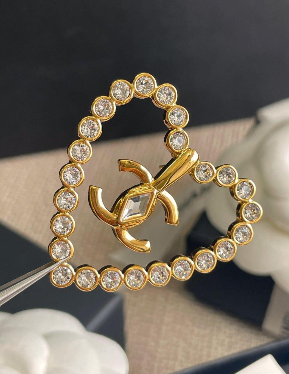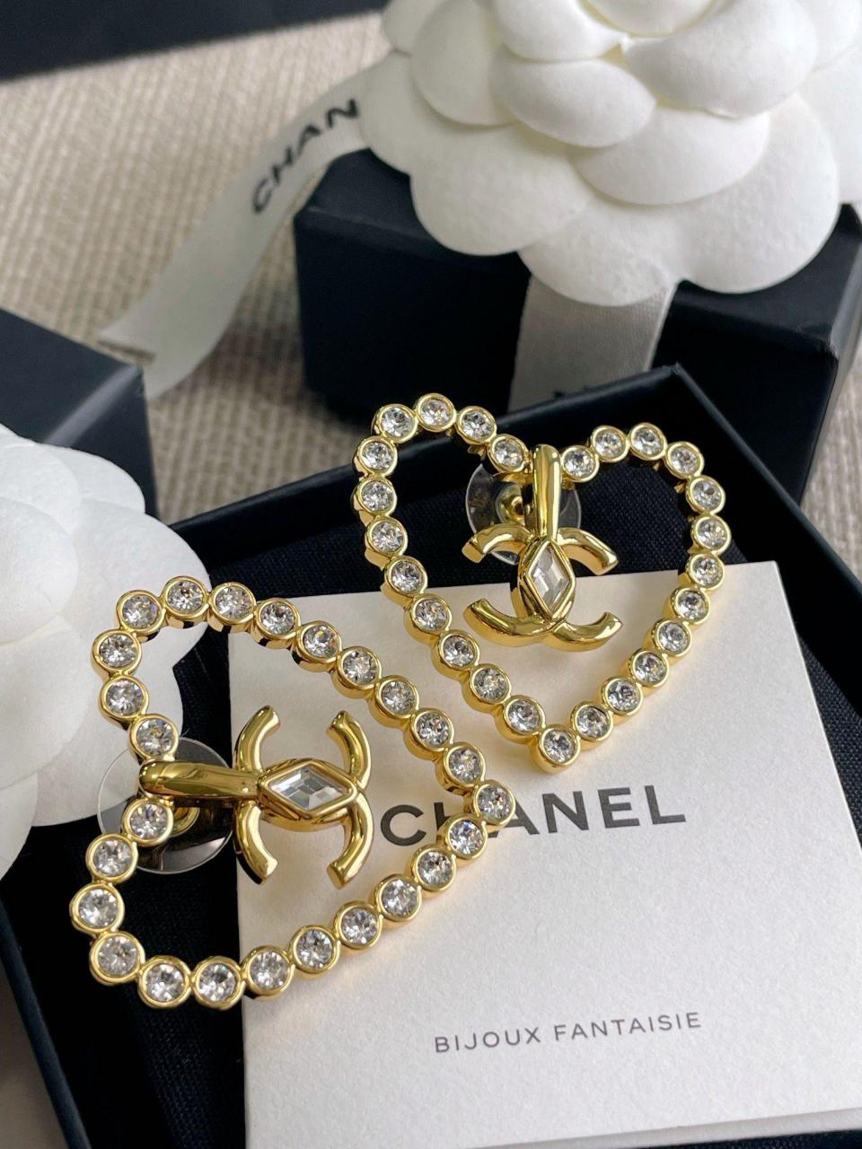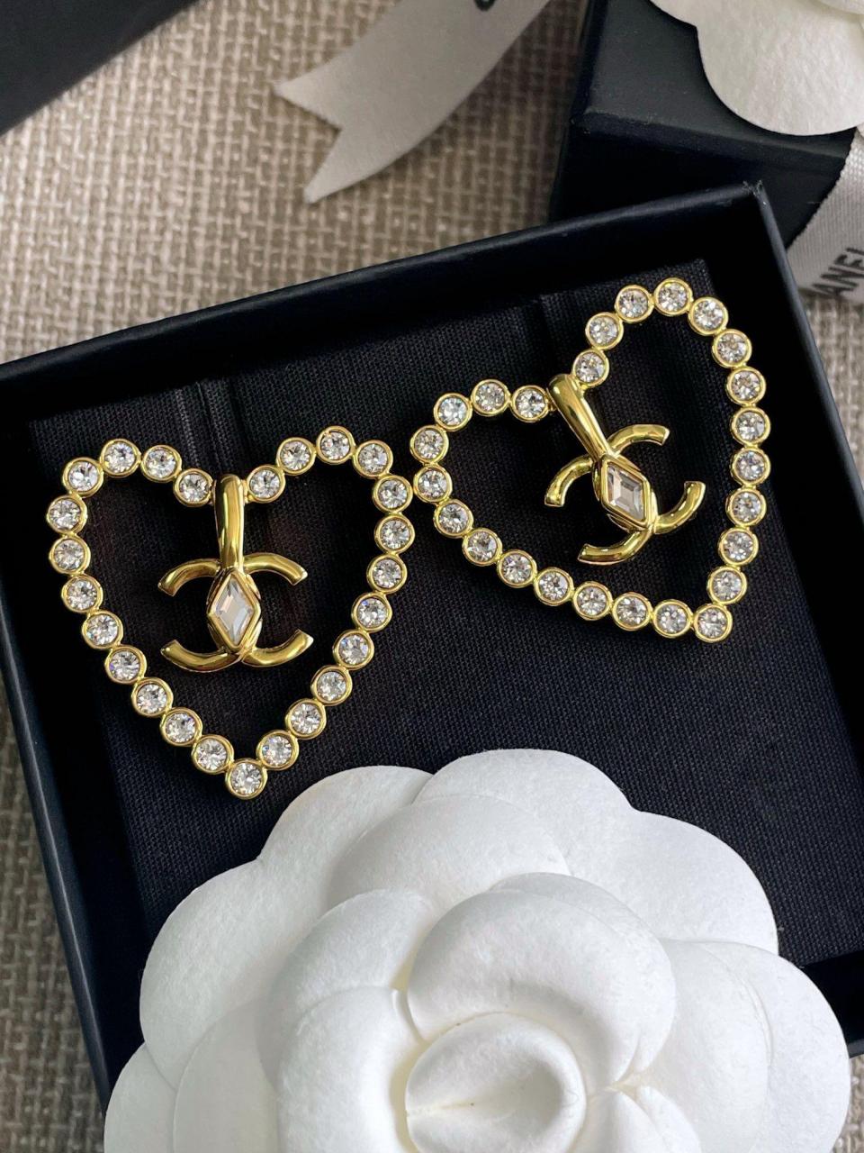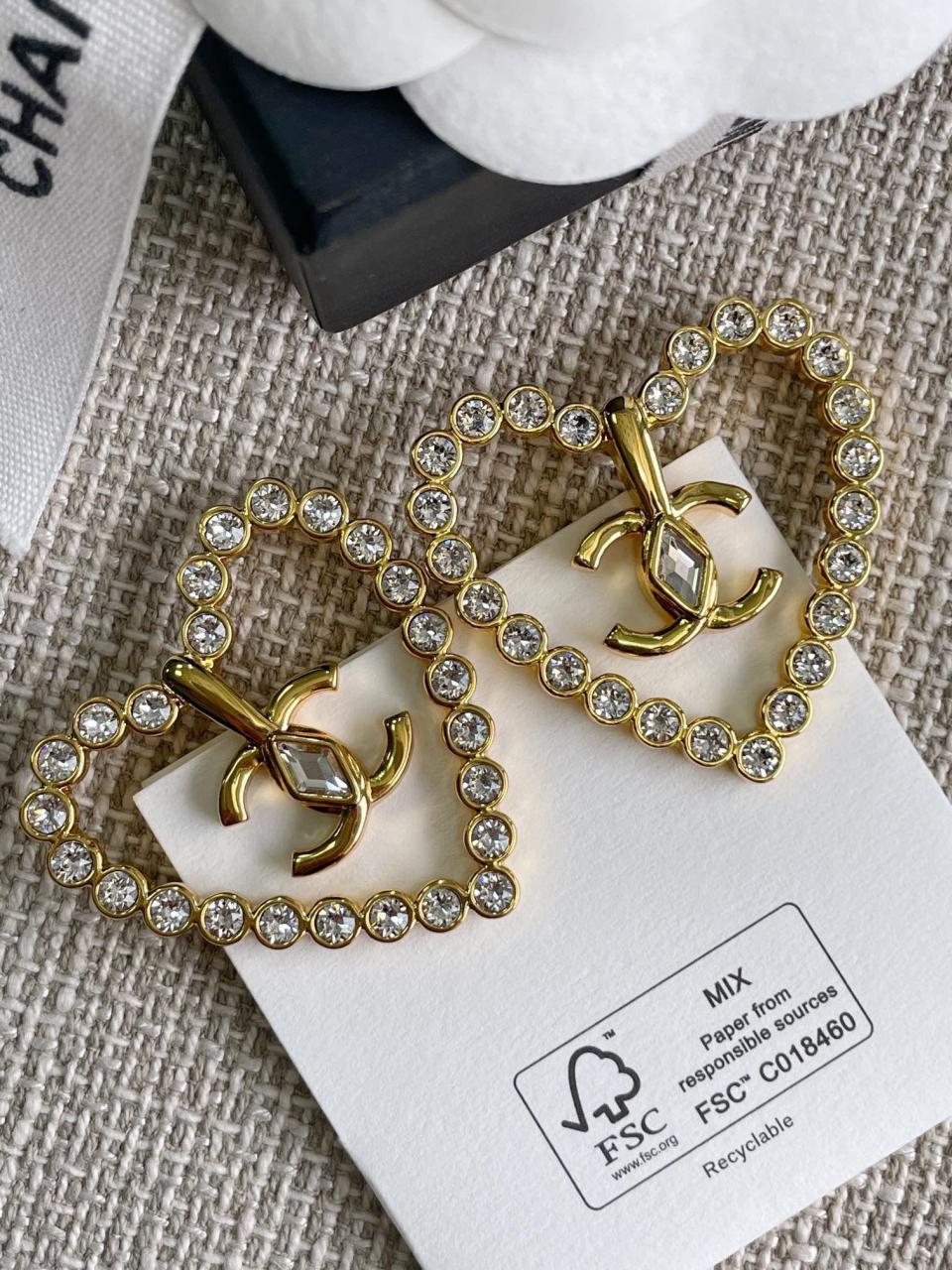 2023春夏 C家菱形水鑽愛心耳環
