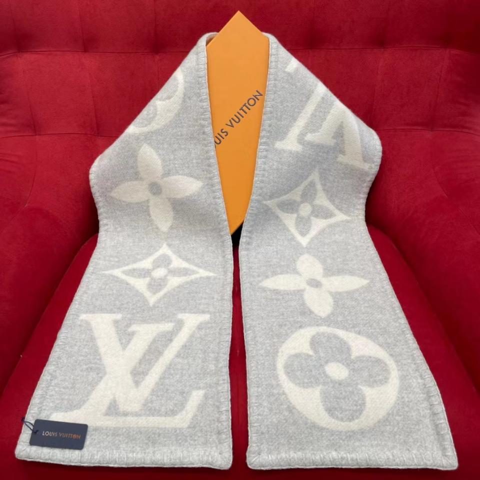 2021秋冬 Sweet Dreams大老花山羊絨圍巾(灰色) 搭配大衣超顯氣質
