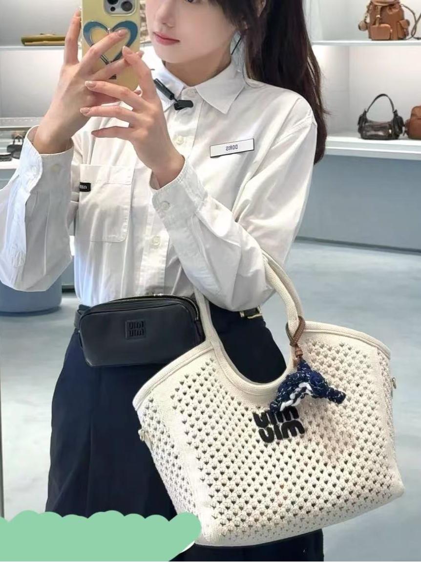 這款Miu家新作|伊勢丹限定款鑲空編織托特包(附長肩帶),真的讓人一眼就愛上!