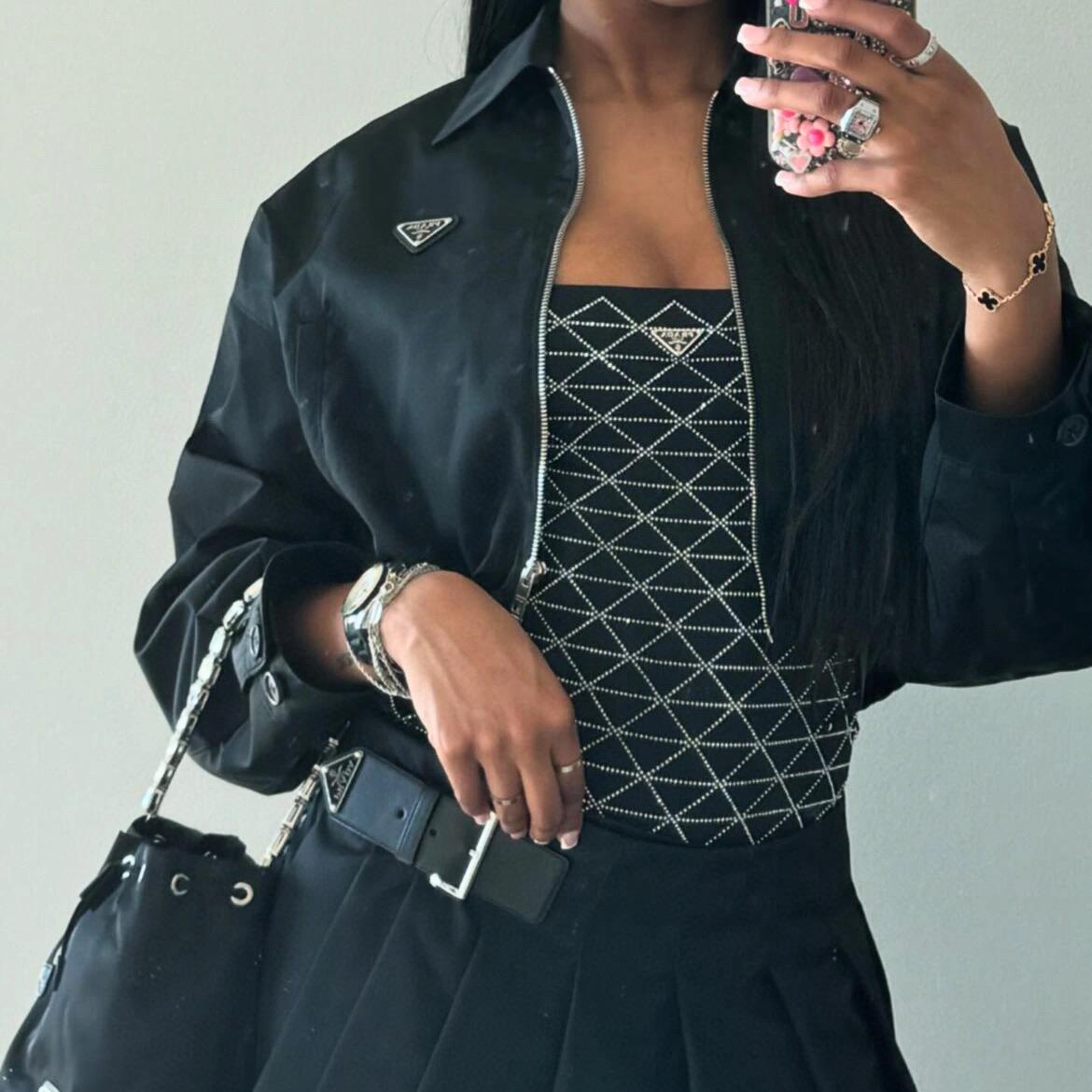 絕對是今年夏天必備的海灘焦點單品!胸前飾有低調卻吸睛的琺瑯彩三角Logo標誌,搭配前後整片定位烫鑽設計,實品光澤度極高,遠看近看都閃耀動人,讓你走到哪裡都是注目的焦點。