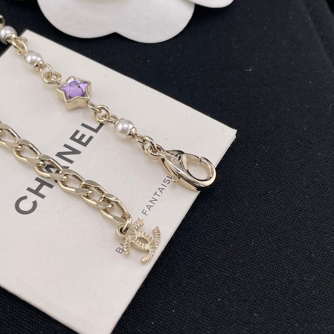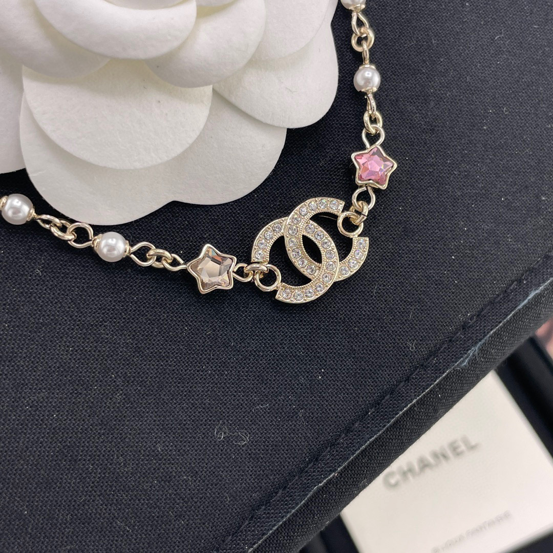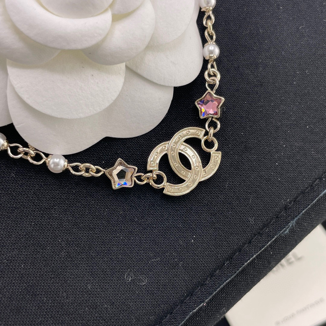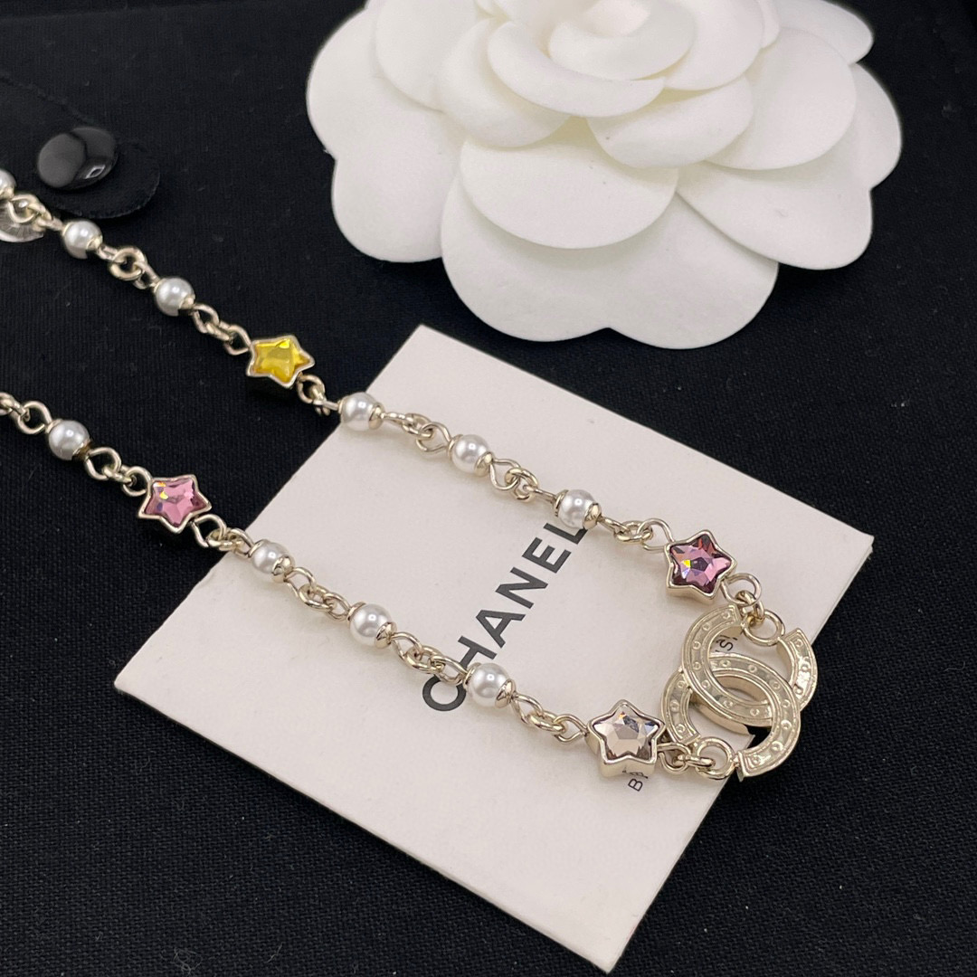 整體設計充滿童趣與精緻的融合感,將經典雙C標誌結合五彩星星元素,展現出既時尚又甜美的氣質。每一顆彩星色調都柔和明亮,讓整條項鍊在光線下閃爍得剛剛好,不浮誇卻非常吸睛。