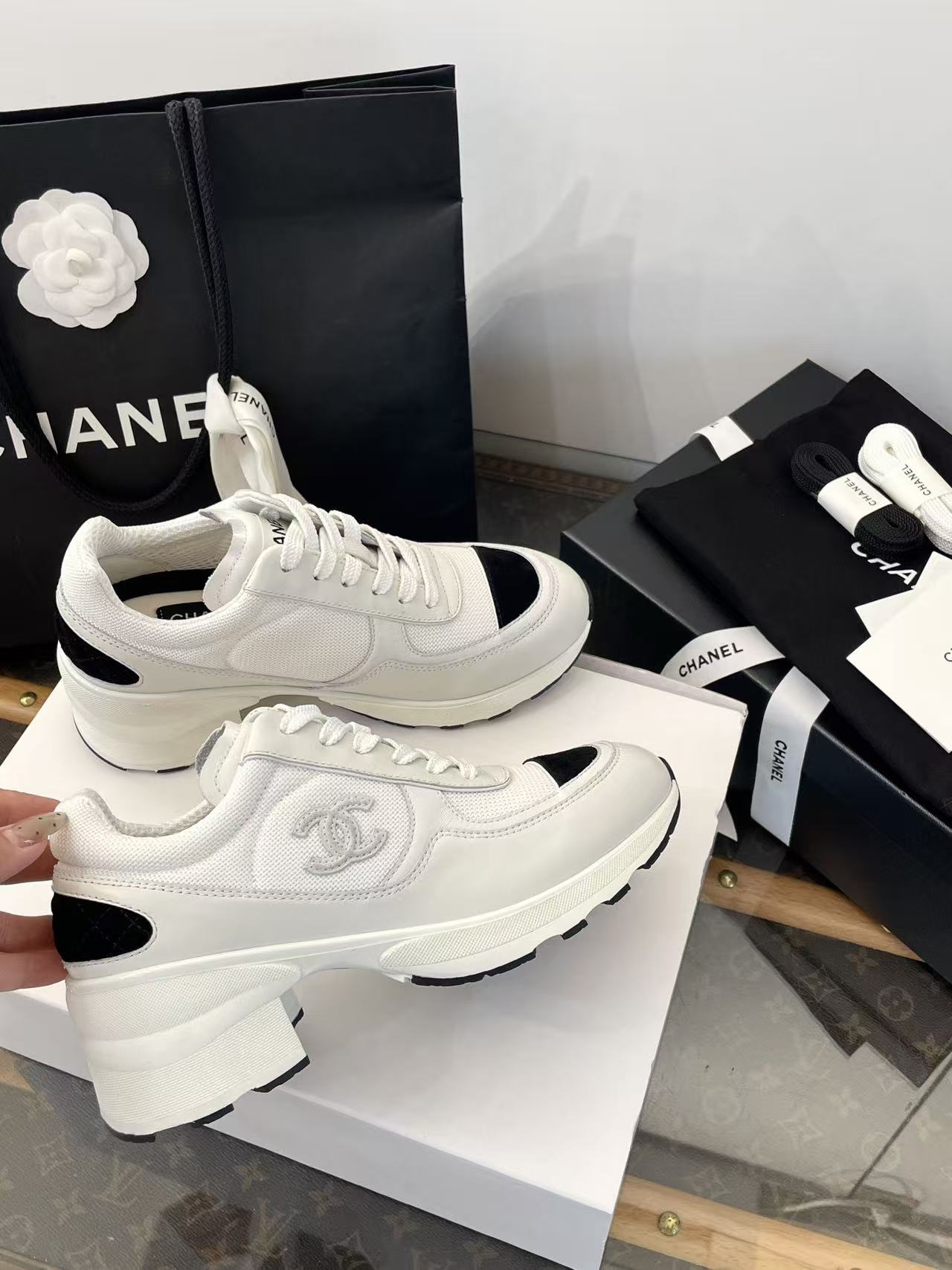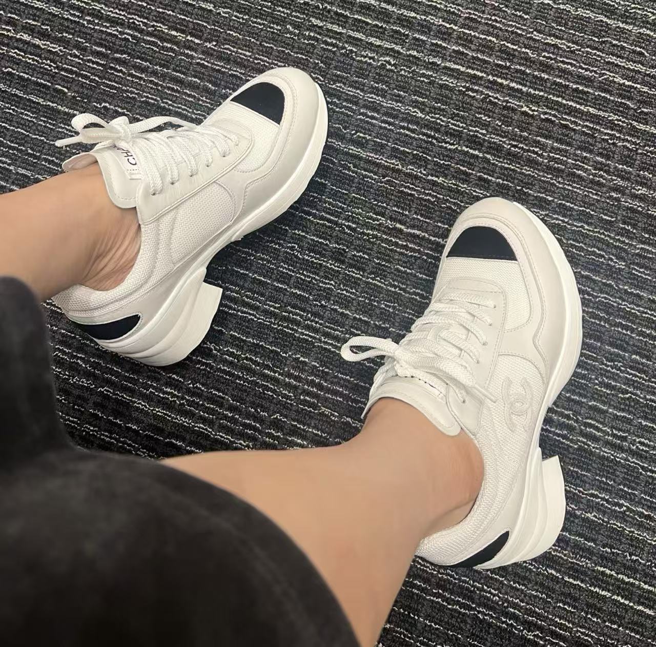這款運動鞋以4cm粗跟厚底為核心,穩健有力、踩地如平底,瞬間拉長腿部線條,穿上直接+5cm視覺身高!鞋型融合運動與高跟元素,線條俐落、版型精準,品牌經典細節點綴鞋面,低調閃耀。隨鞋贈送鑽石襪子,水鑽閃爍、質感滿分,輕鬆提升整體造型的華麗度。無論是日常逛街還是派對約會,這雙鞋都能讓你走路帶風,氣質與個性兼得!