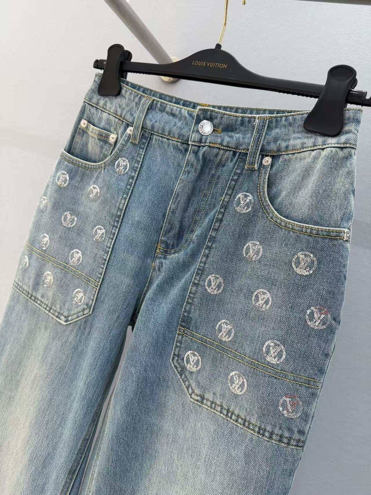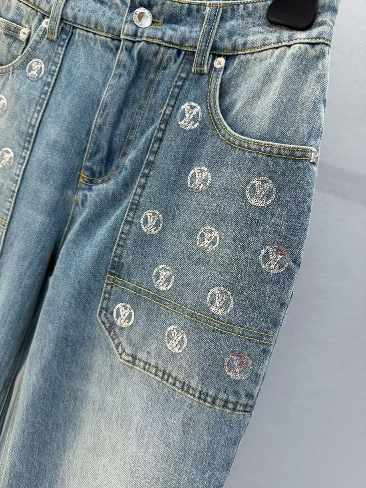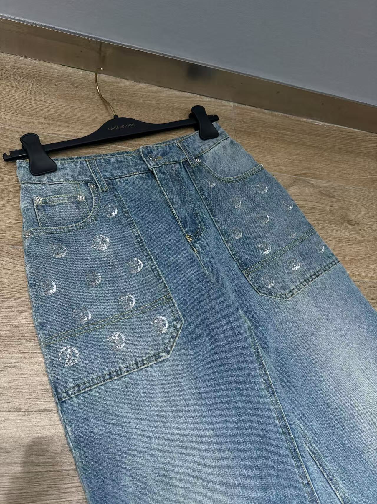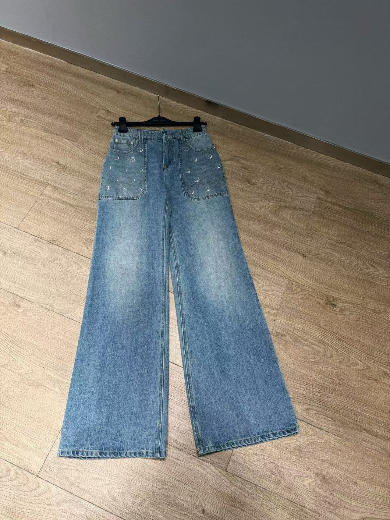 2025早秋 L家 銀色亮片闊腿牛仔長褲