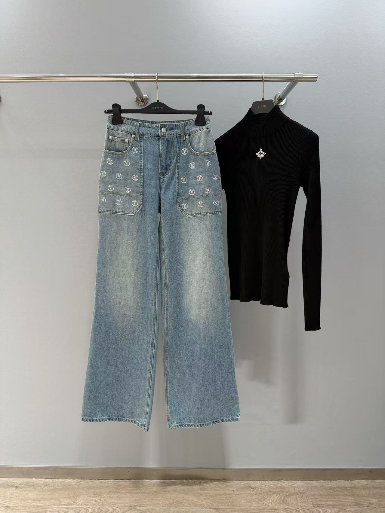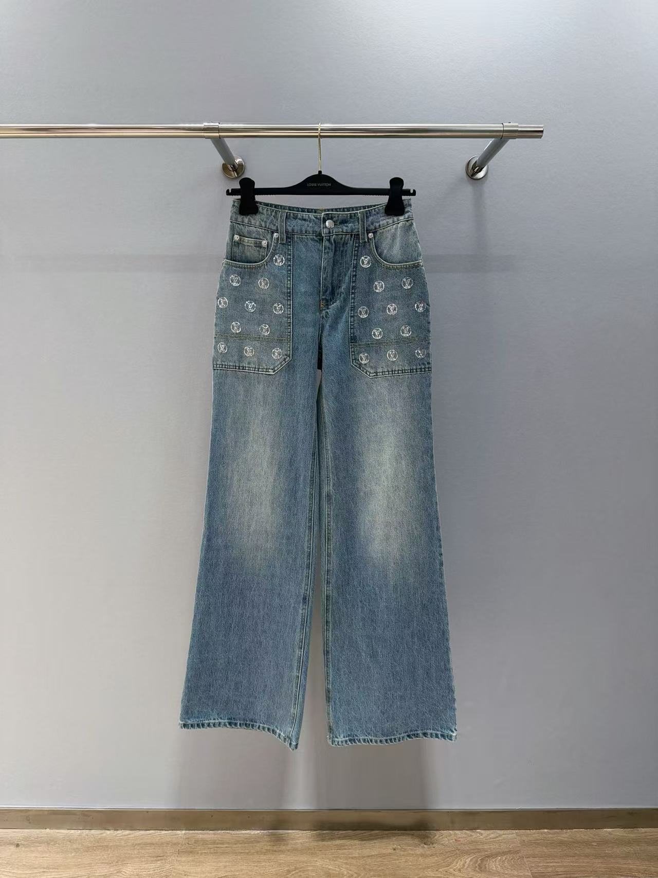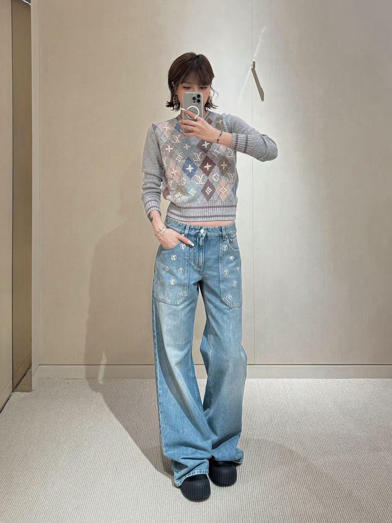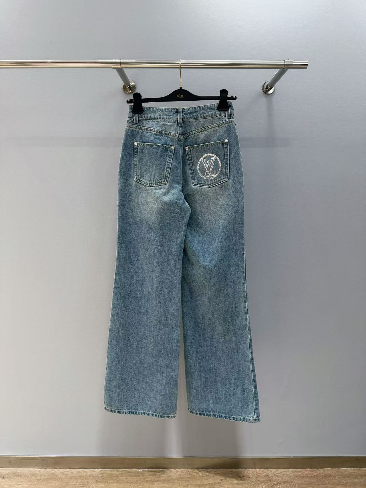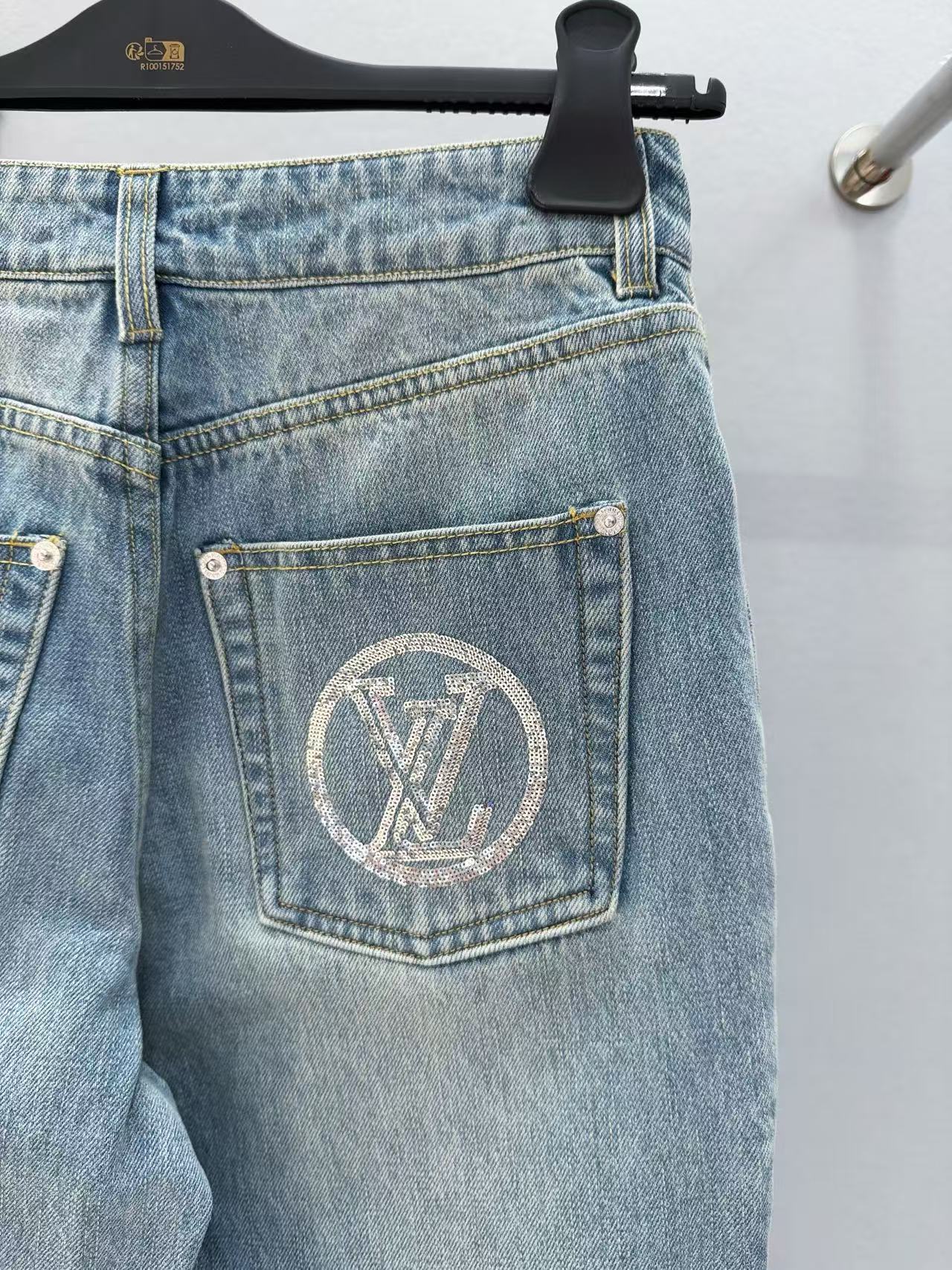2025早秋 L家 銀色亮片闊腿牛仔長褲