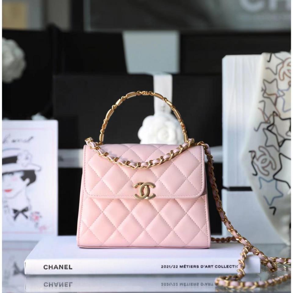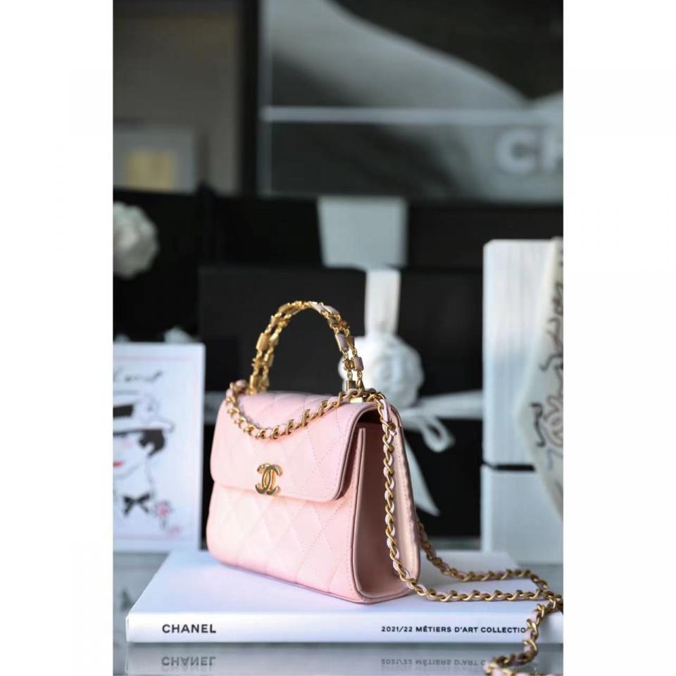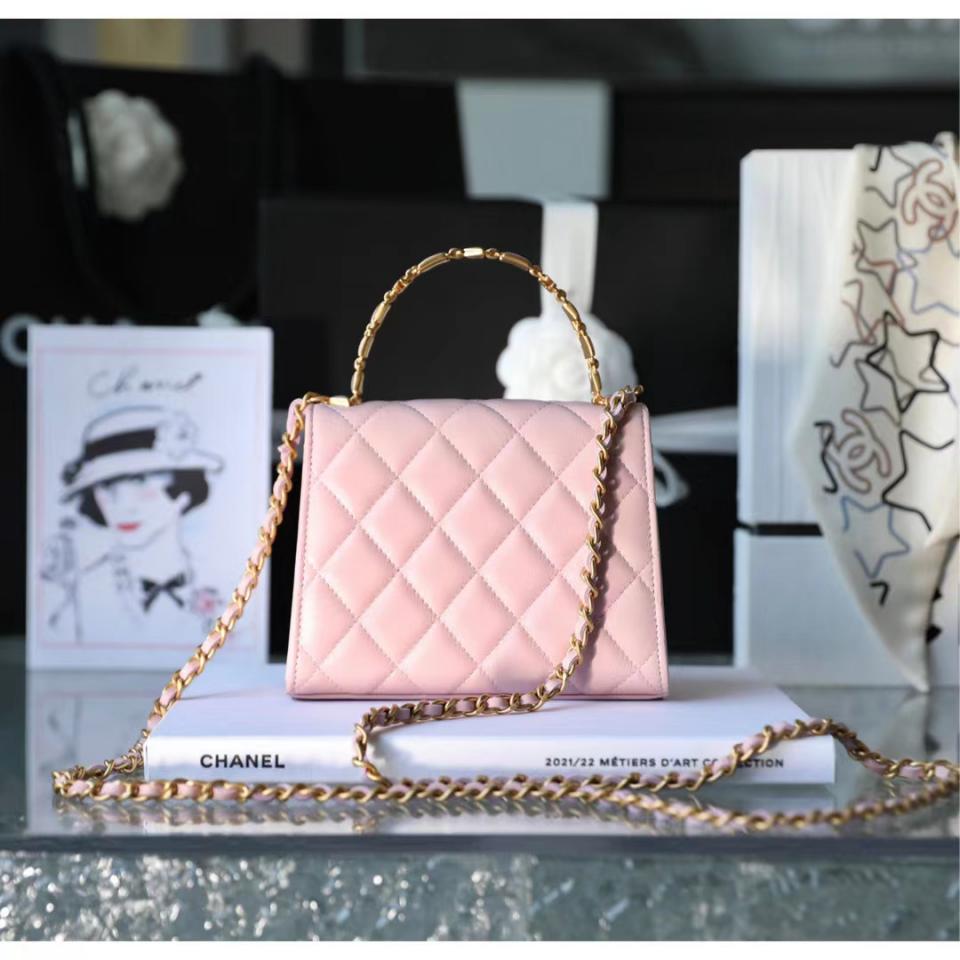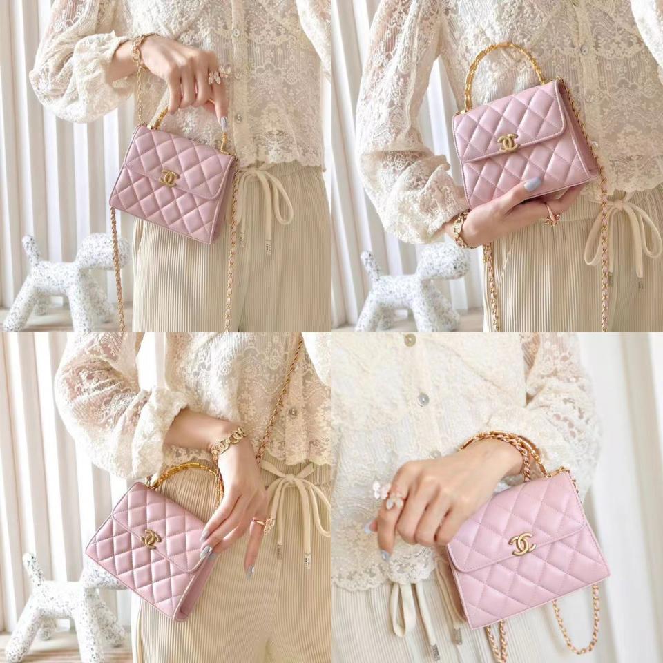 2022秋冬新品 琺瑯手柄鏈條口蓋包(粉色中號) 這一季出的款太好看啦