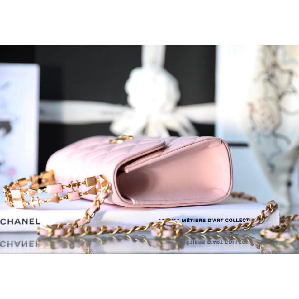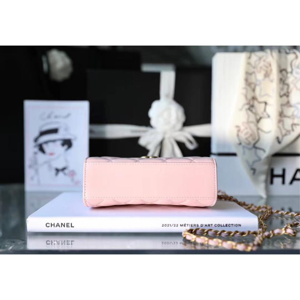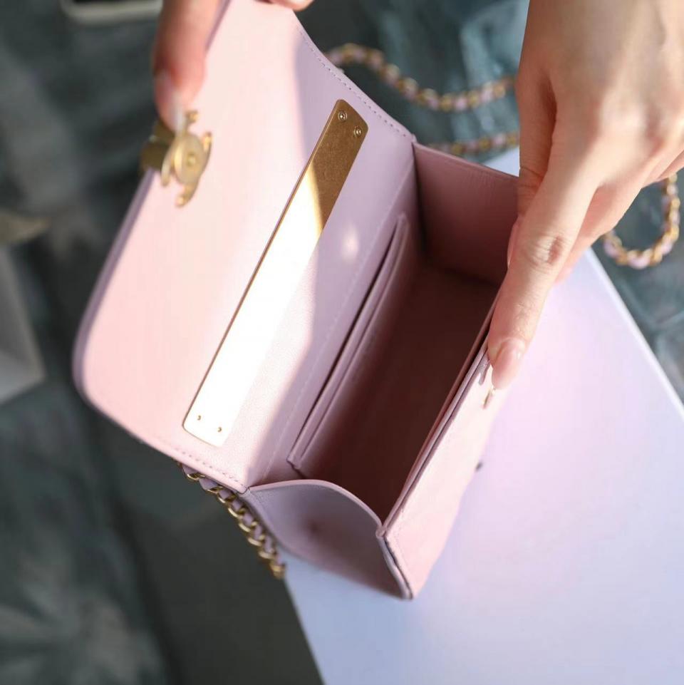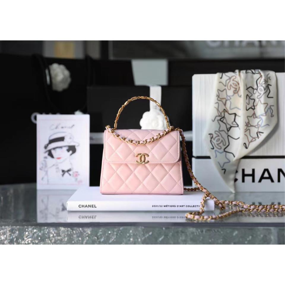 2022秋冬新品 琺瑯手柄鏈條口蓋包(粉色中號) 這一季出的款太好看啦