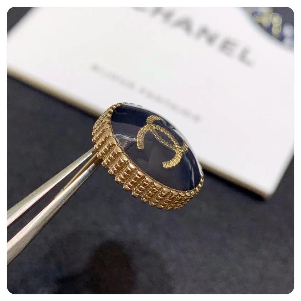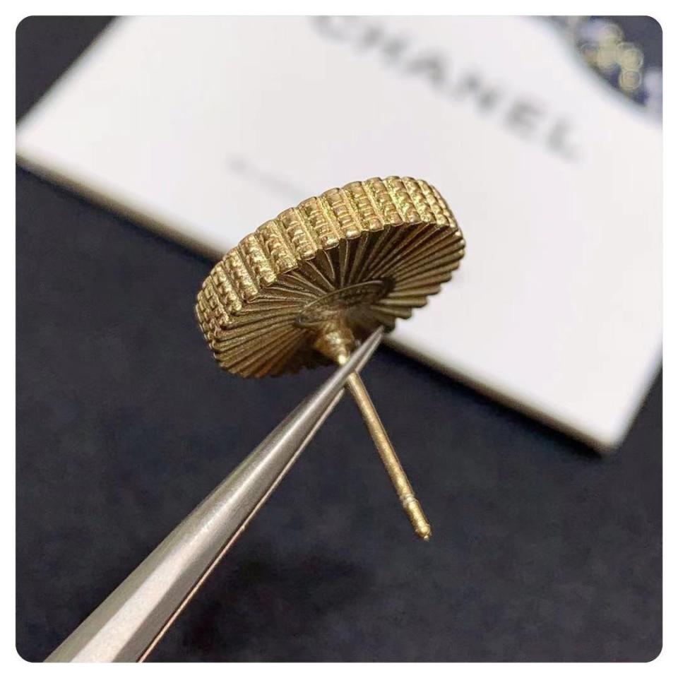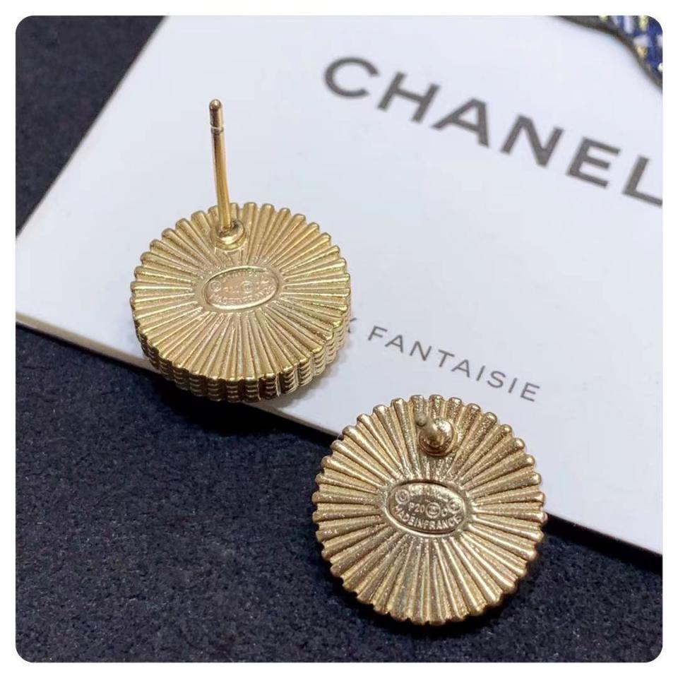精美的一對耳釘,圓形鈕扣款,側邊和背面全為手工拉絲工藝,黑藍色琺瑯搭配金色,非常復古好搭