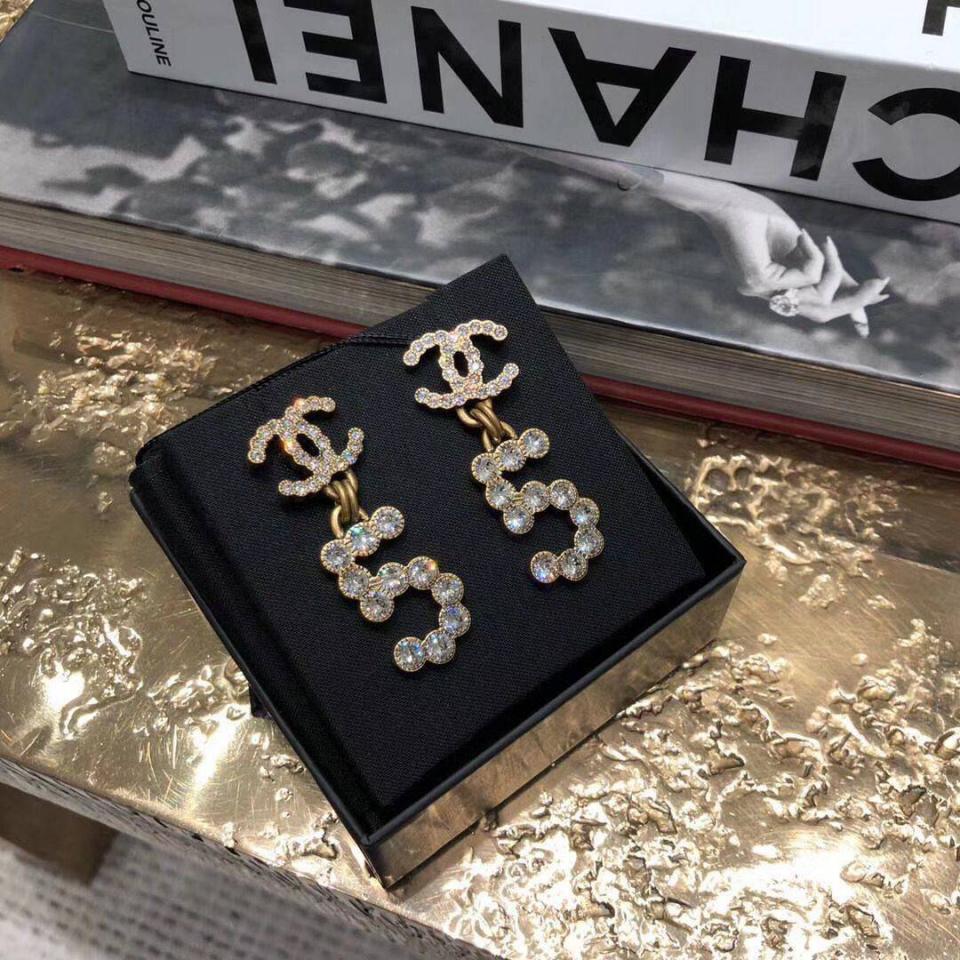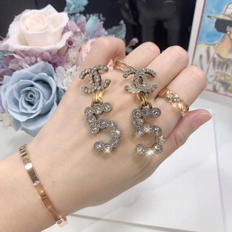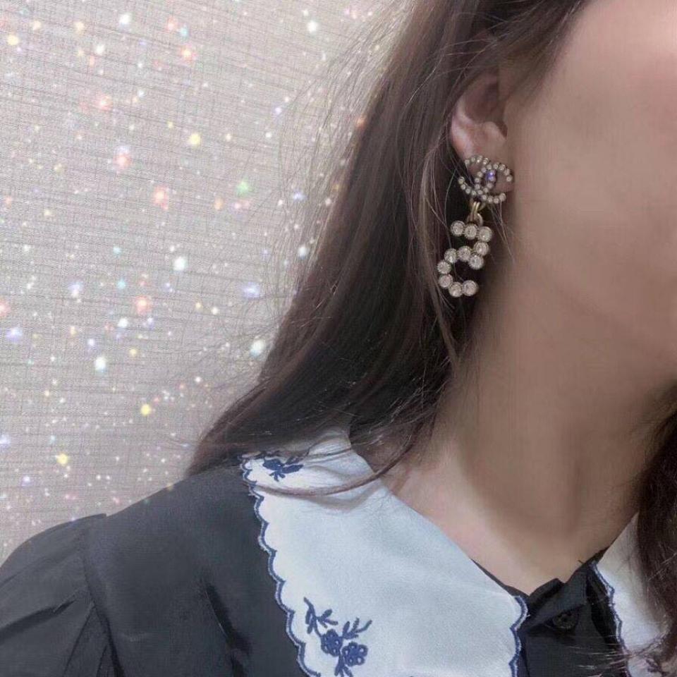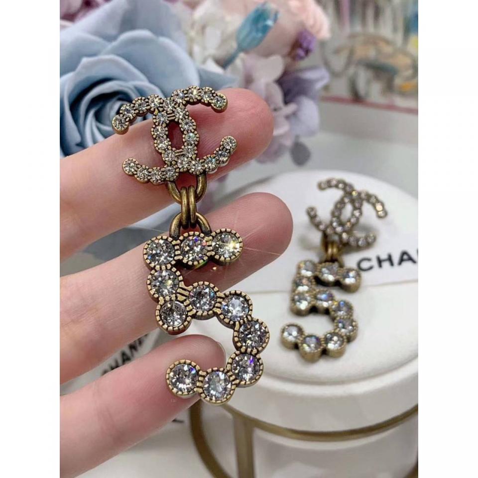 20新款 復古金吊5字水鑽耳環 上耳非常好看