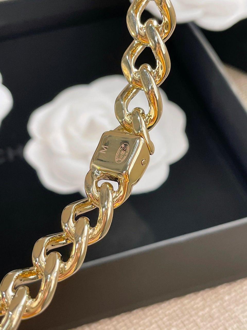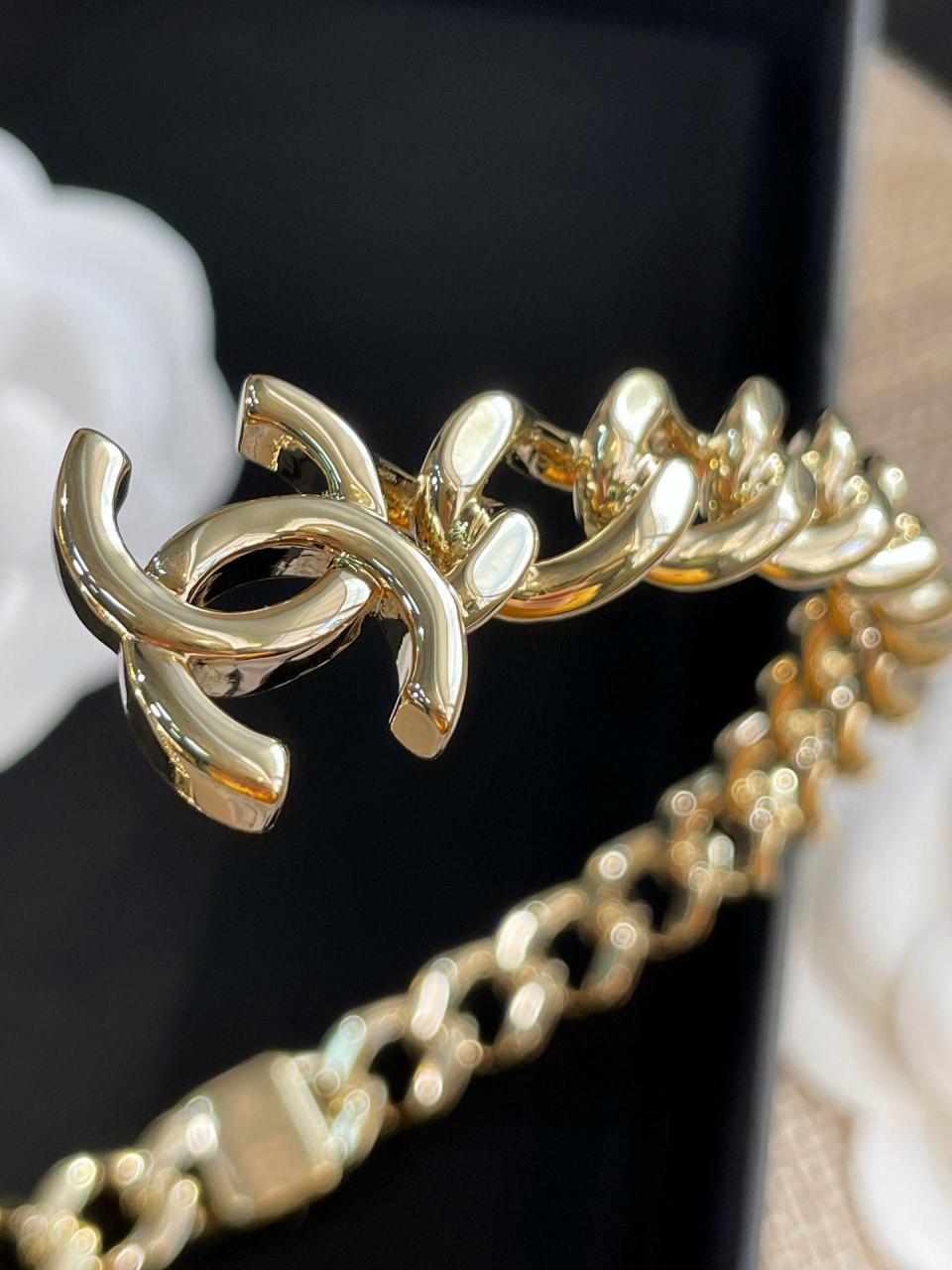《尺寸規格》雙C寬約2CM,高約1.5CM,鏈條寬約1.1CM,項圈內環直徑約10.3CM