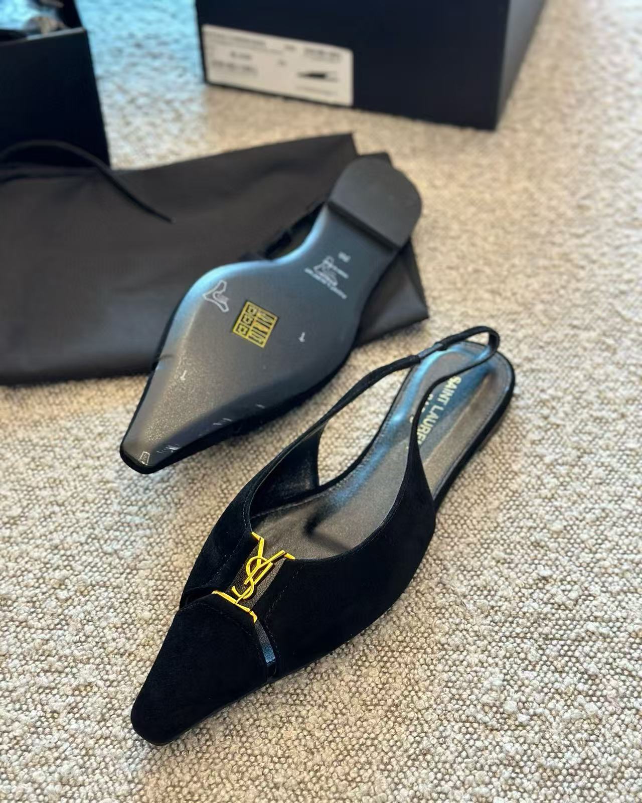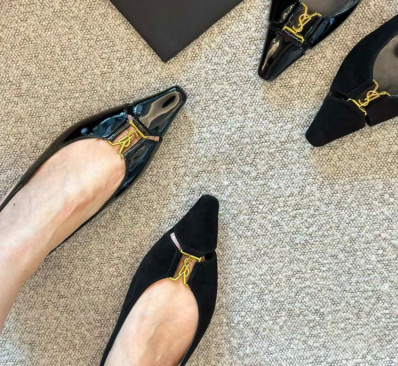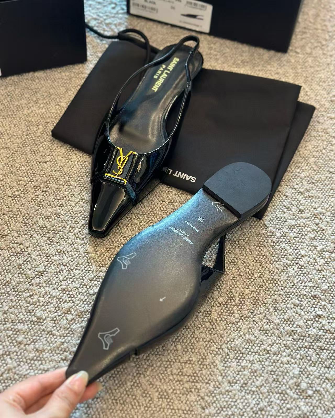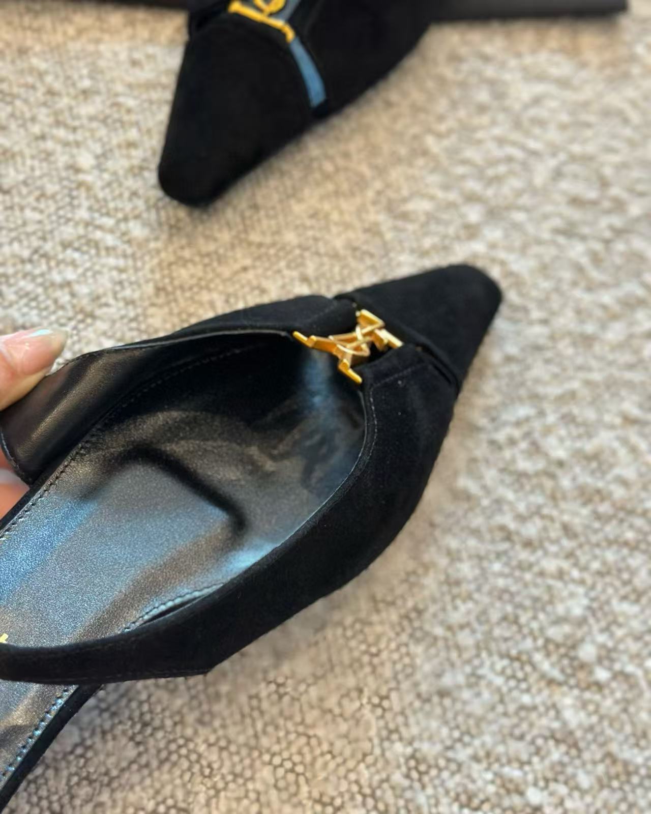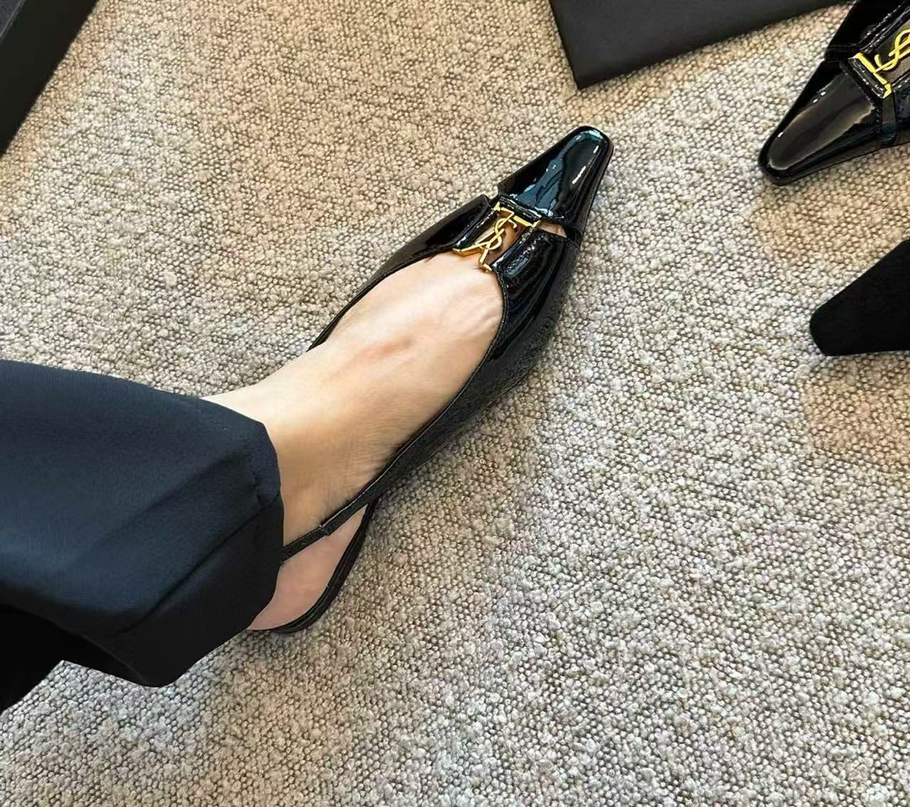 鞋底為高品質真皮底,耐穿且有彈性,行走起來更貼腳。鞋頭的金屬YSL飾件選用定製五金製成,細節處打磨精緻,金屬光澤穩重內斂,整體質感超級加分。