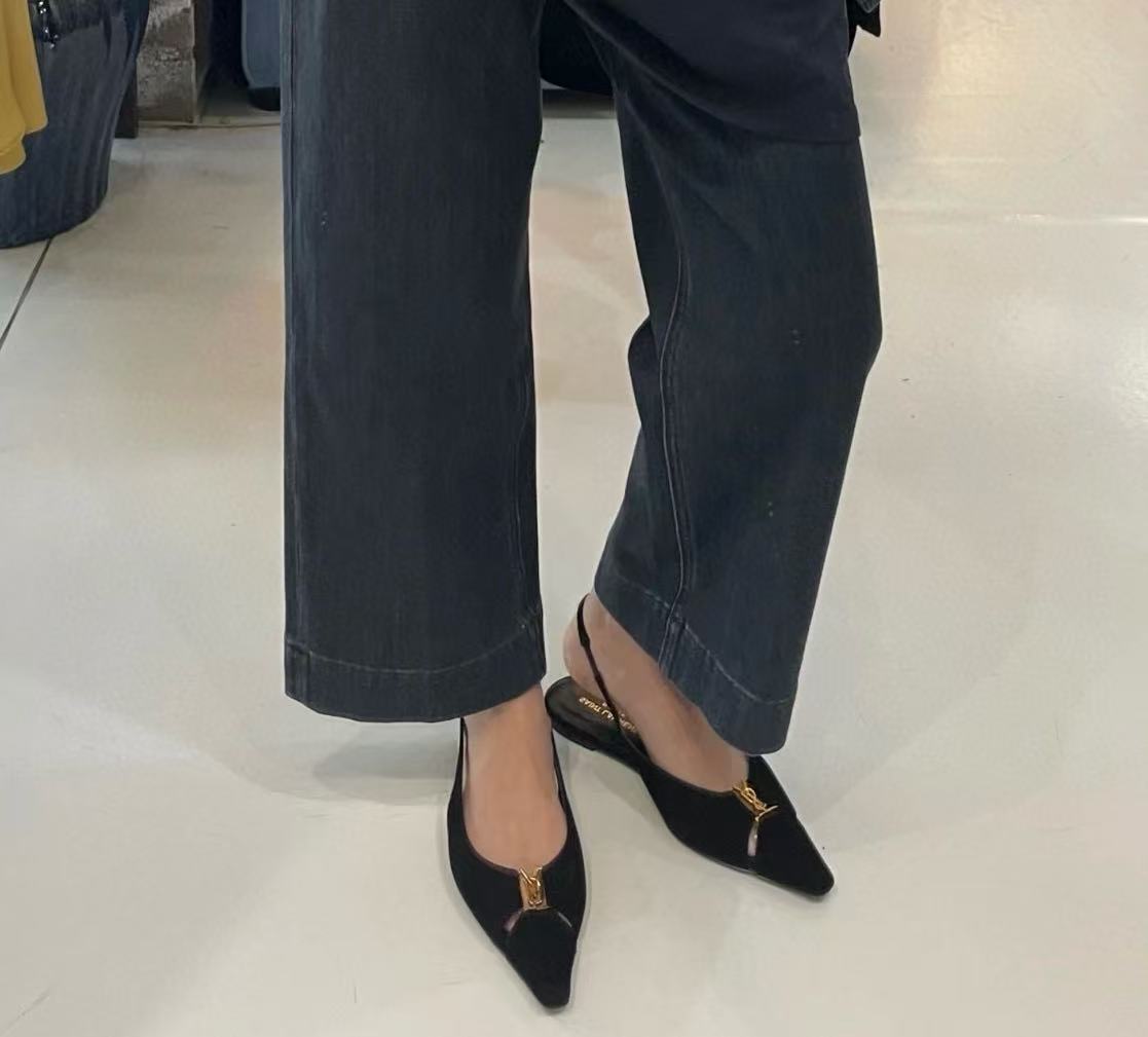尖頭設計+後空平底,不僅拉長腿型、還完美結合「優雅」與「俐落」,尤其在夏天穿後空款式特別清爽,搭配西裝褲或牛仔褲、長洋裝、短裙都非常出彩,氣質直接升級。