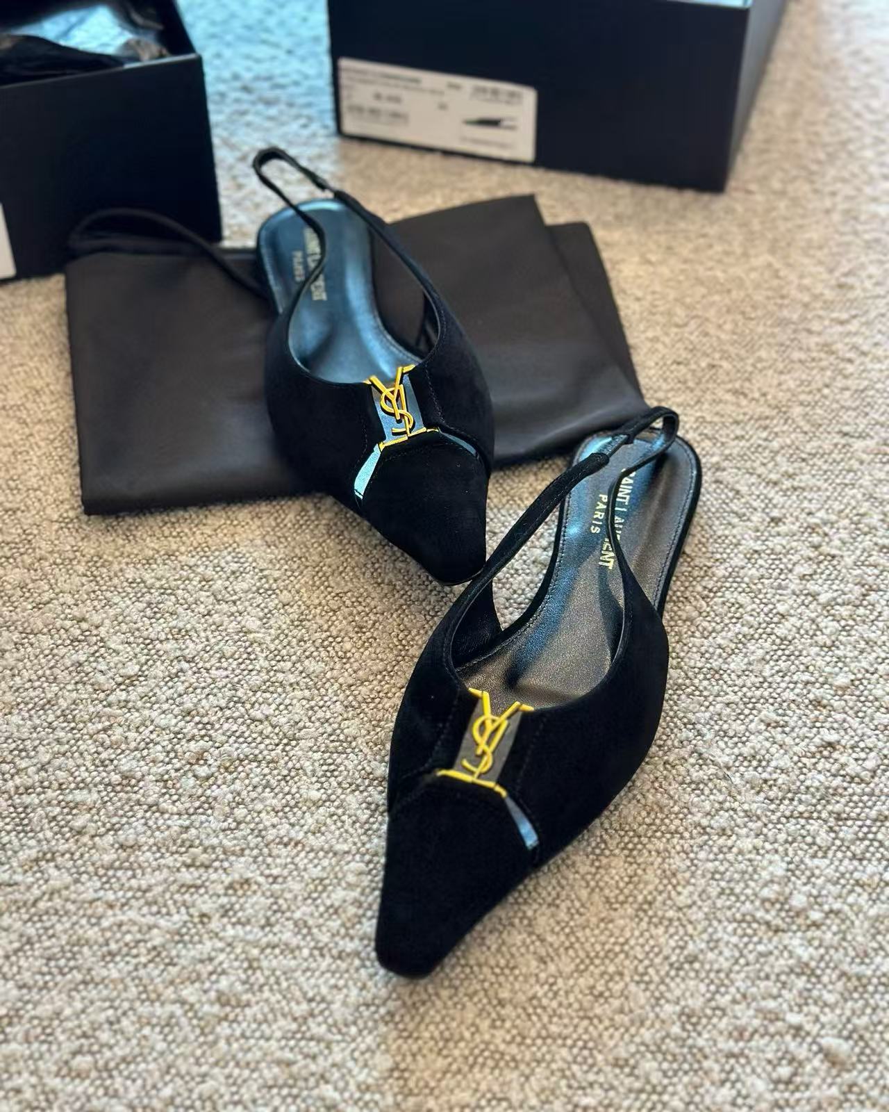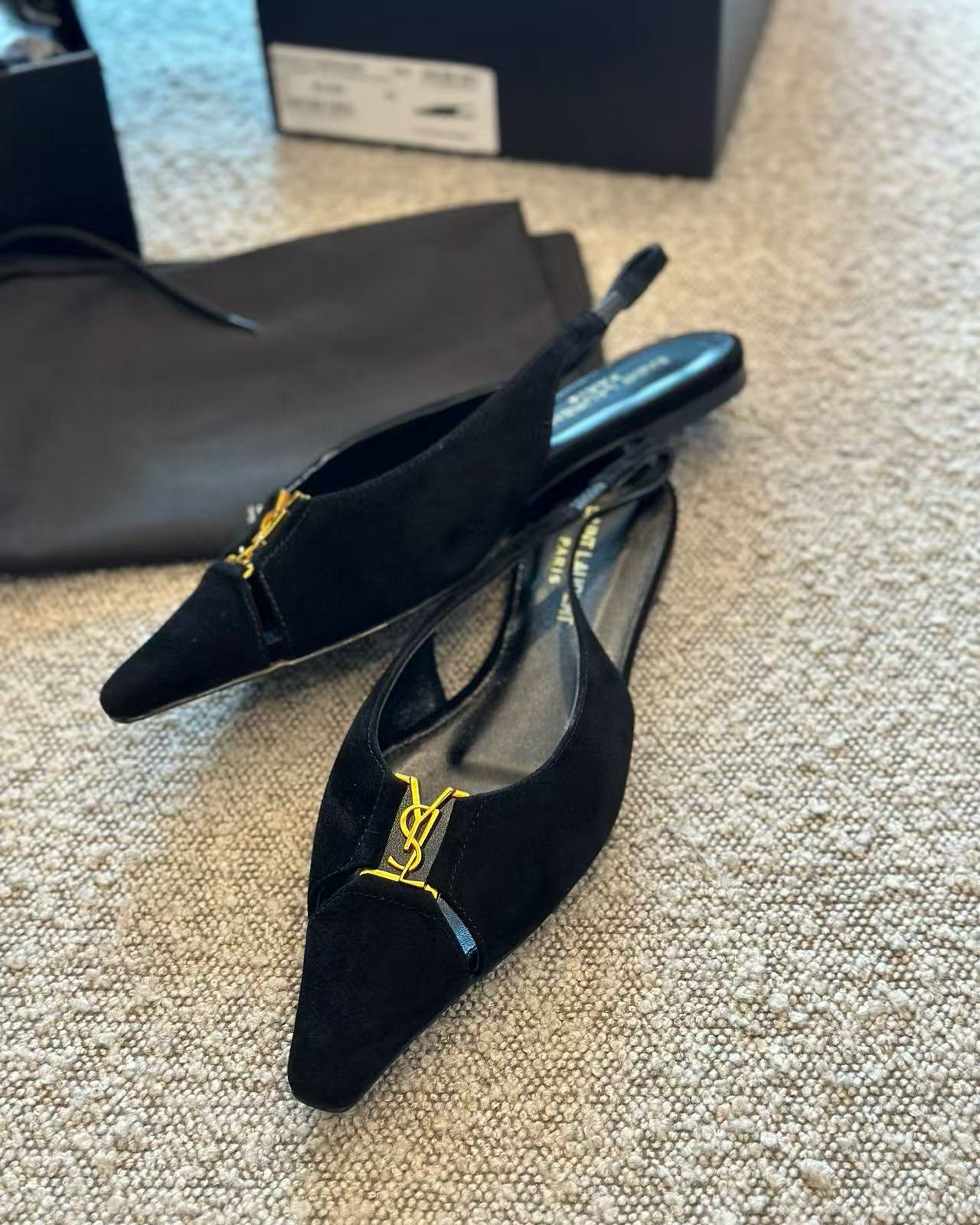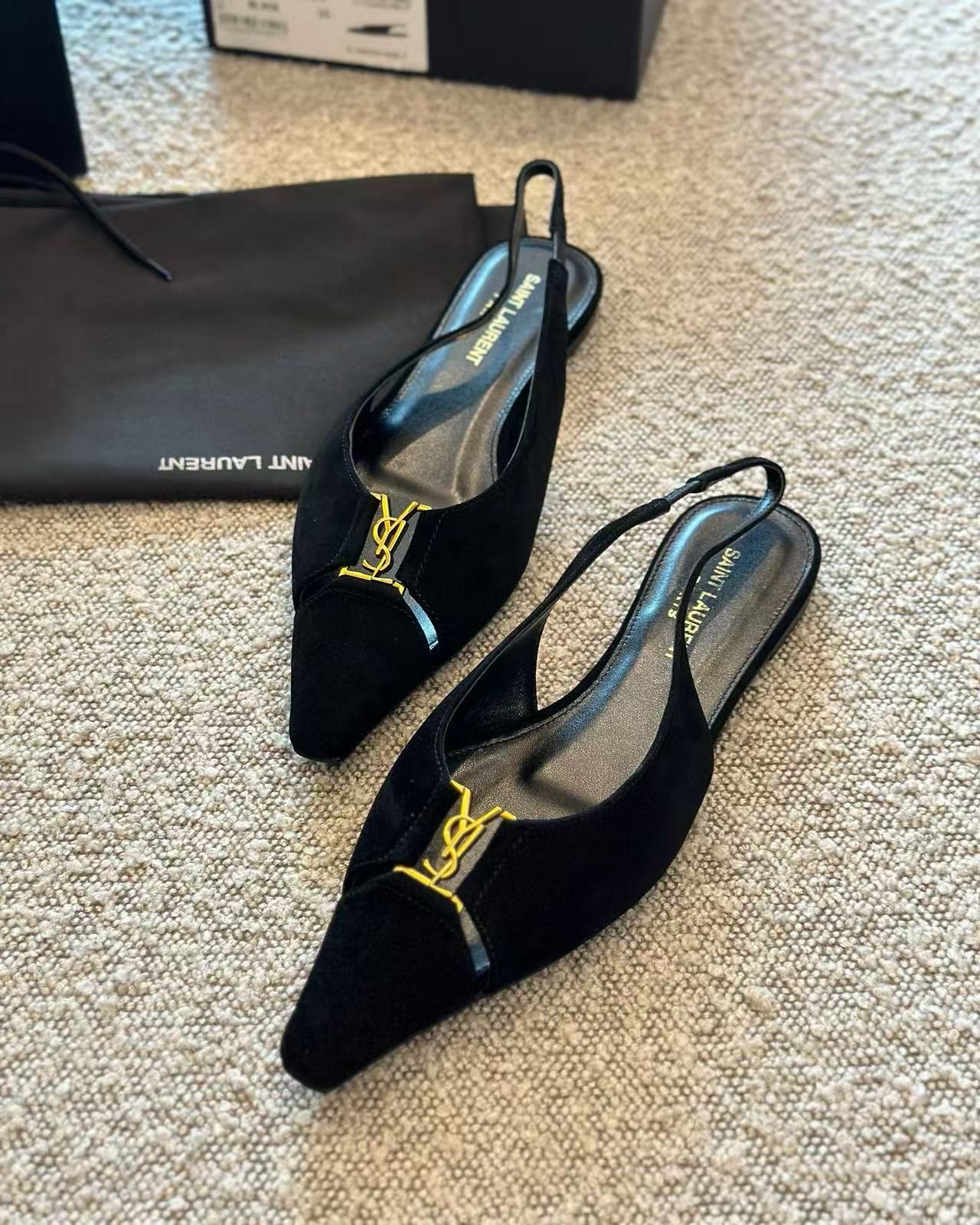 2025夏季新品 Y家 尖頭金屬logo平底鞋