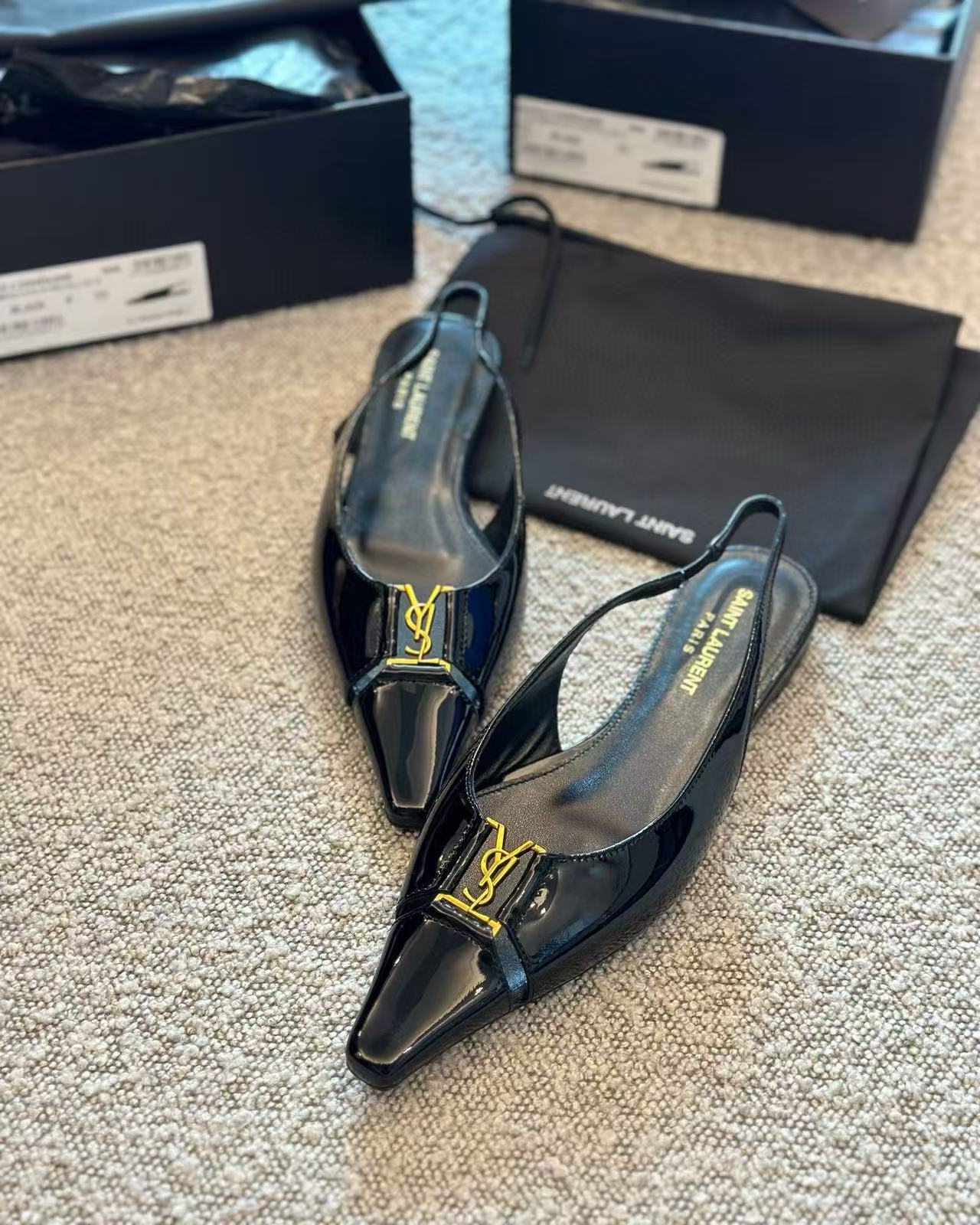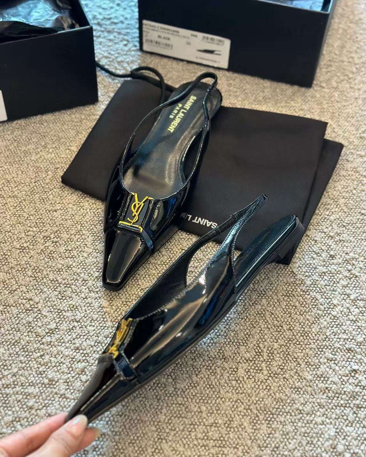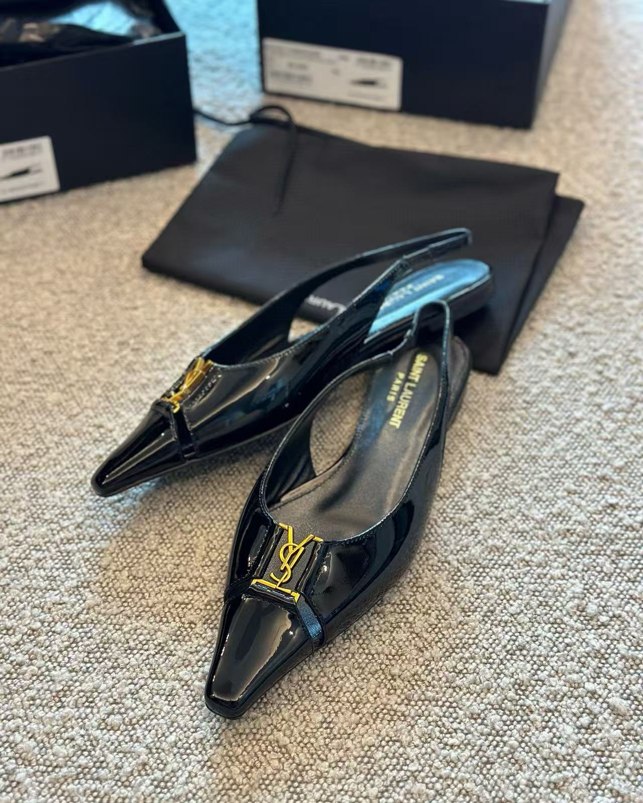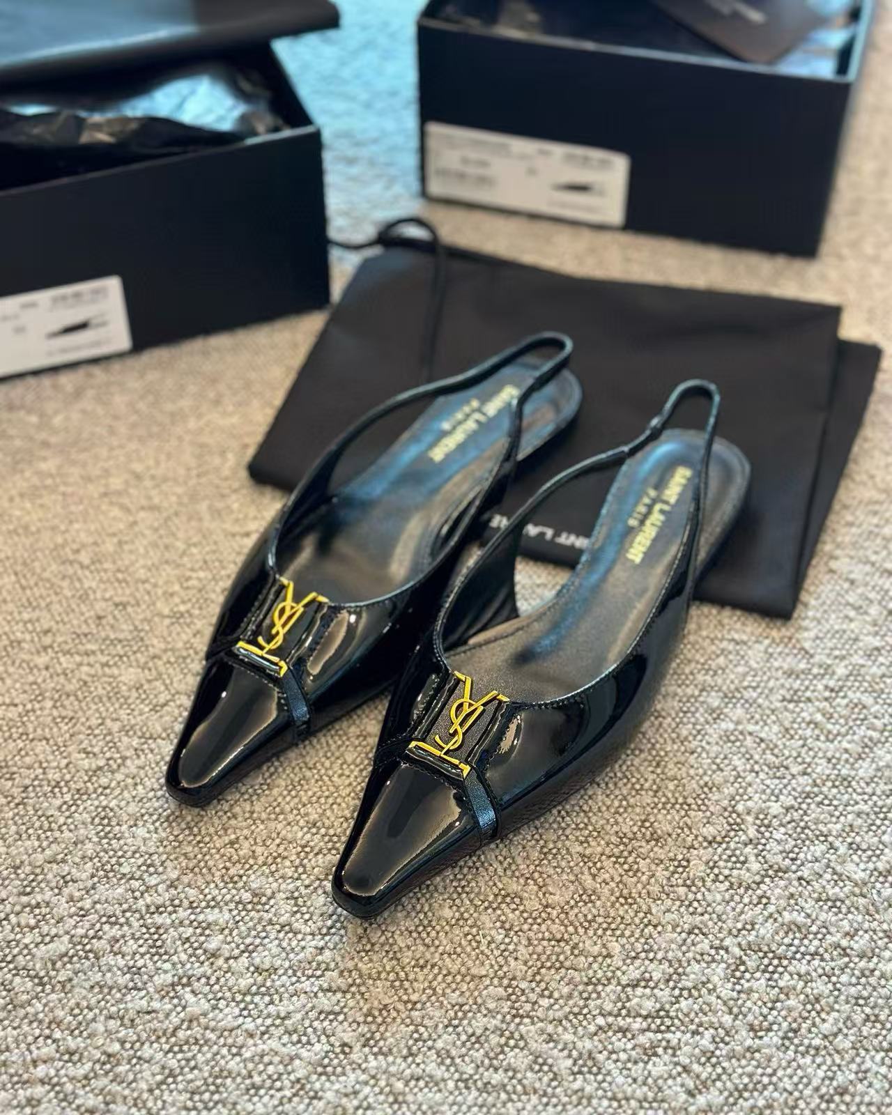 2025夏季新品 Y家 尖頭金屬logo平底鞋
