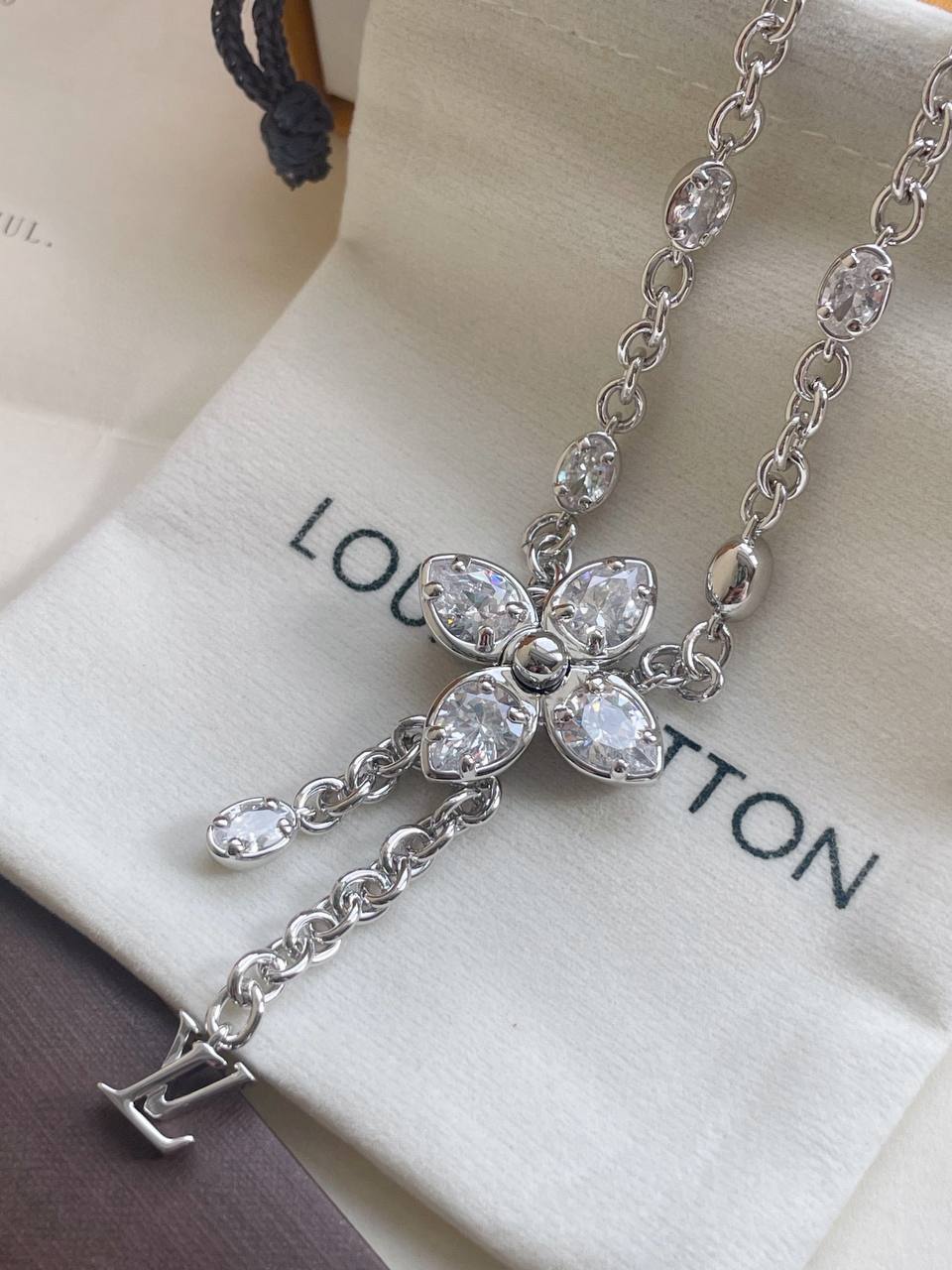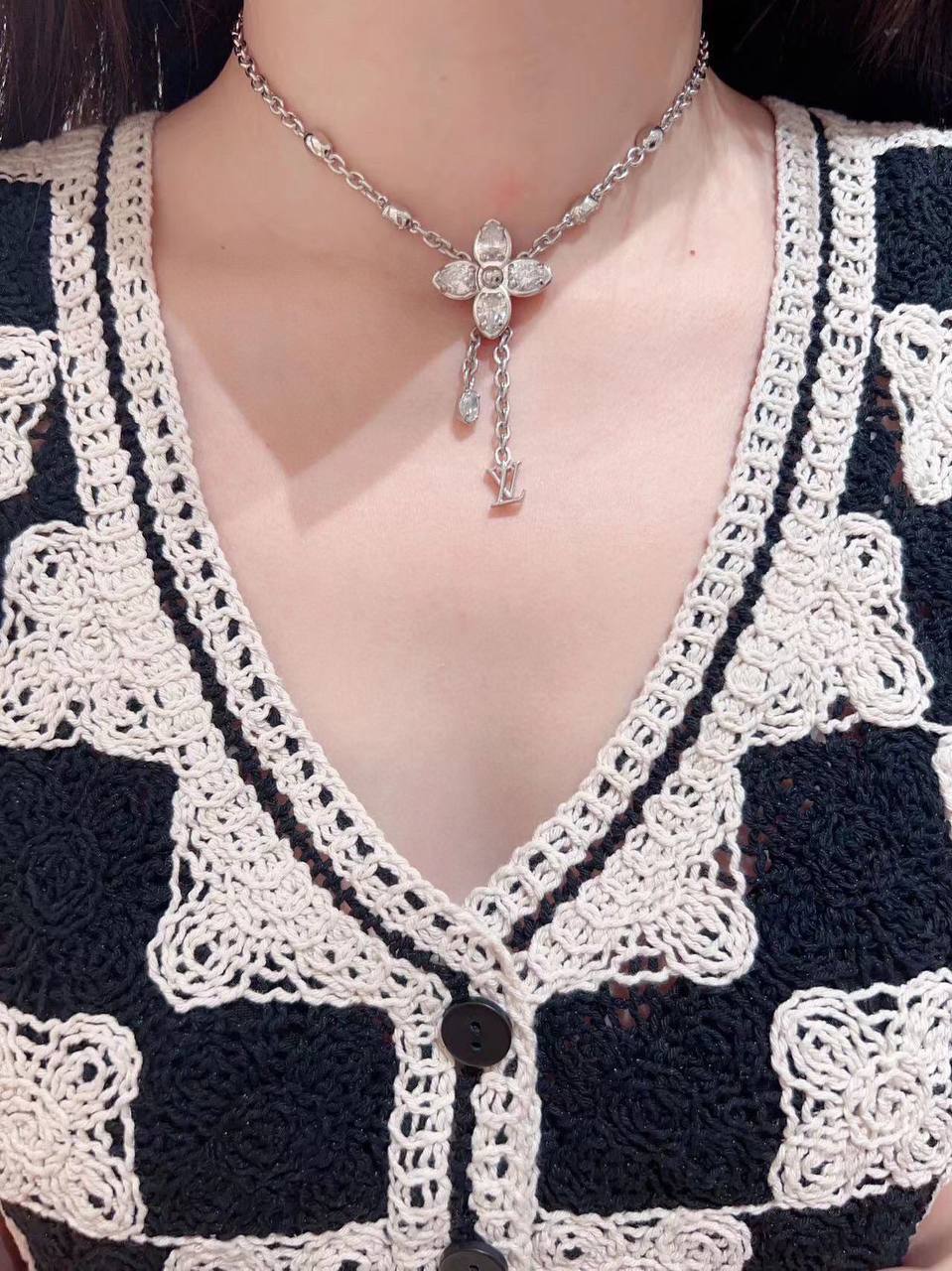 這條 LV 四葉草流蘇項鍊真的美到冒泡!年度必入款絕對是它!經典的水晶小花朵設計,辨識度超高,戴出去絕對不撞款!橢圓形水鑽搭配字母吊墜,甜美中又帶點小個性,氣質直接拉滿!