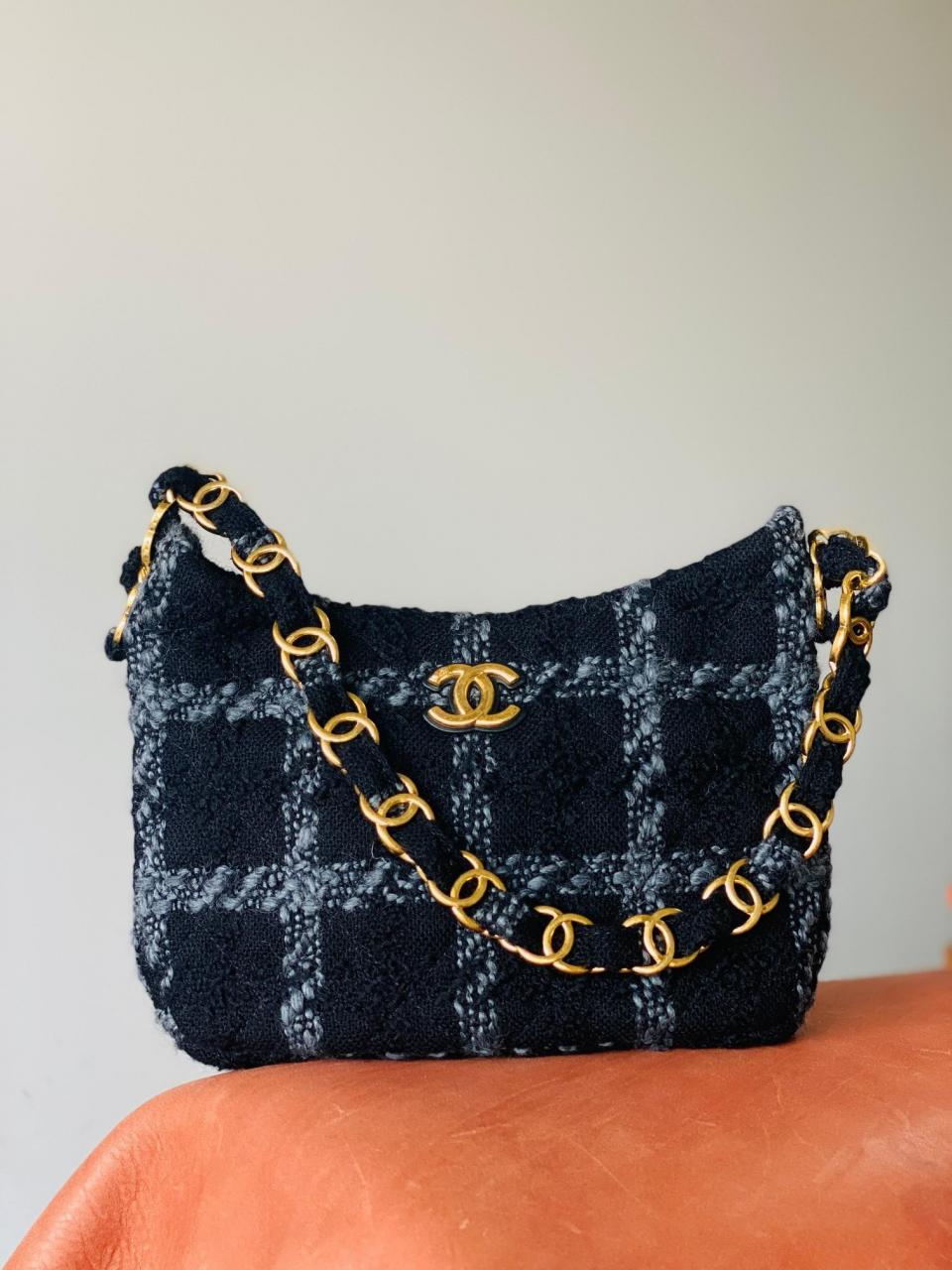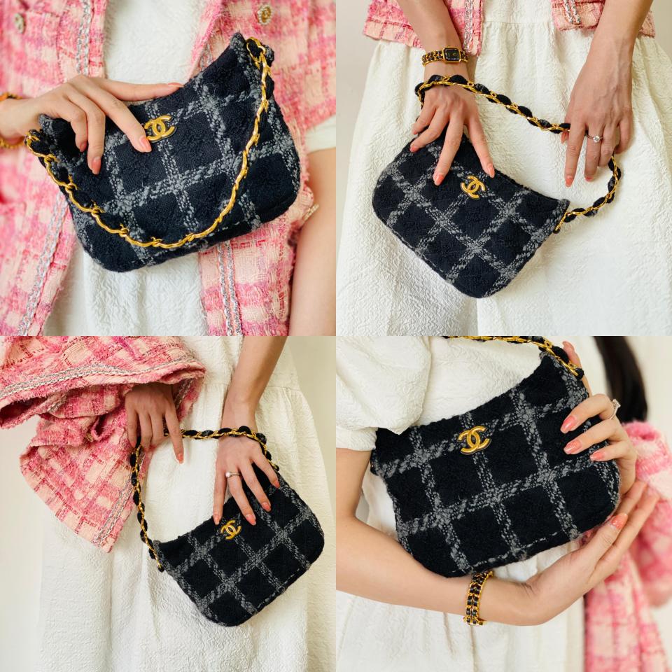 2022秋冬新品 C家22K hobo腋下包(毛呢款小號) 肩帶雙C標誌設計