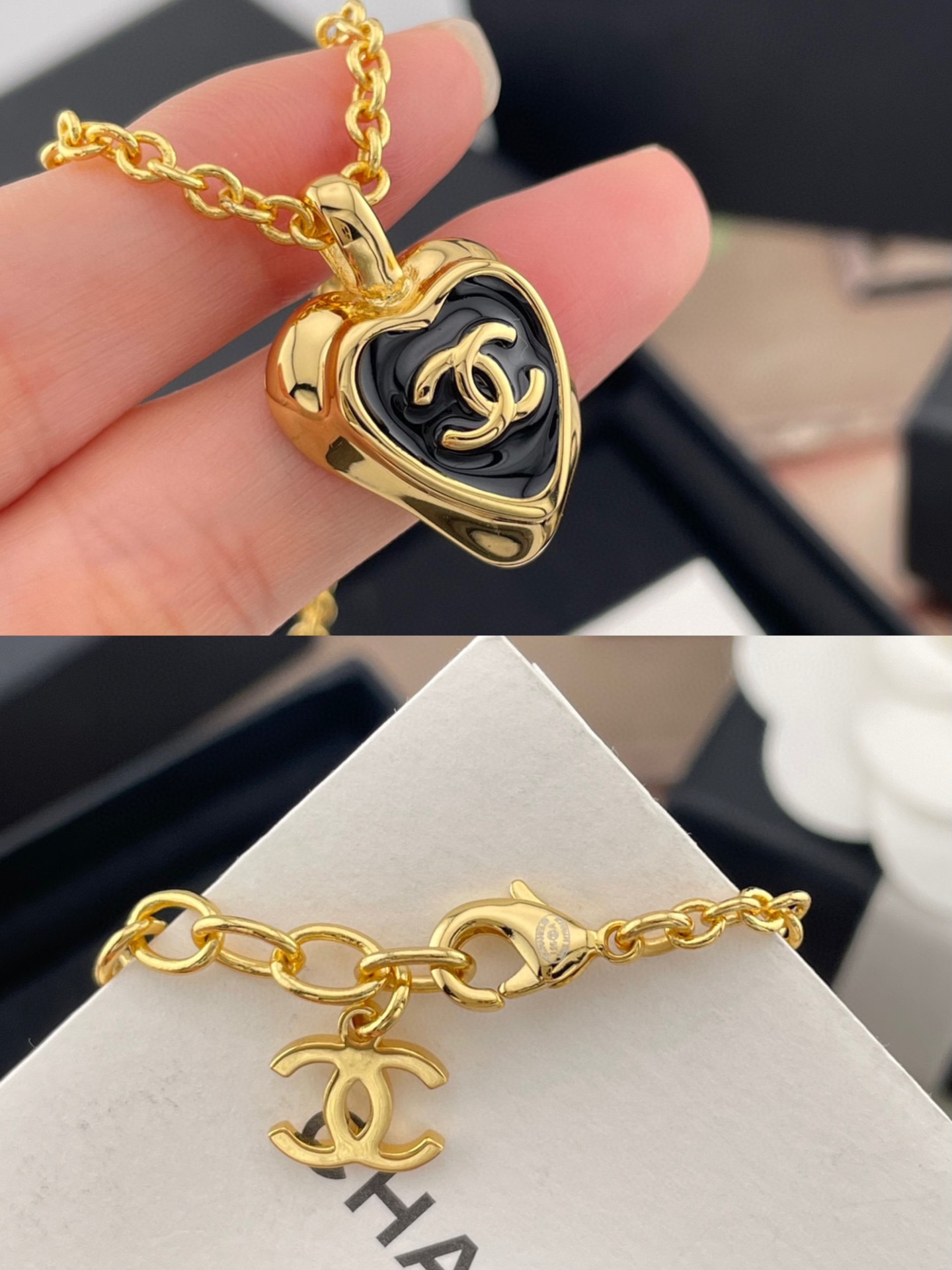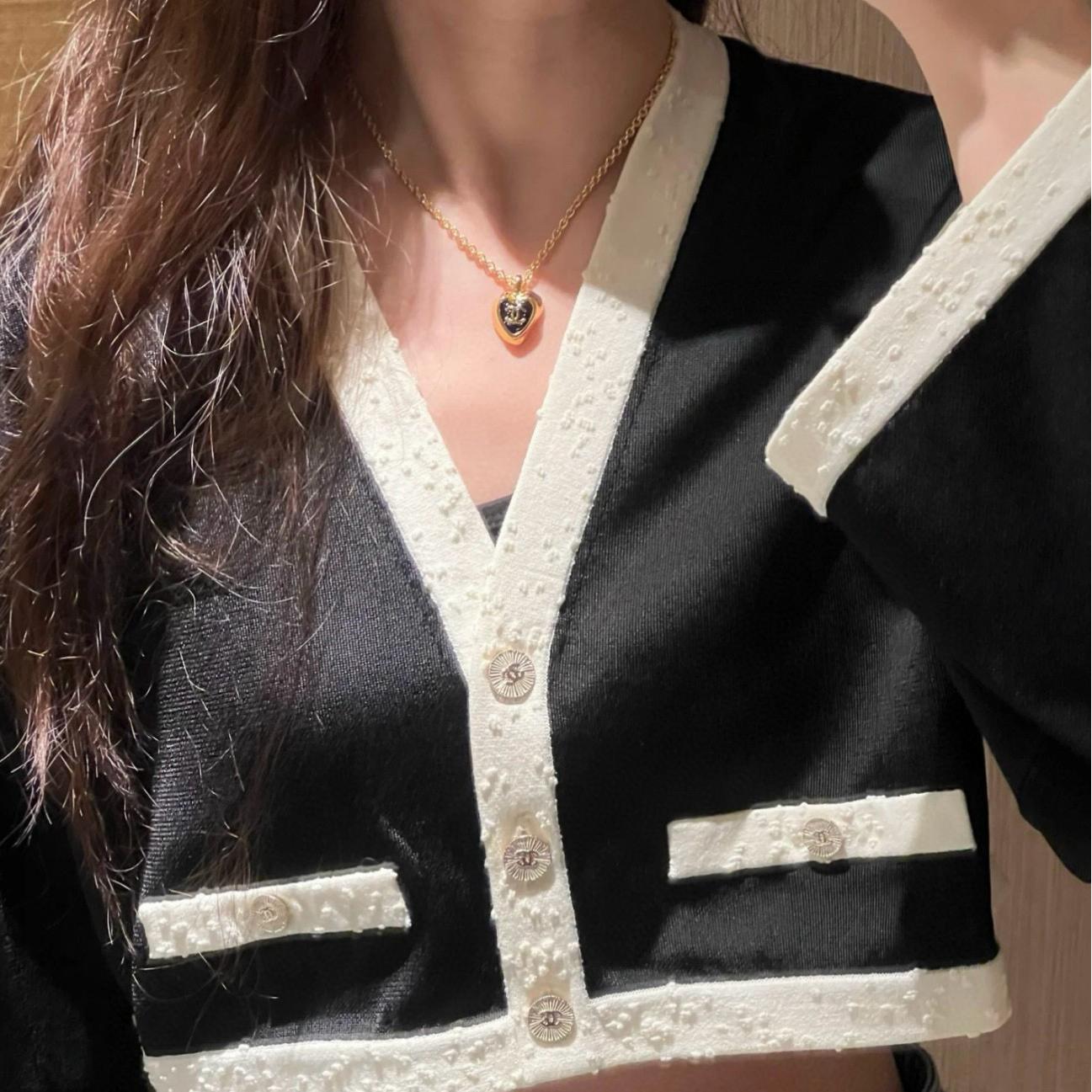 經典黑金配色搭配愛心造型,低調又優雅,既有份量感又不失女人味。無論是搭配簡約白T,還是優雅襯衫,都能讓整體造型瞬間提升一個層次,是一條既能日常配戴、又能出席正式場合的百搭首飾。
