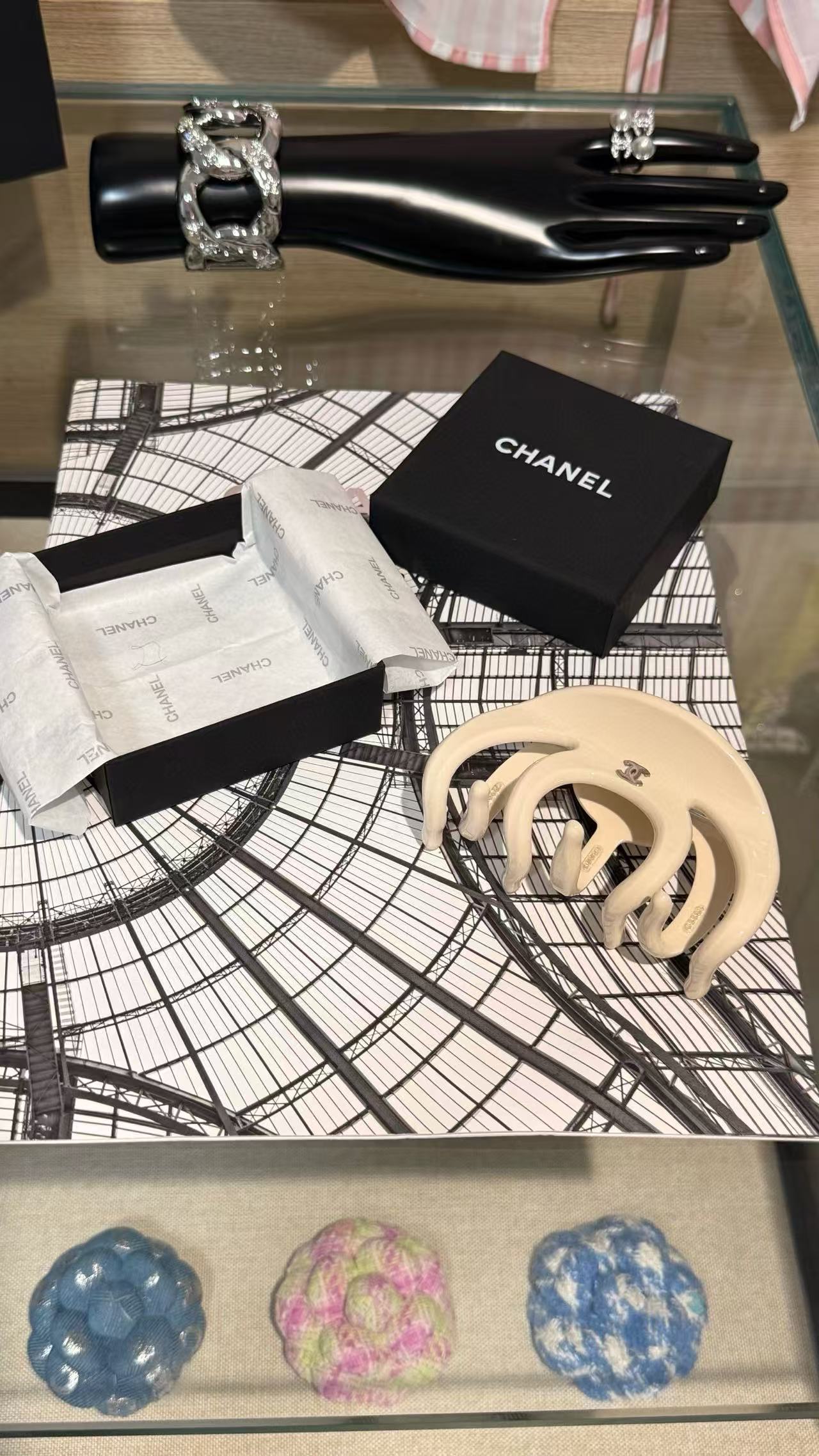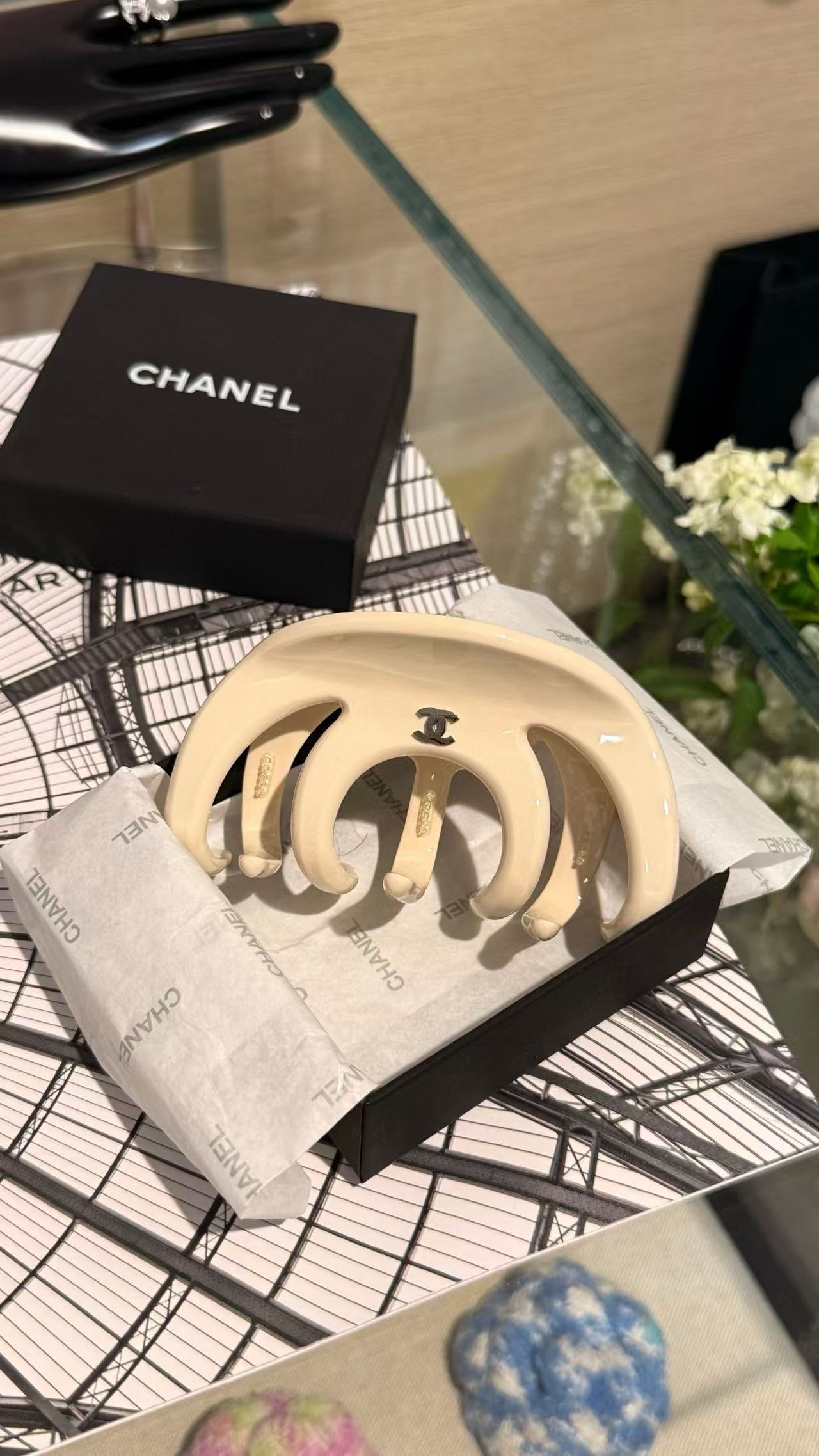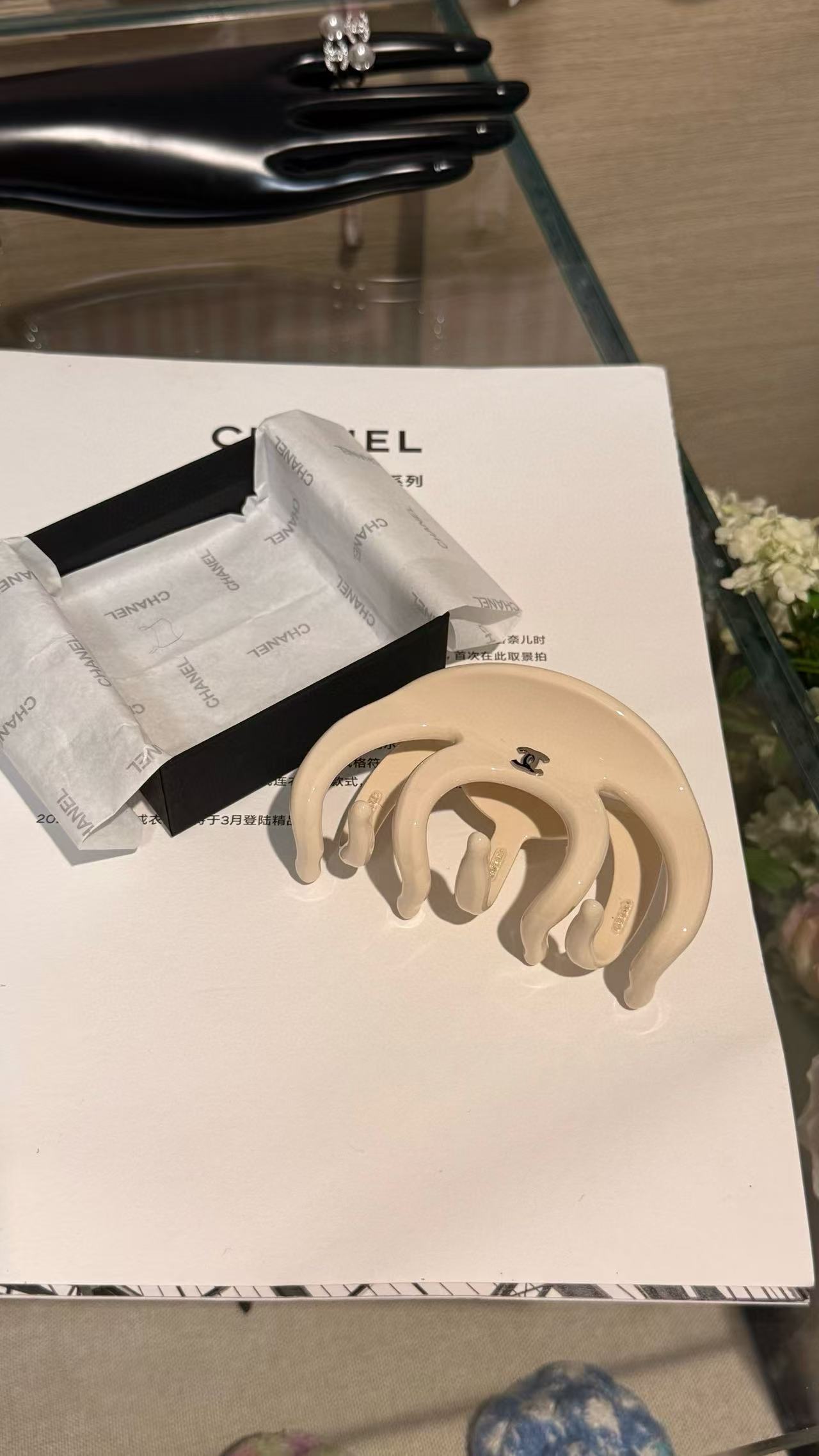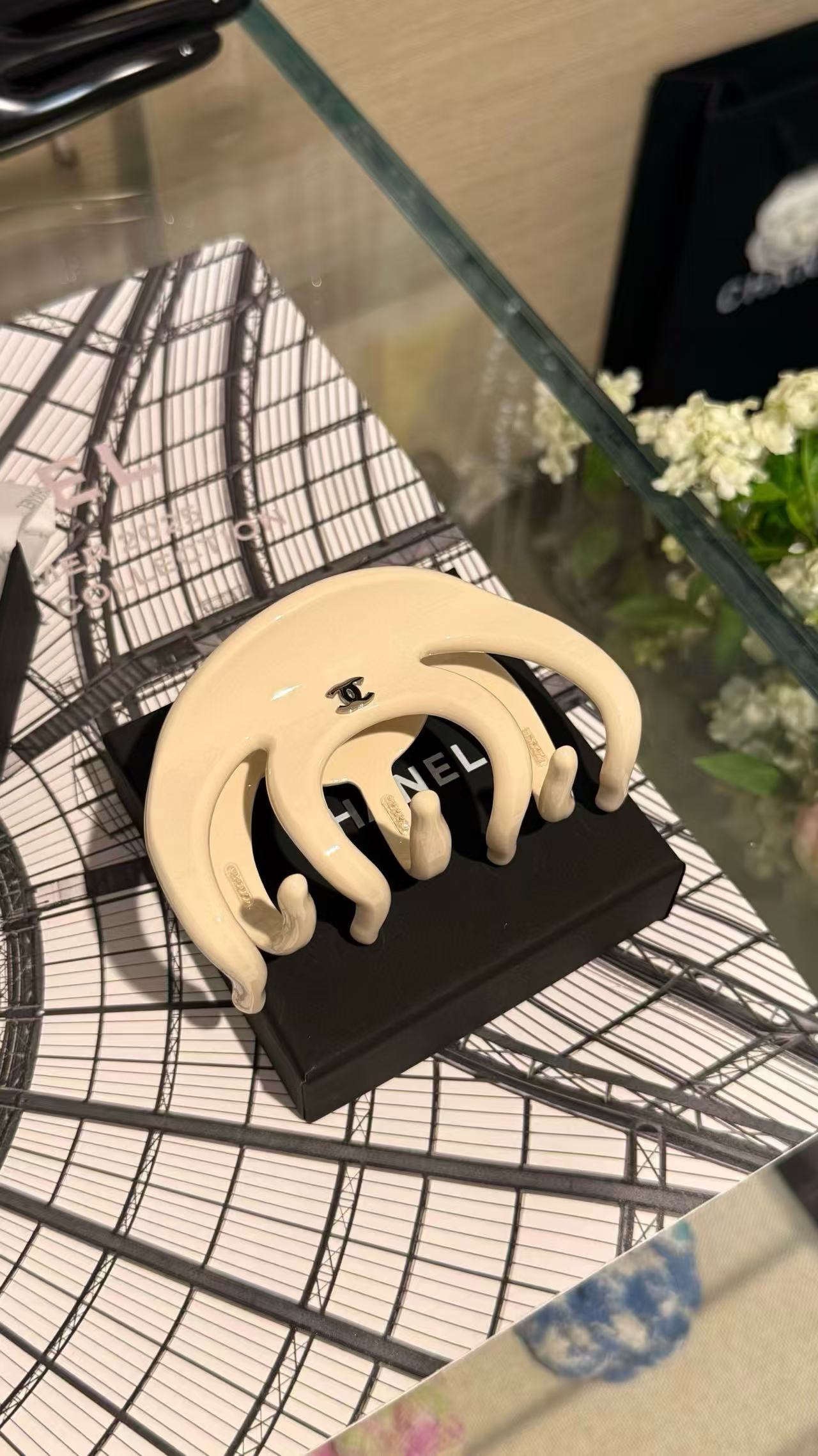 這款髮夾以柔和的奶茶色調搭配銀色小雙C標誌,氣質滿滿。