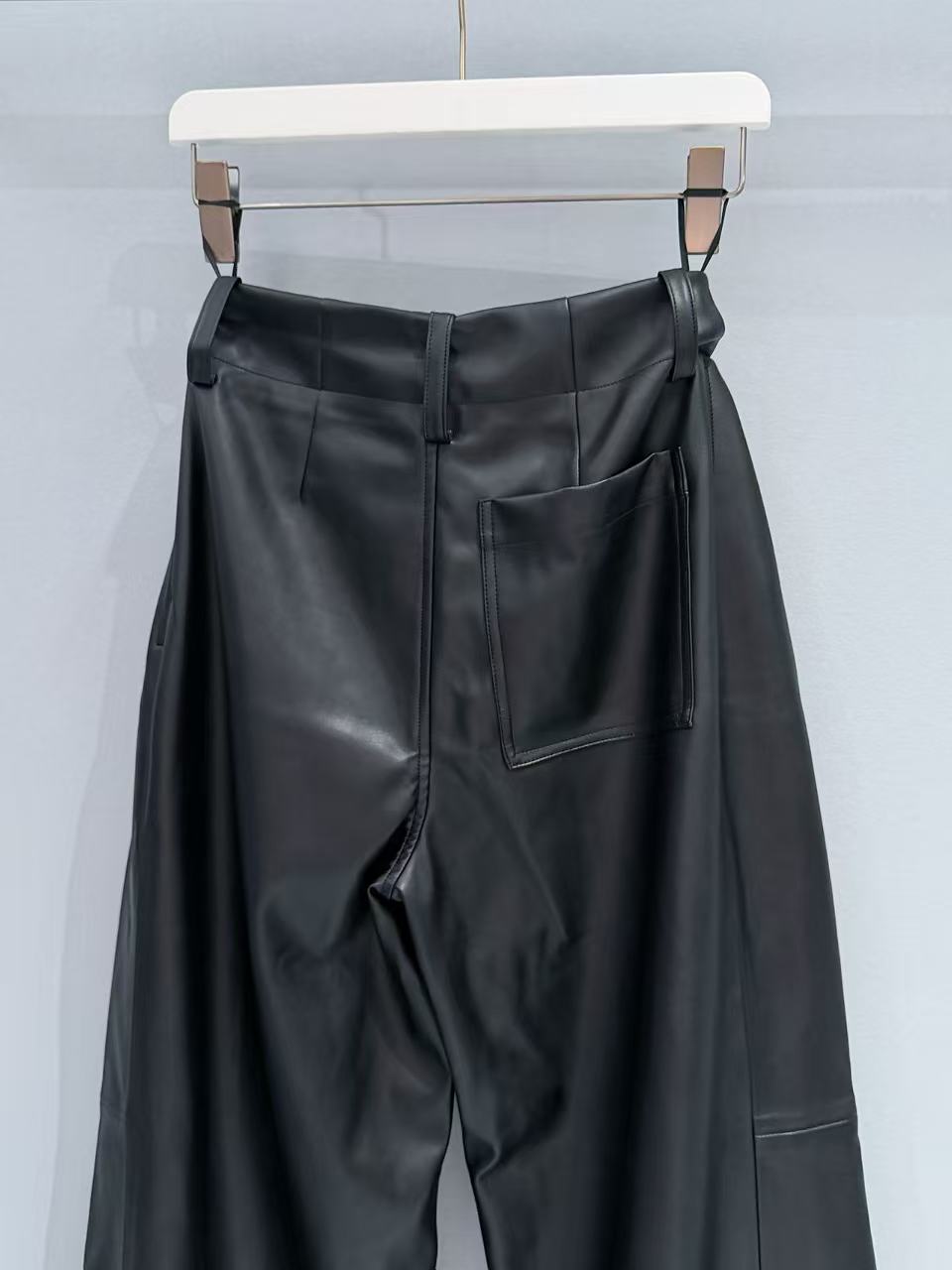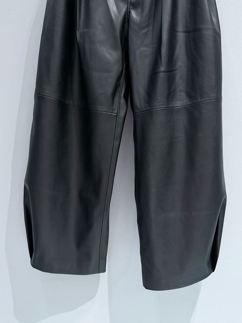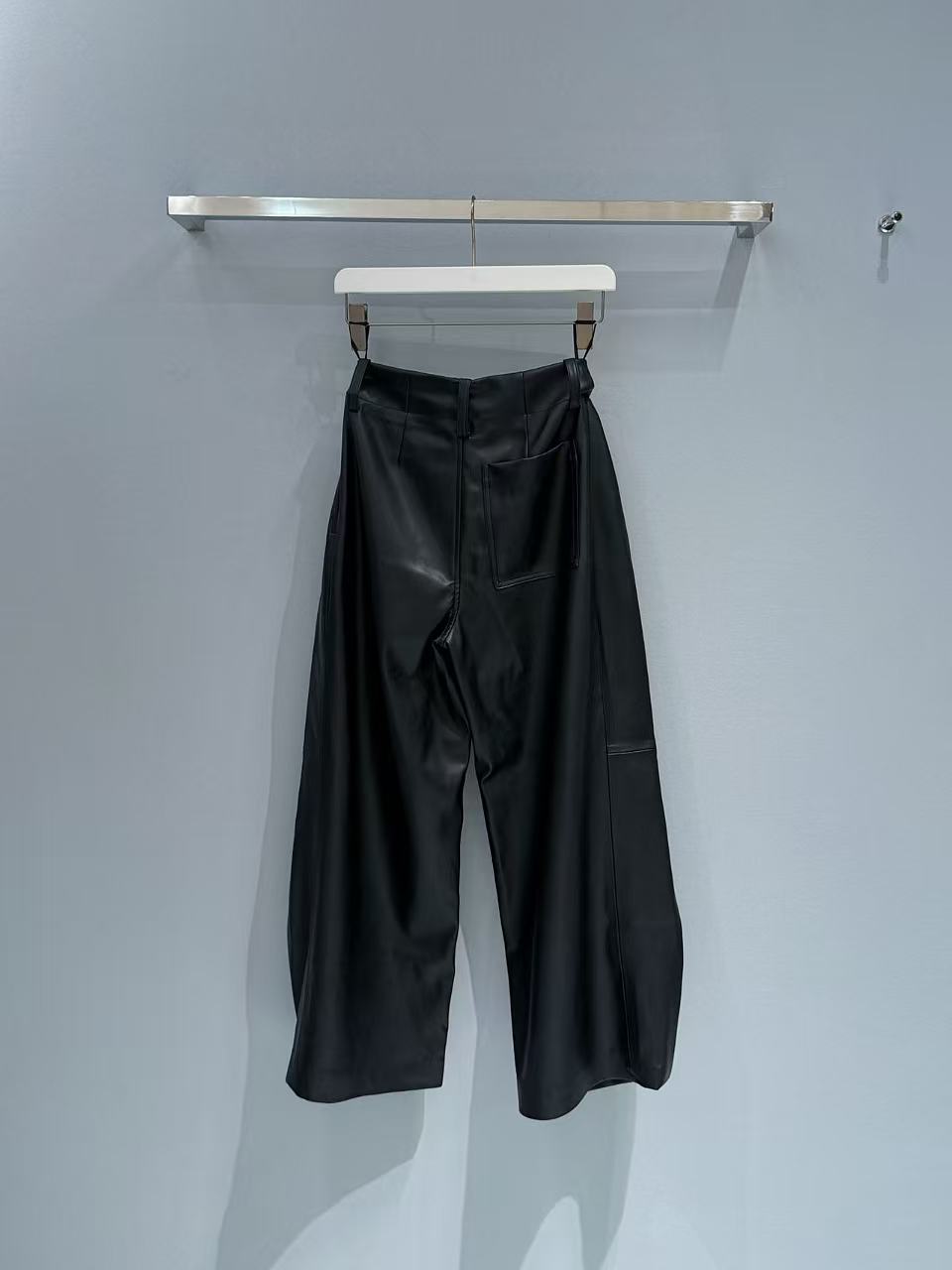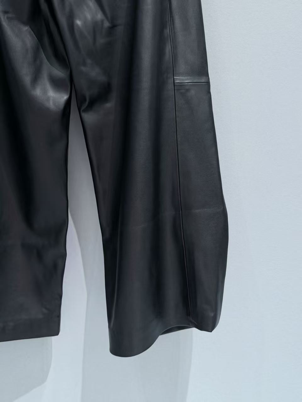 2026早春 LEW家 褶皺腰帶闊腿皮褲