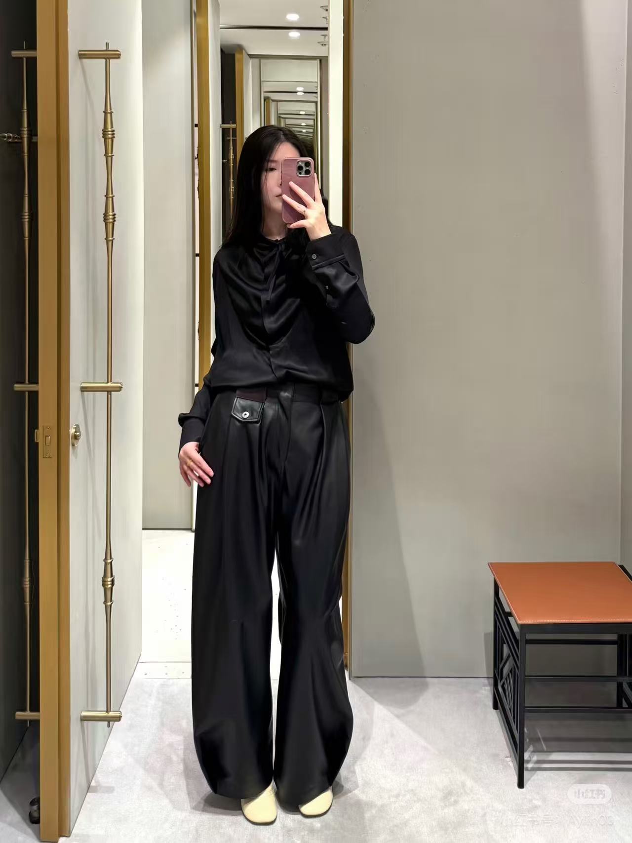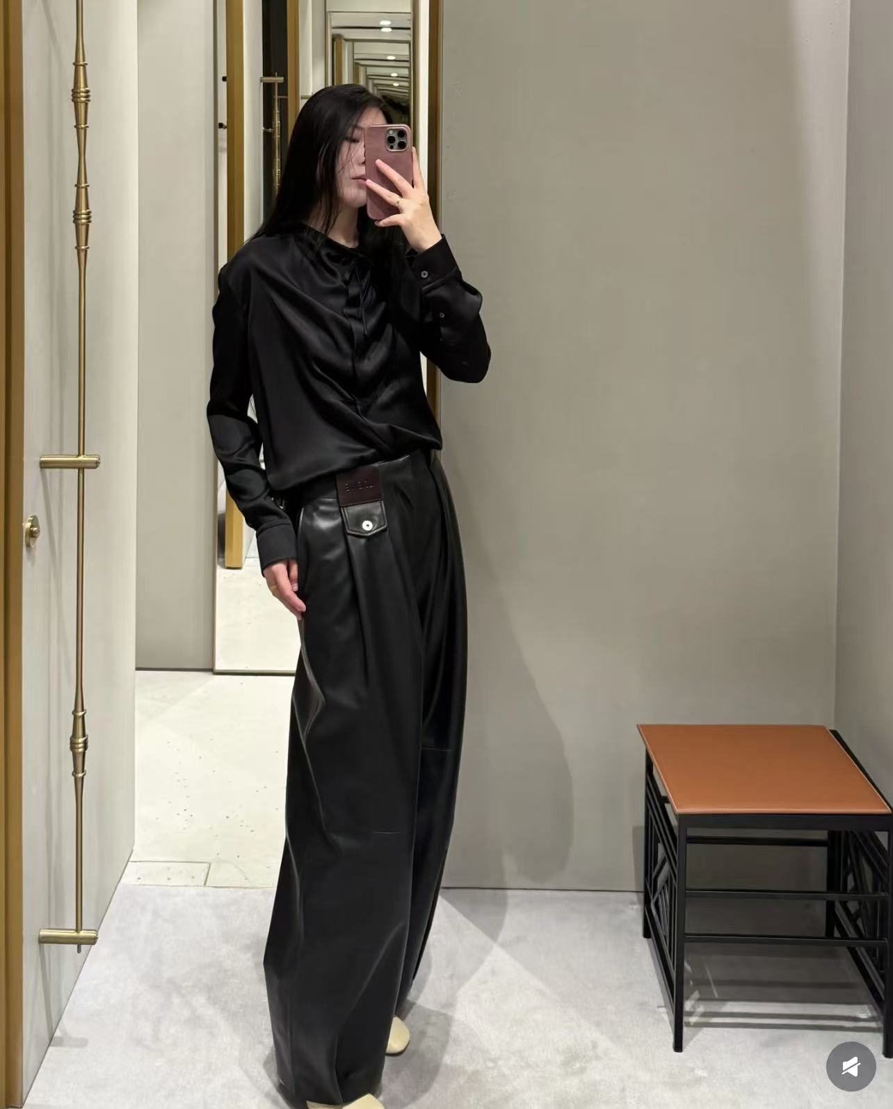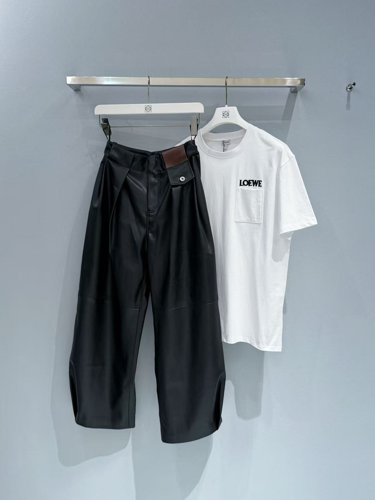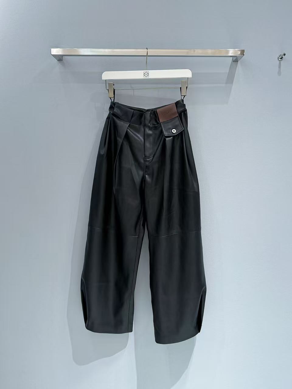 2026早春 LEW家 褶皺腰帶闊腿皮褲