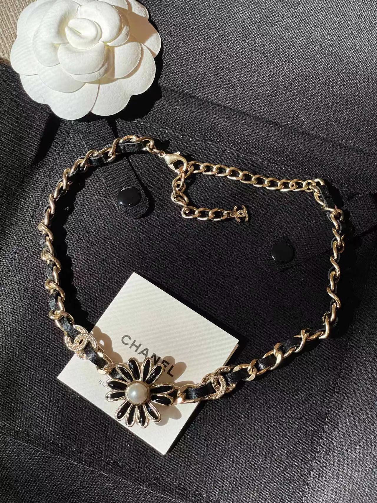 可調節長度花朵是黑色琺瑯工藝 超級氣質