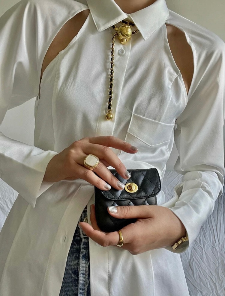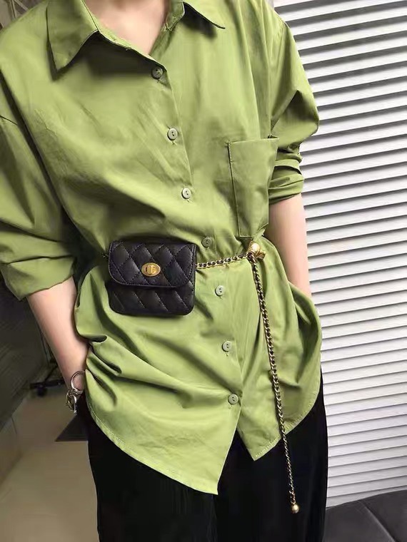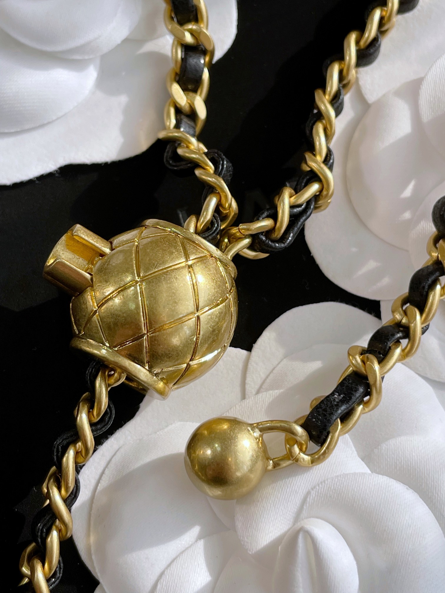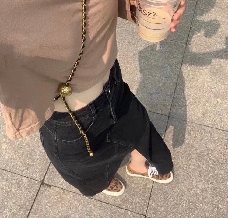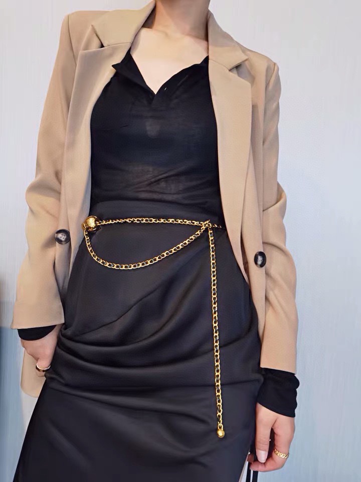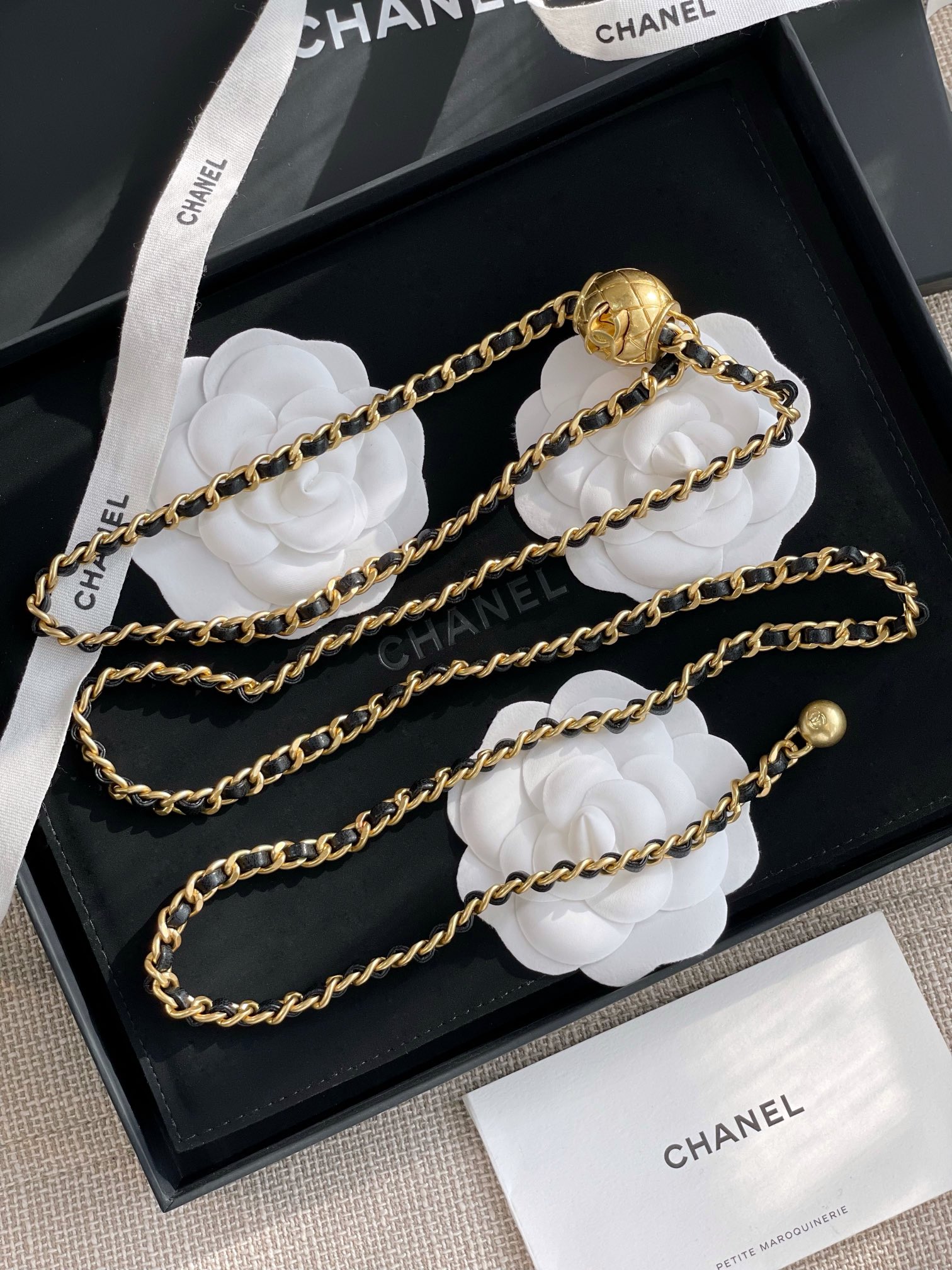 金球上的雙C標誌是調節按鈕,可自由調整長度,一條腰鍊即可變化多種造型——腰鍊、長鍊、短項鍊(繞兩圈)、斜背鏈、包包鏈,百搭又實用。