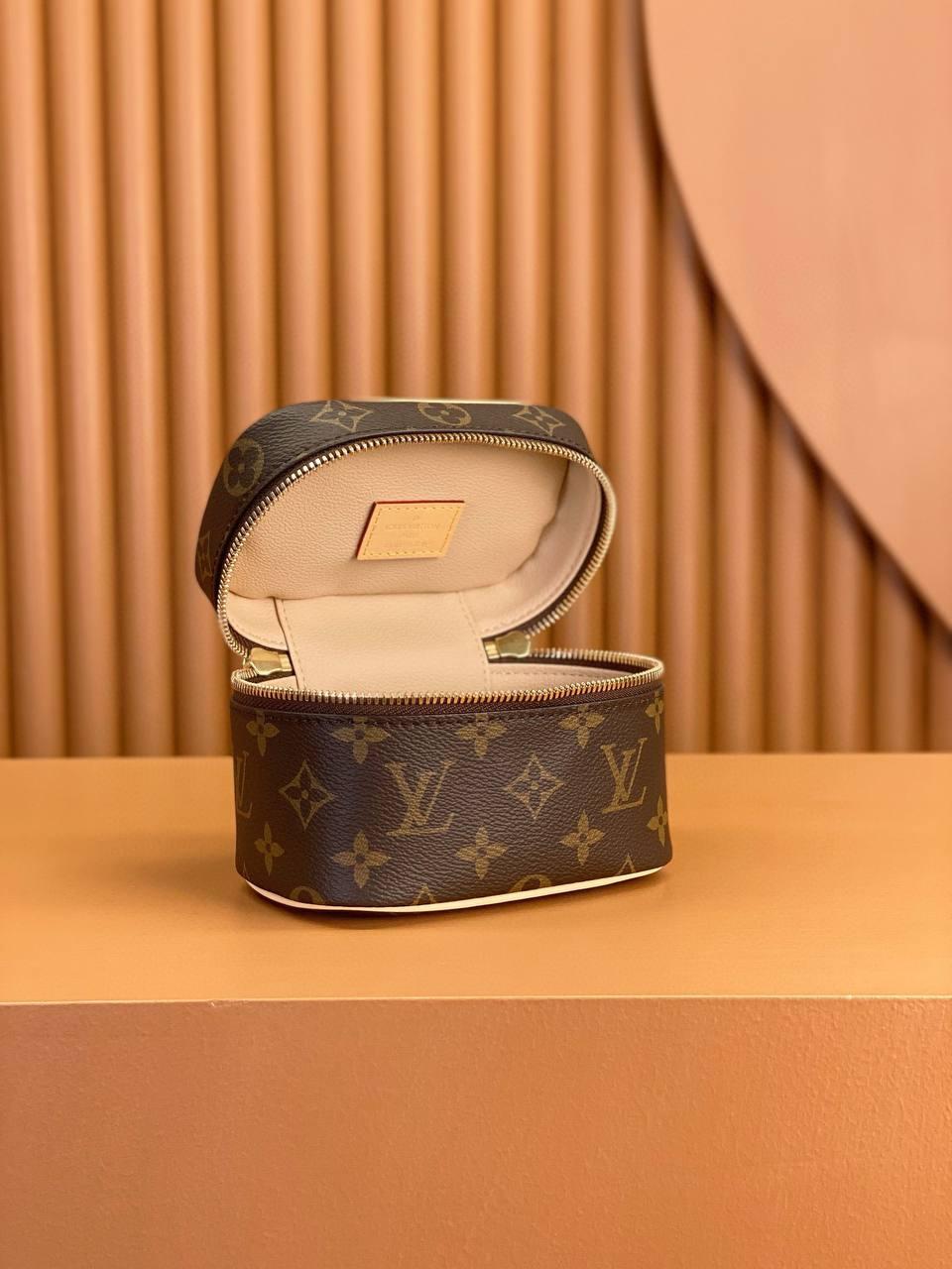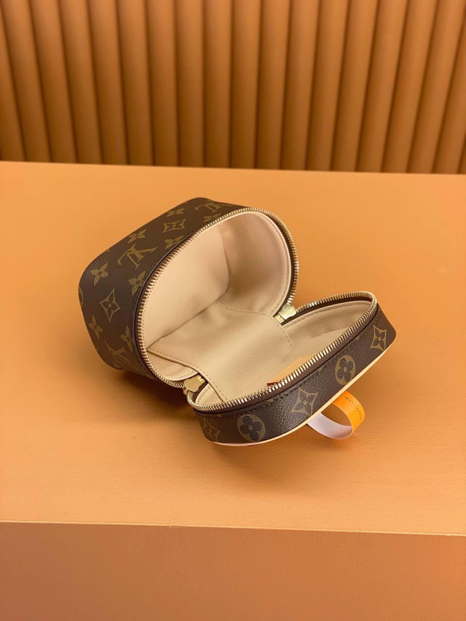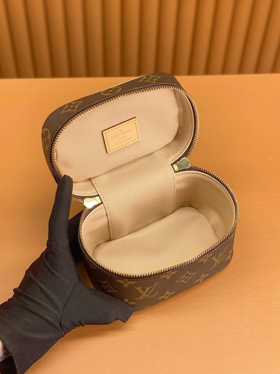 化妝包採用標誌性老花製成,可輕鬆放入旅行包或手提箱中。它柔軟、緊湊,配有可壓平以節省空間的皮革手柄,可容納洗漱用品和美容必需品。頂部翻蓋採用雙拉鍊開合,並飾有 LV 雕刻金屬拉手,可大幅打開以獲得最佳視野。