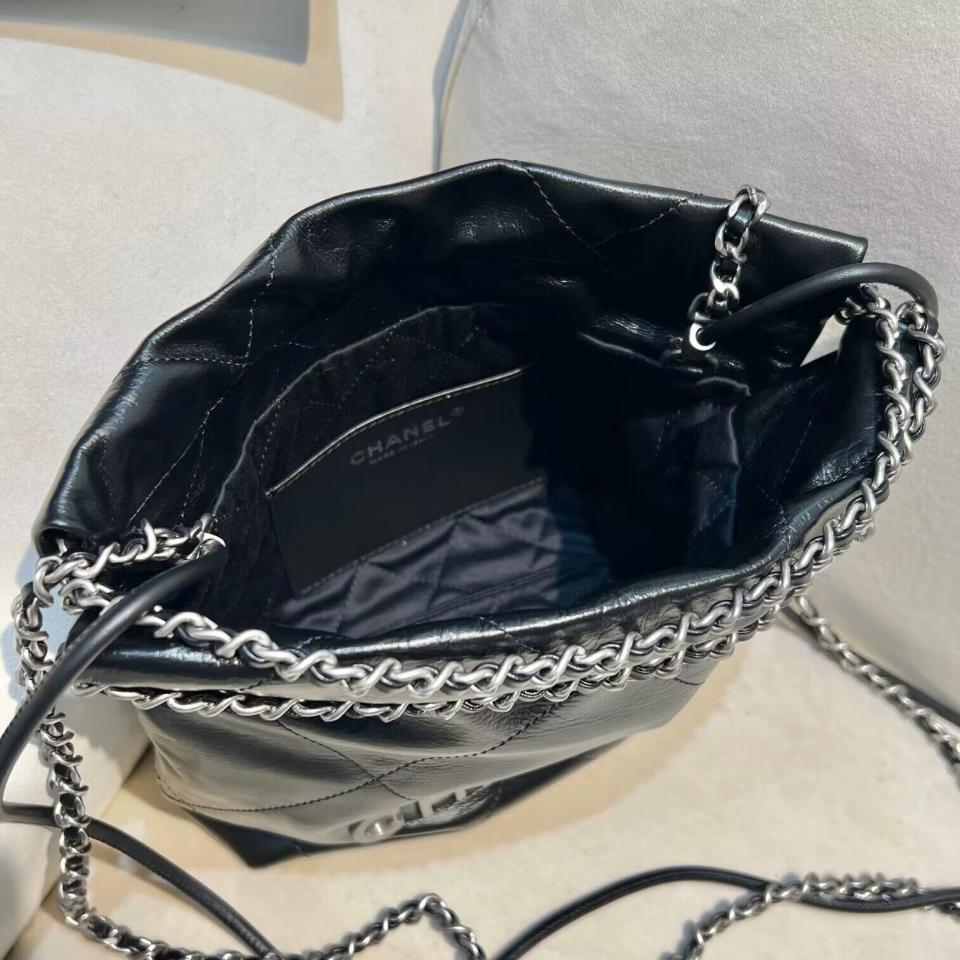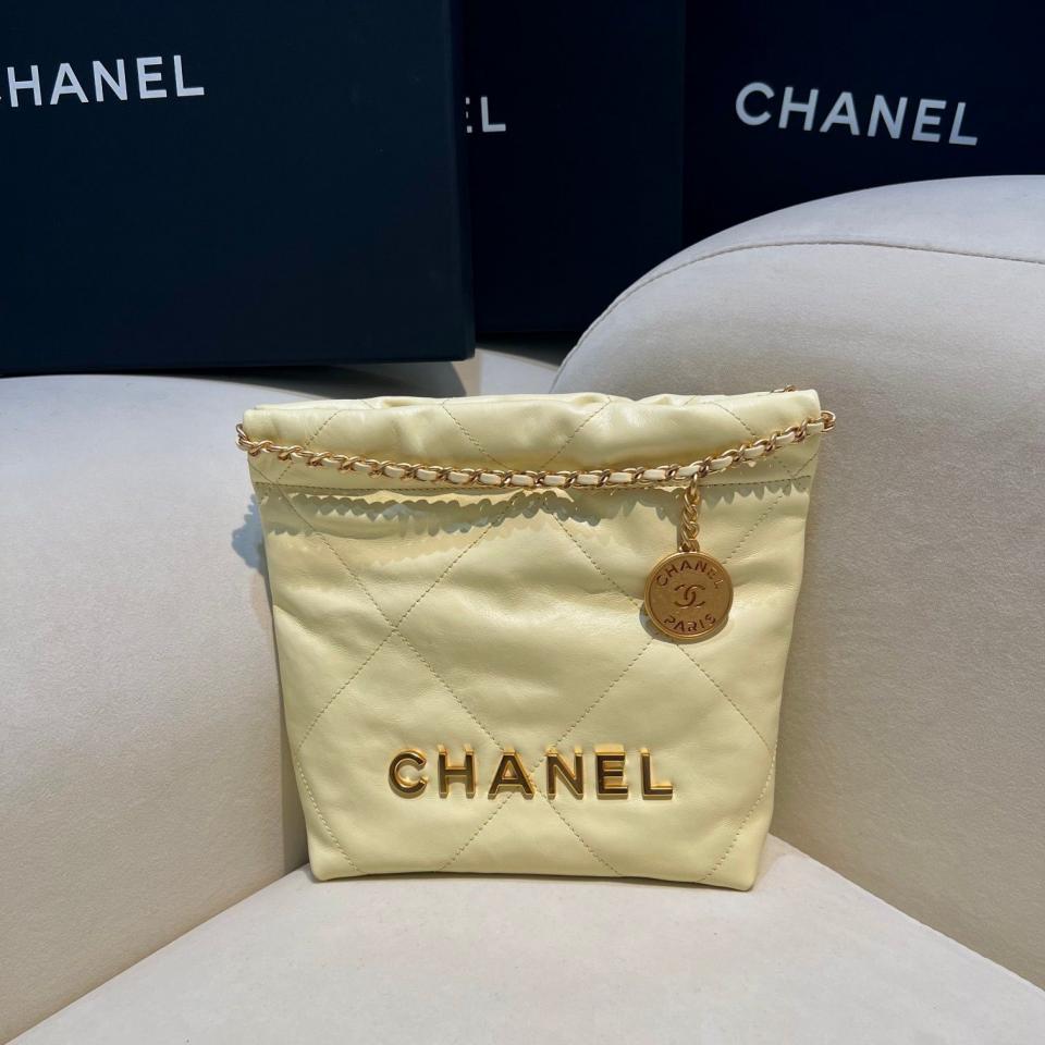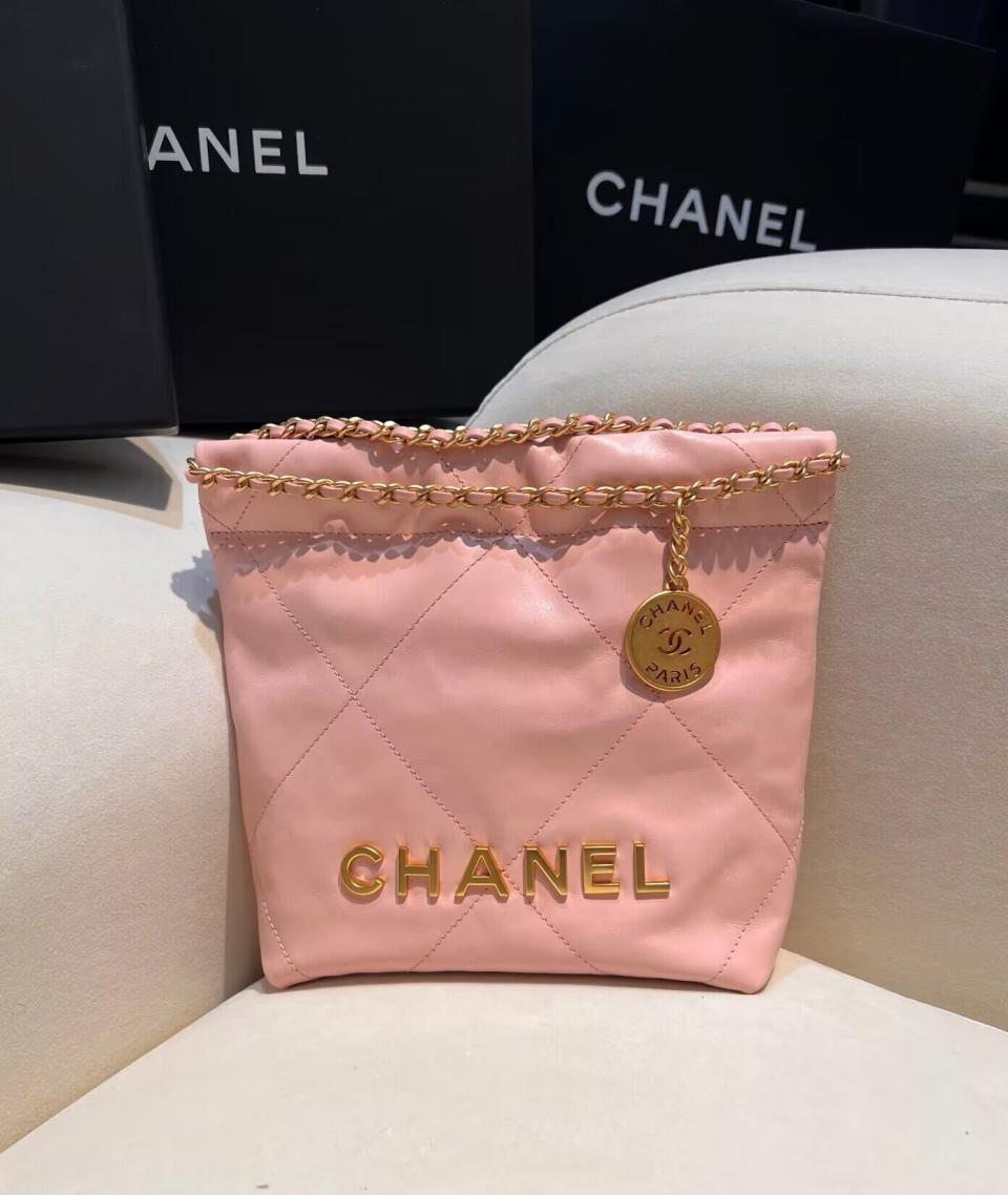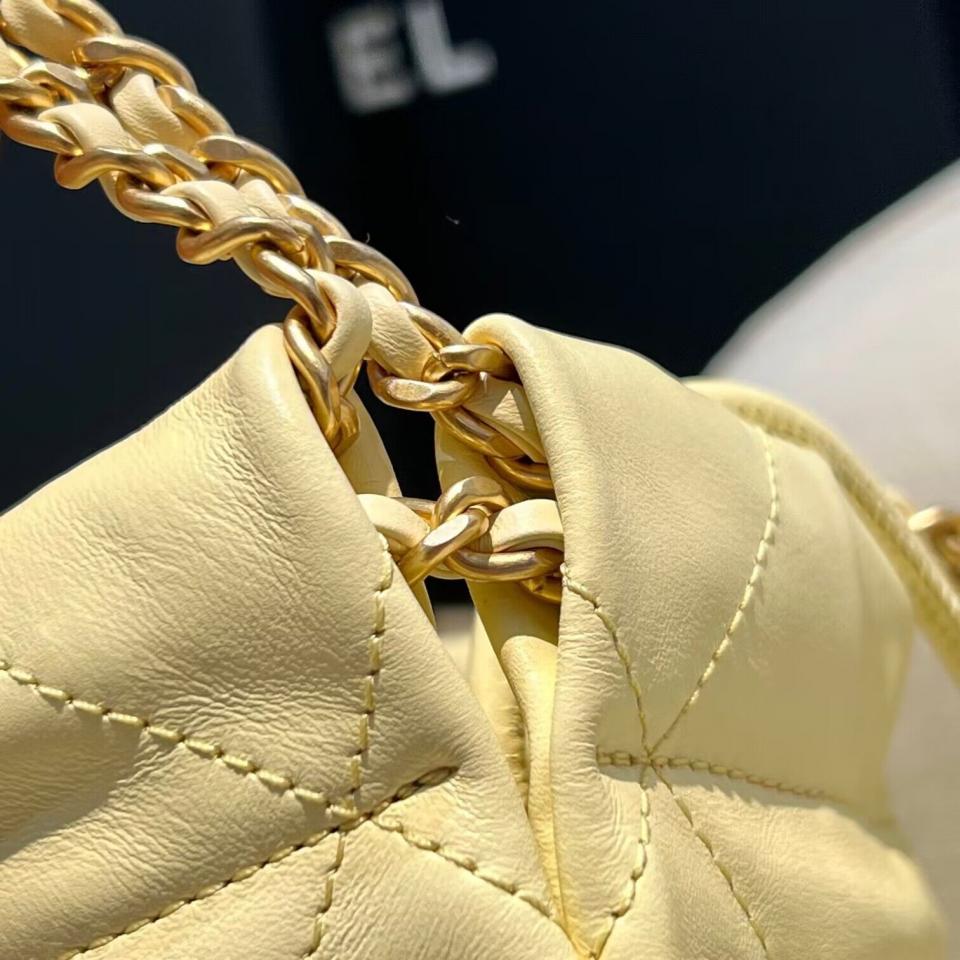 C家23新品Mini垃圾袋(黑銀/粉色/黃色) 過分的美 光面小牛皮搭配古金雙鏈條
