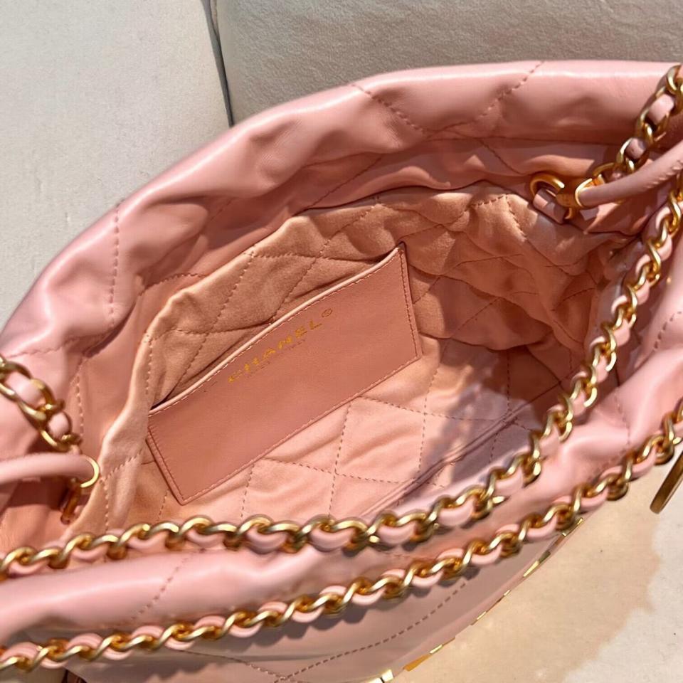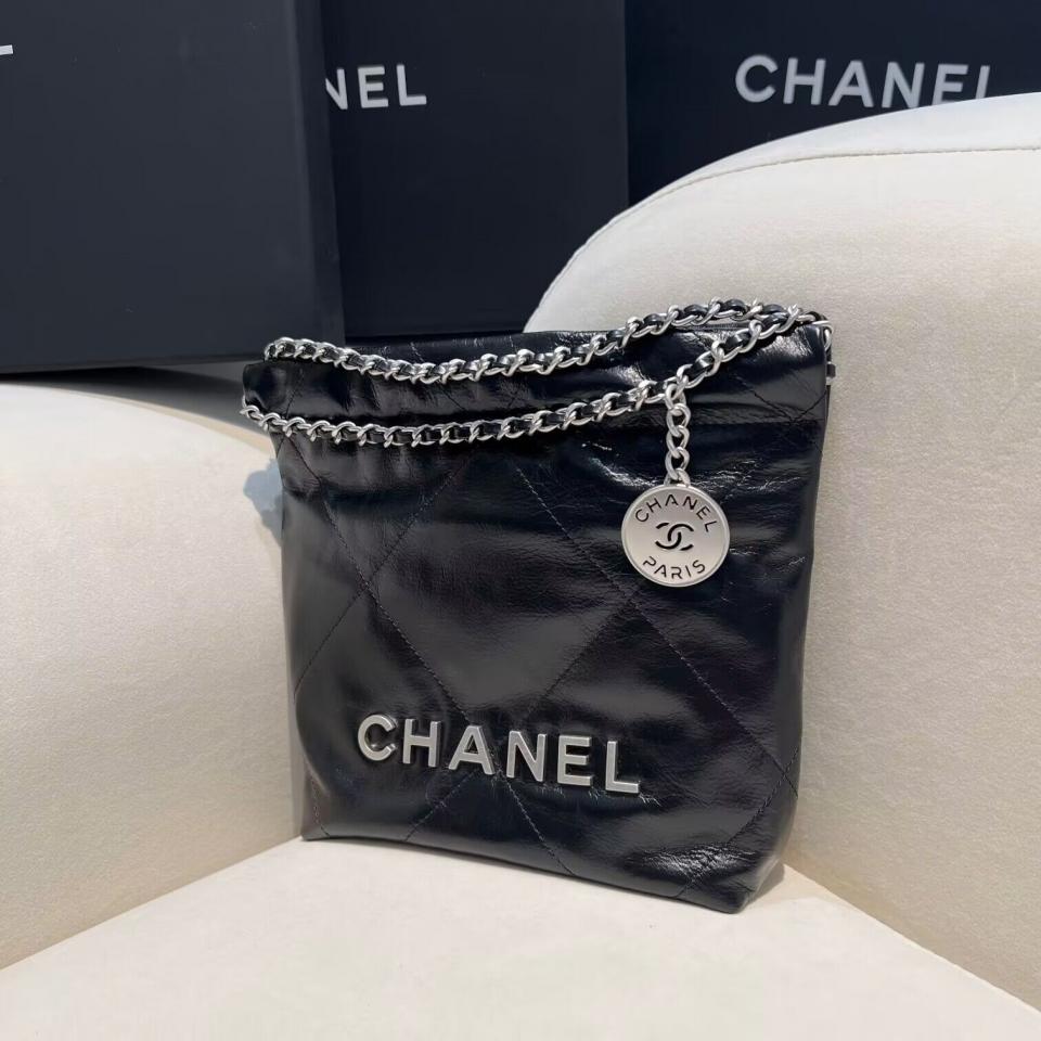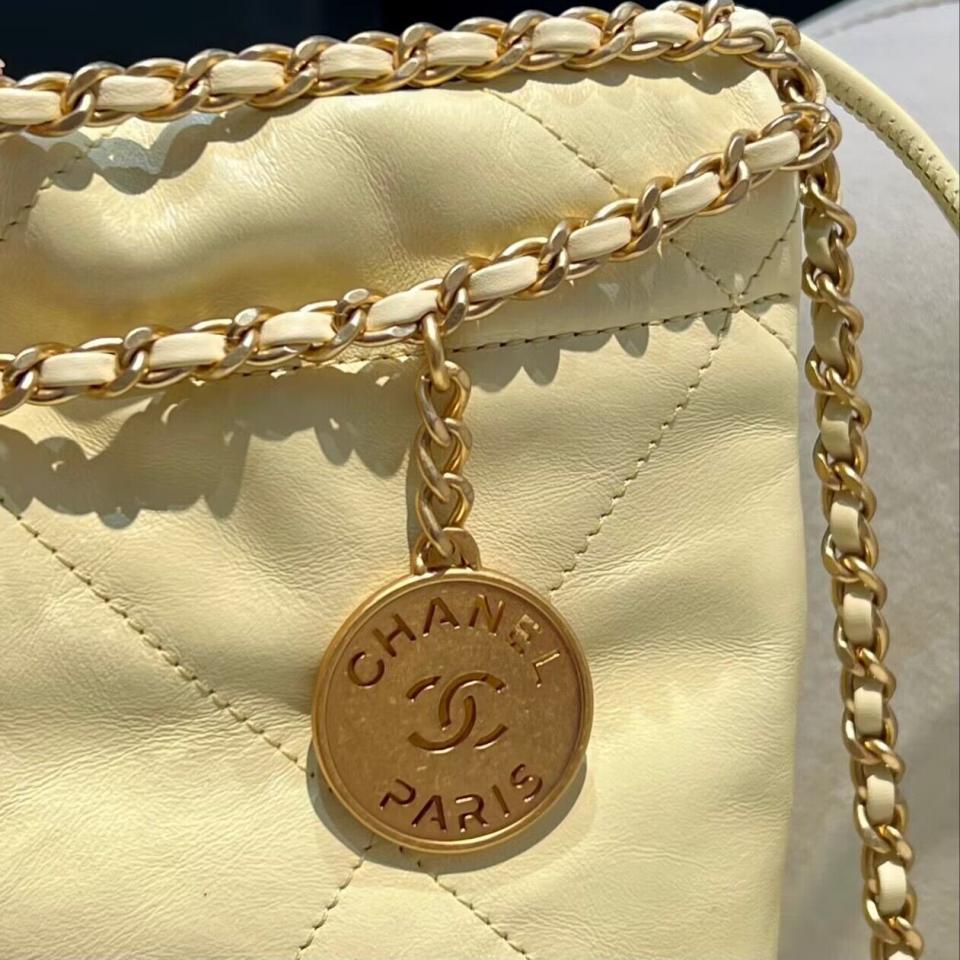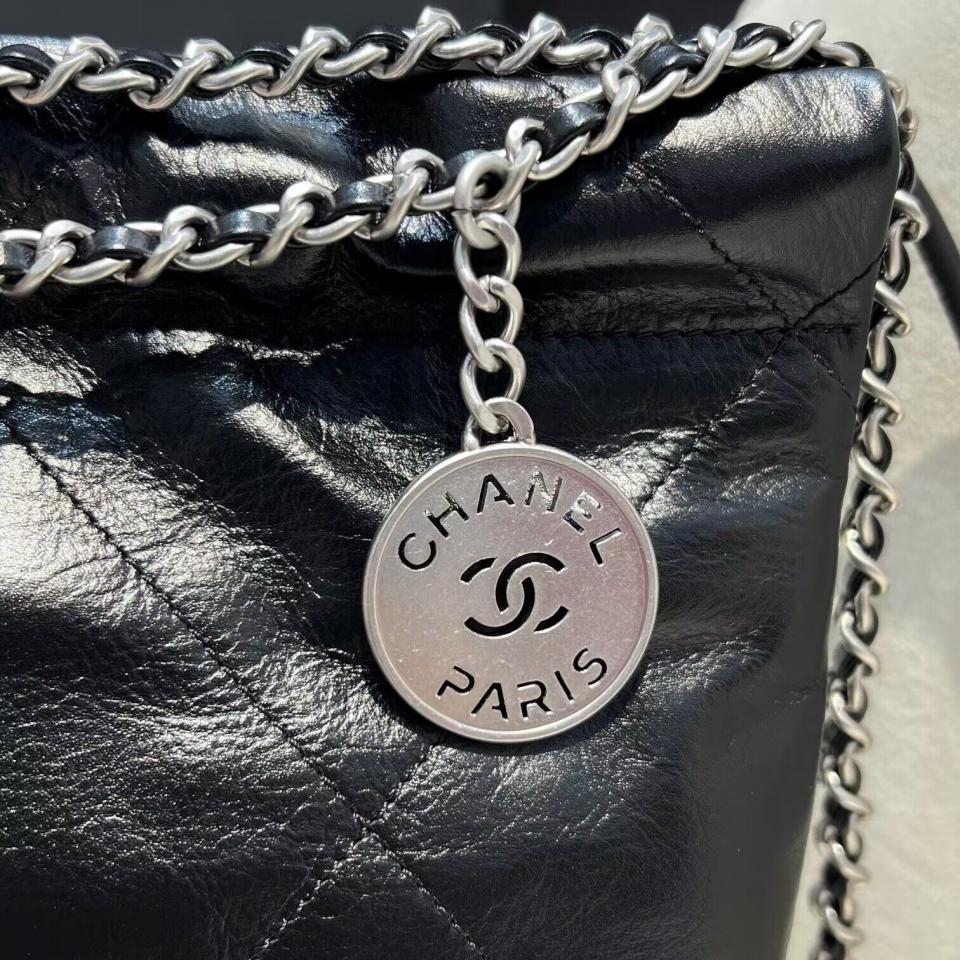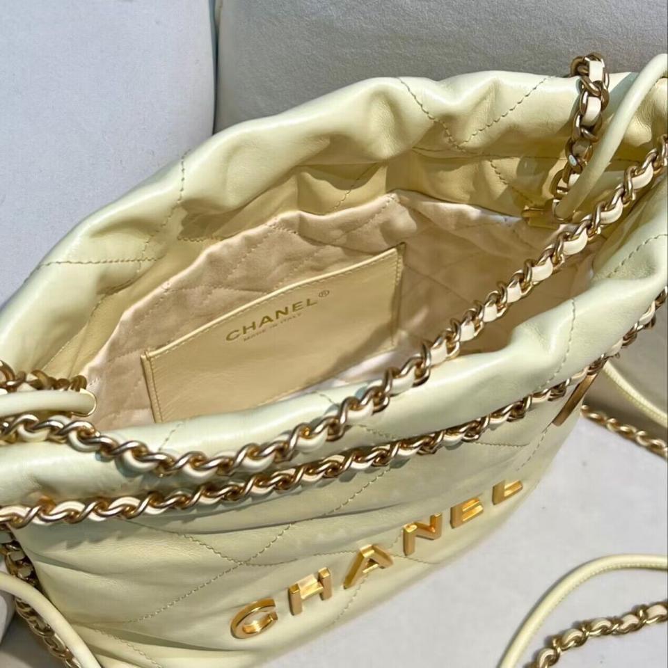 C家23新品Mini垃圾袋(黑銀/粉色/黃色) 過分的美 光面小牛皮搭配古金雙鏈條
