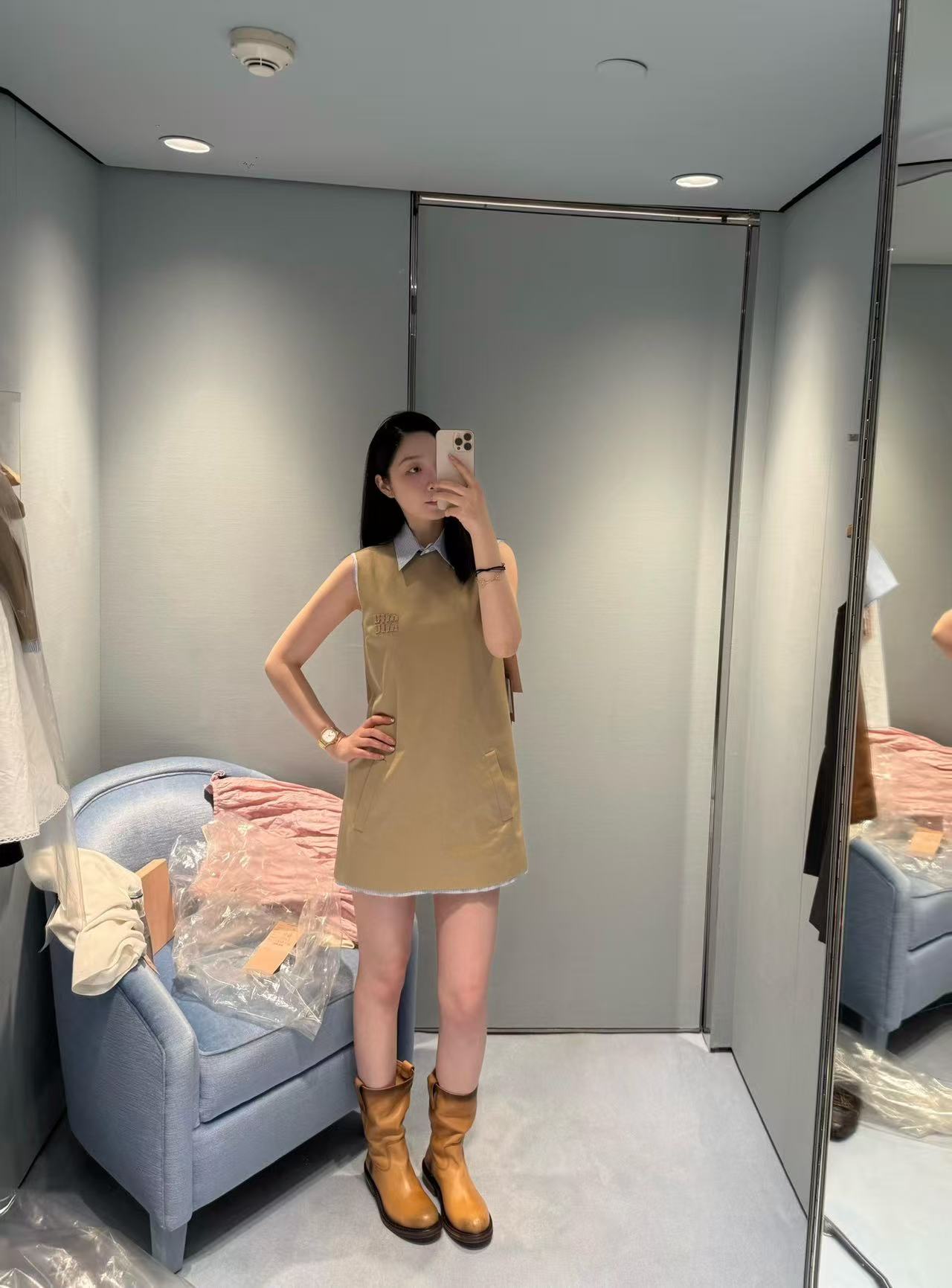 2025早春 Miu家 條紋翻領無袖連身裙