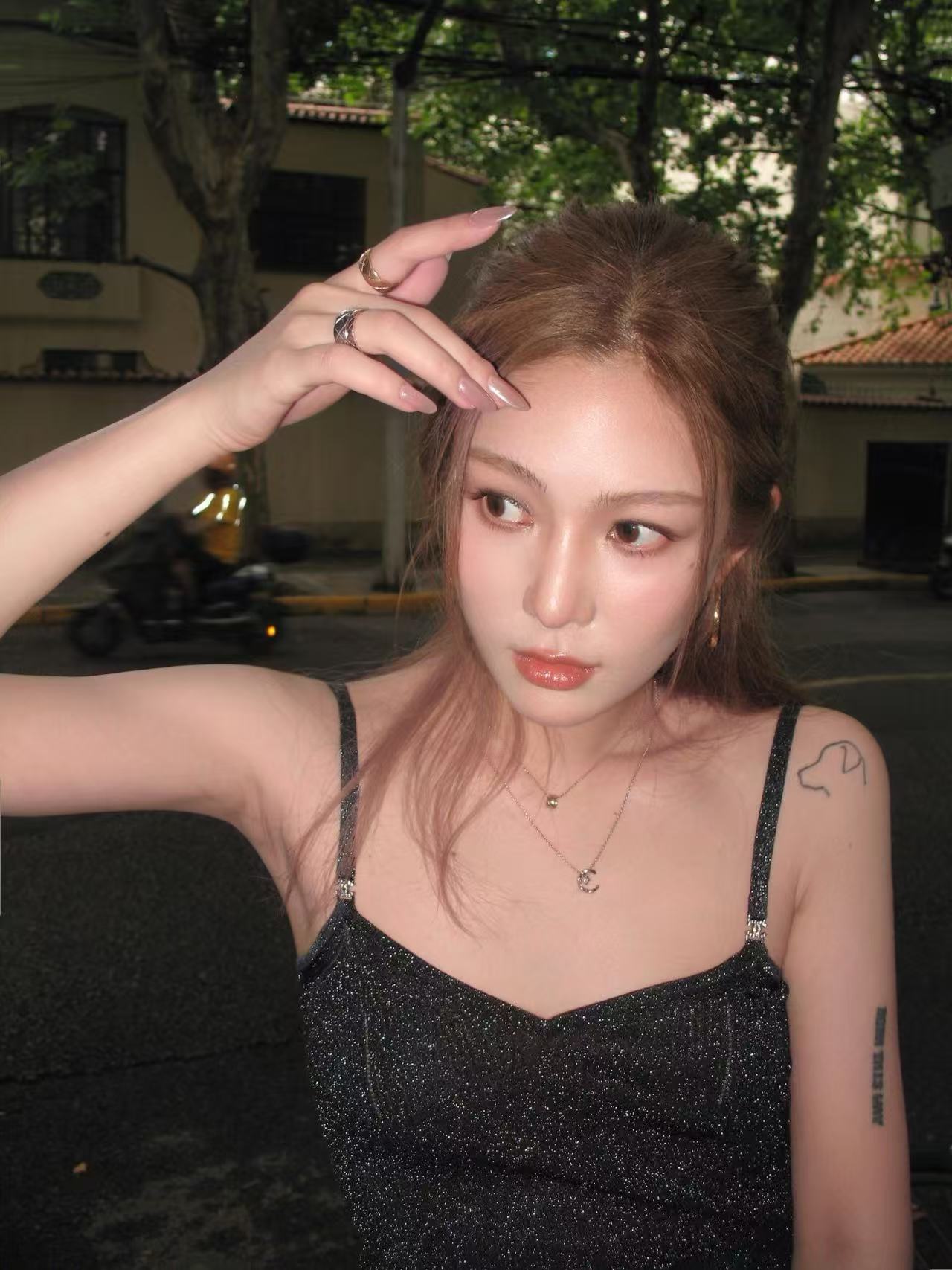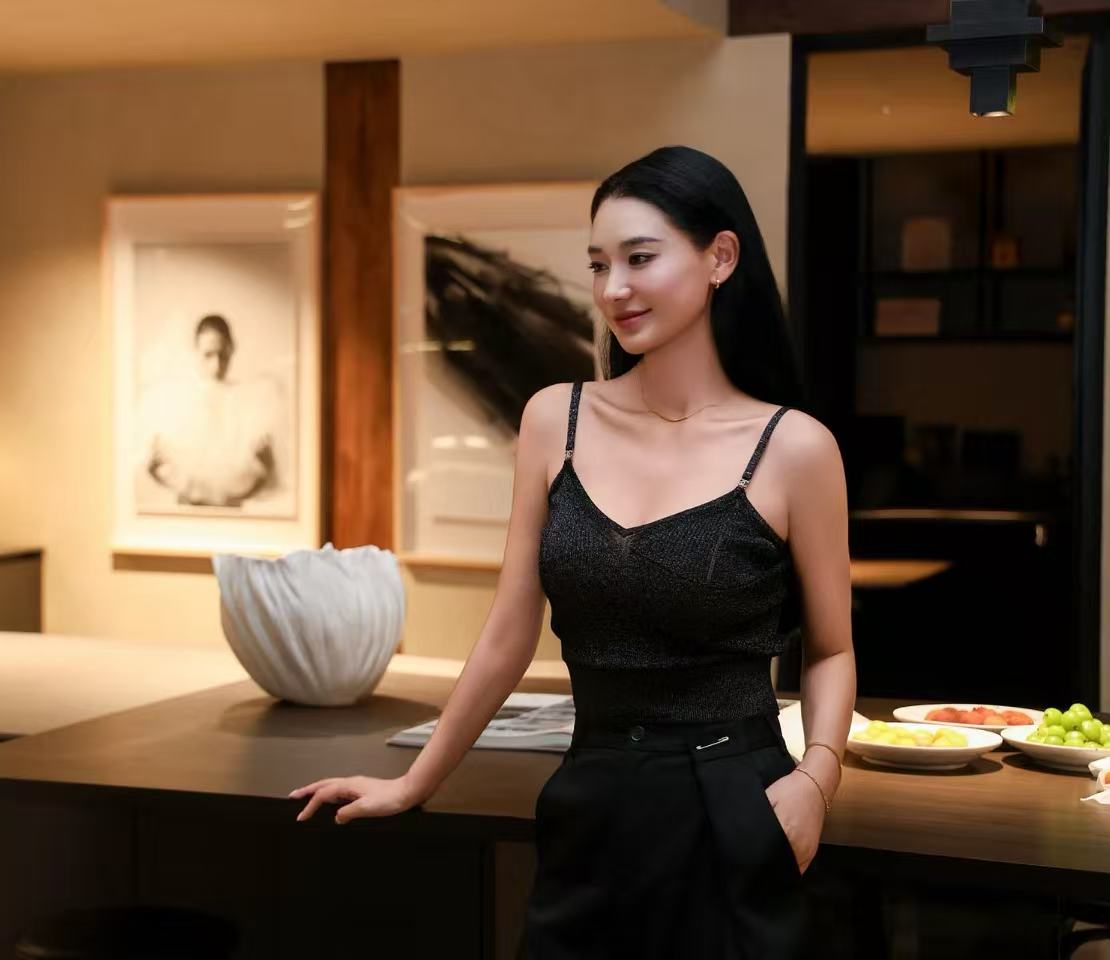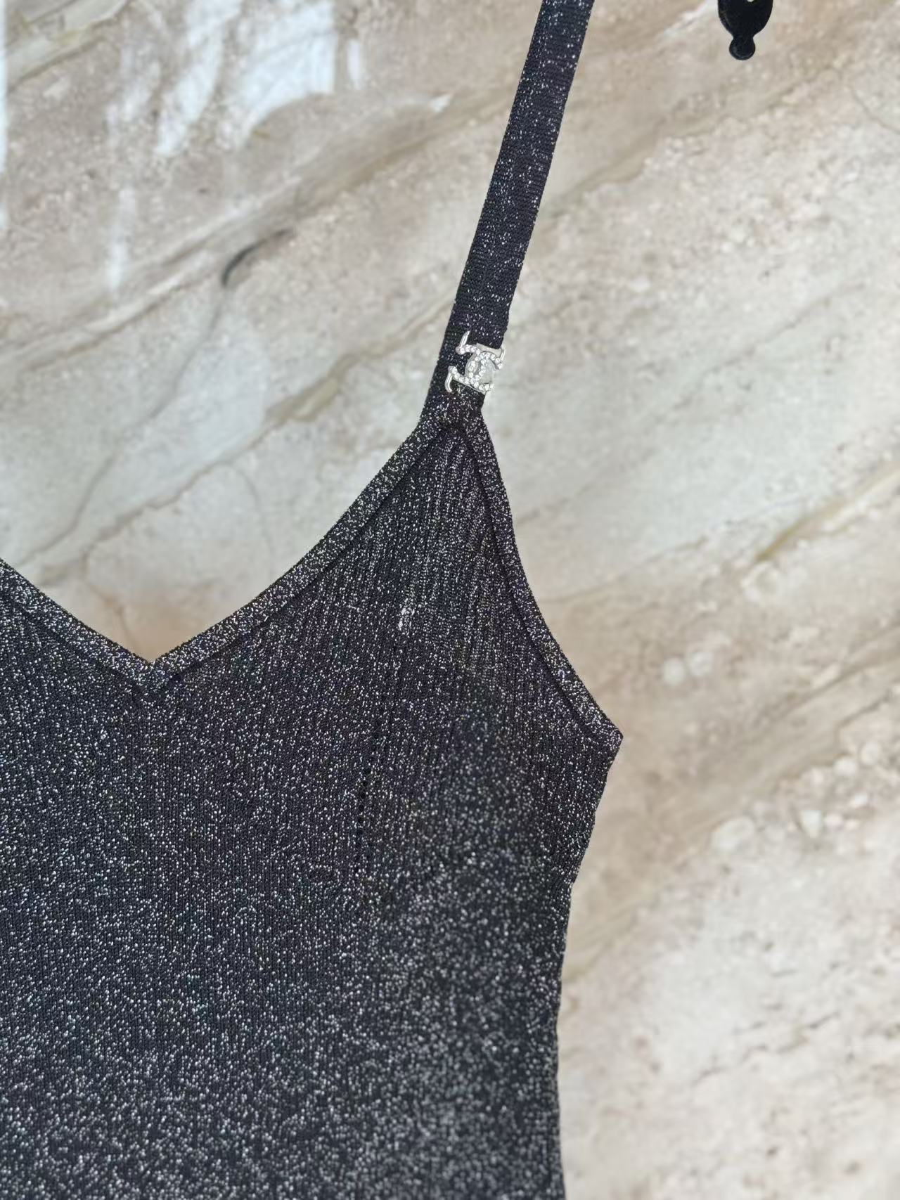 細肩帶與 V 領設計 賦予了頸部極大的視覺留白,能完美修飾臉型並展現鎖骨的纖細感。
