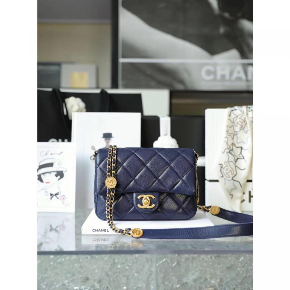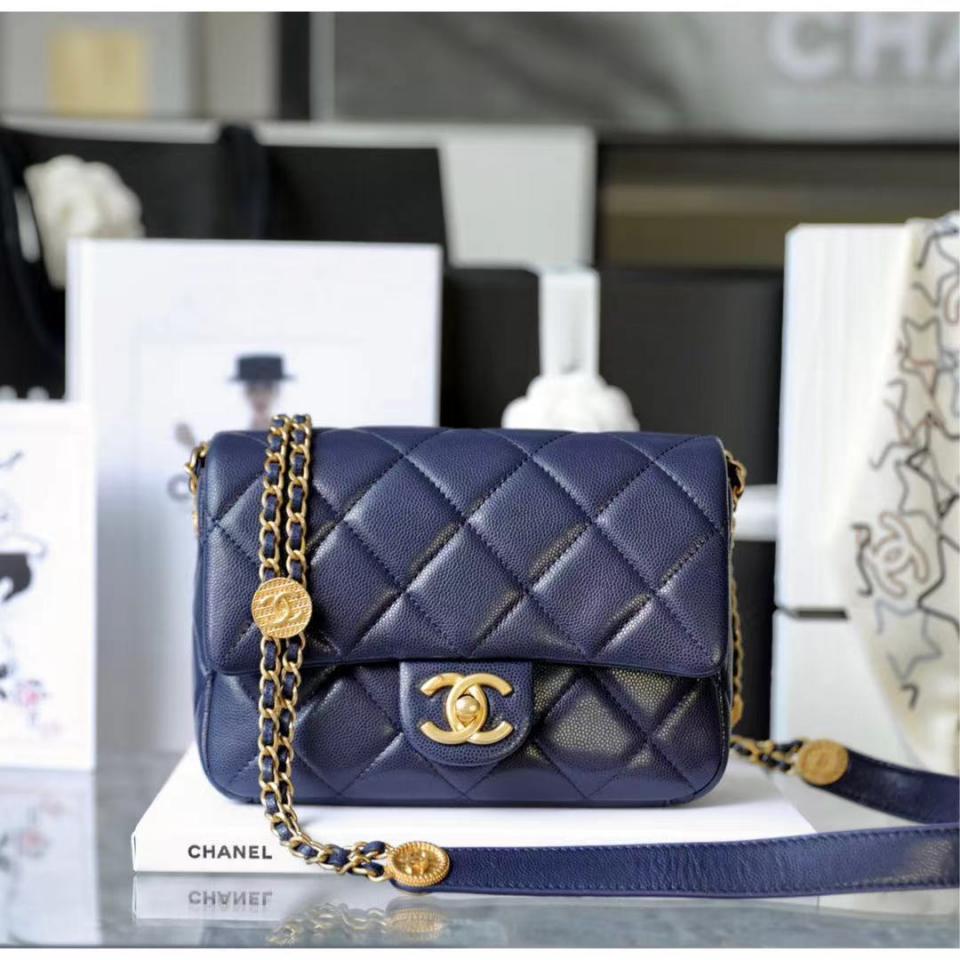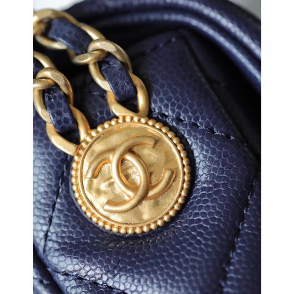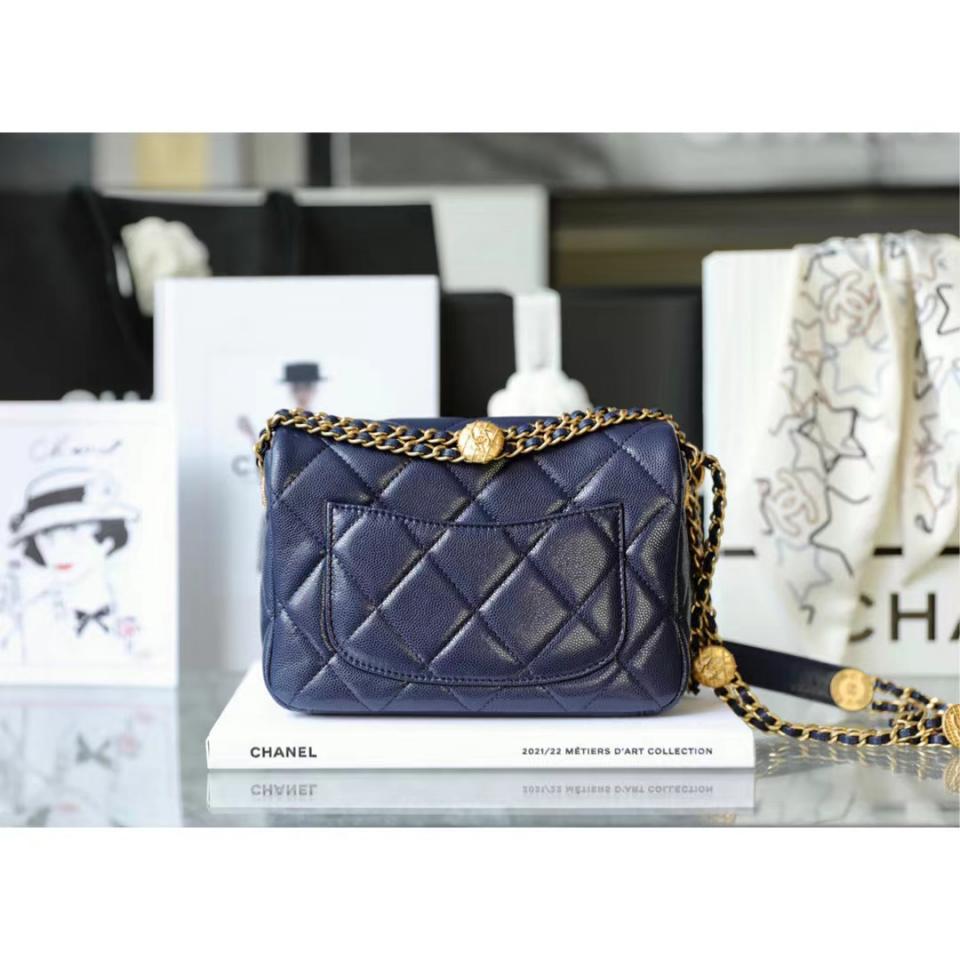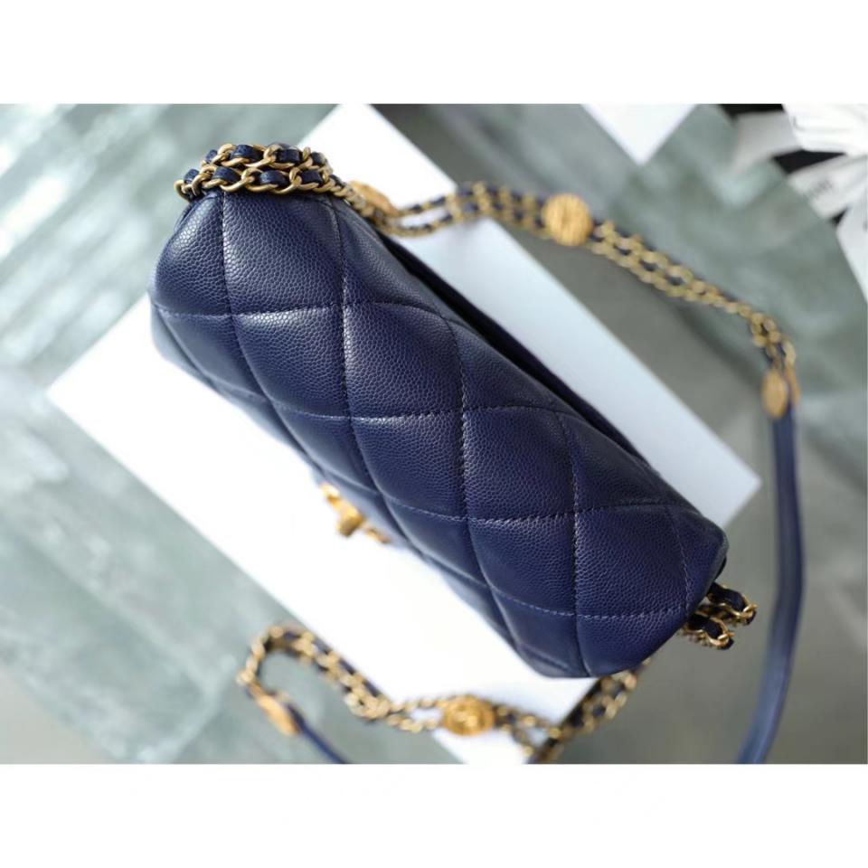 C家徽章金幣鏈條口蓋包(海軍藍21cm)