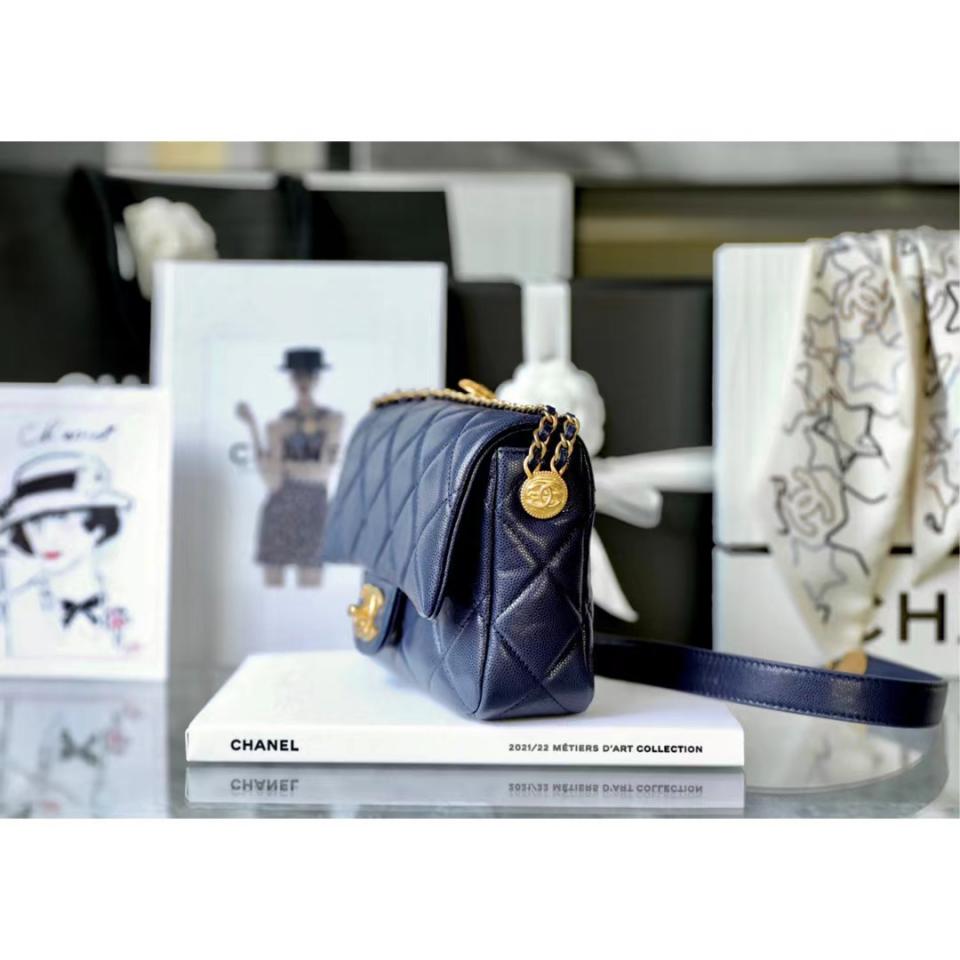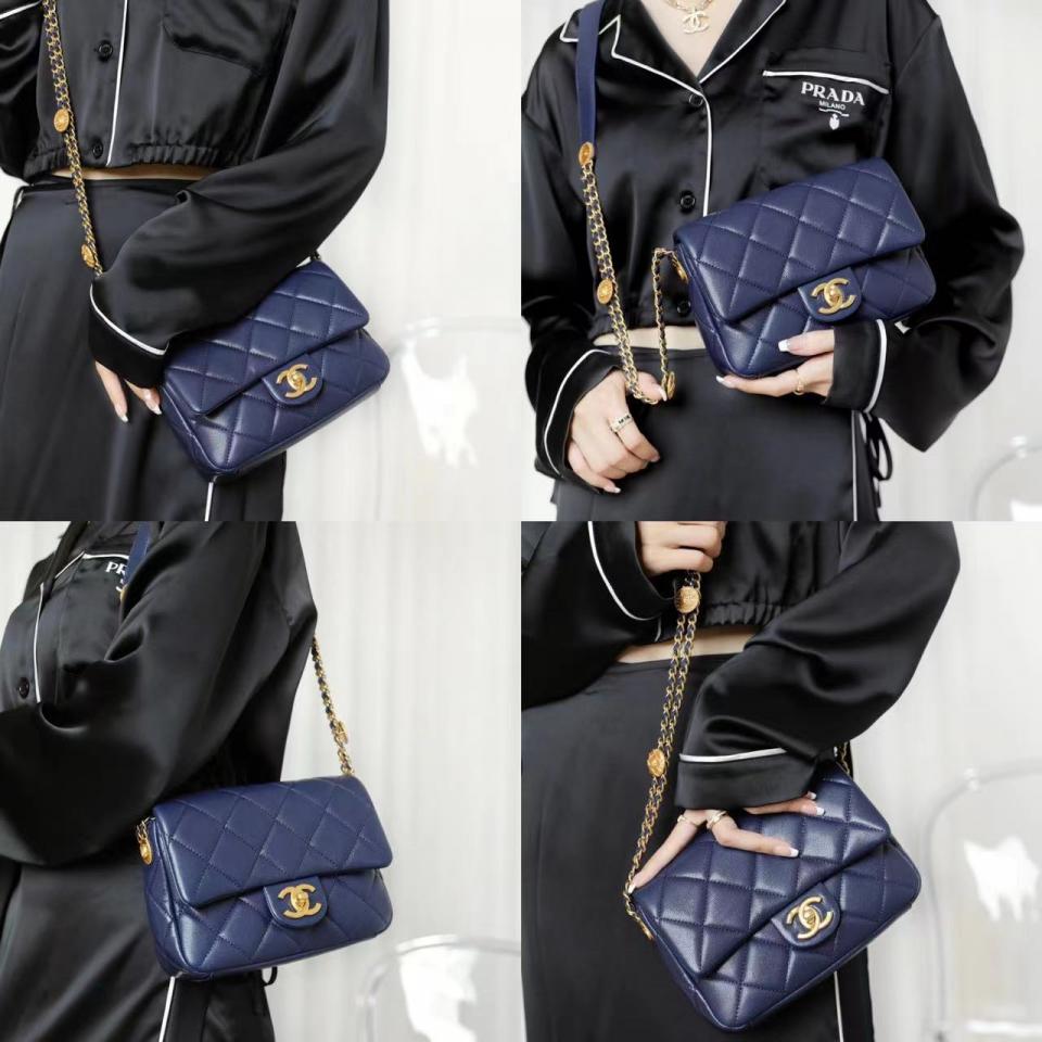 2022春夏新品 高級手工坊 徽章金幣鏈條口蓋包(海軍藍21cm) 金幣鏈條非常重工精緻