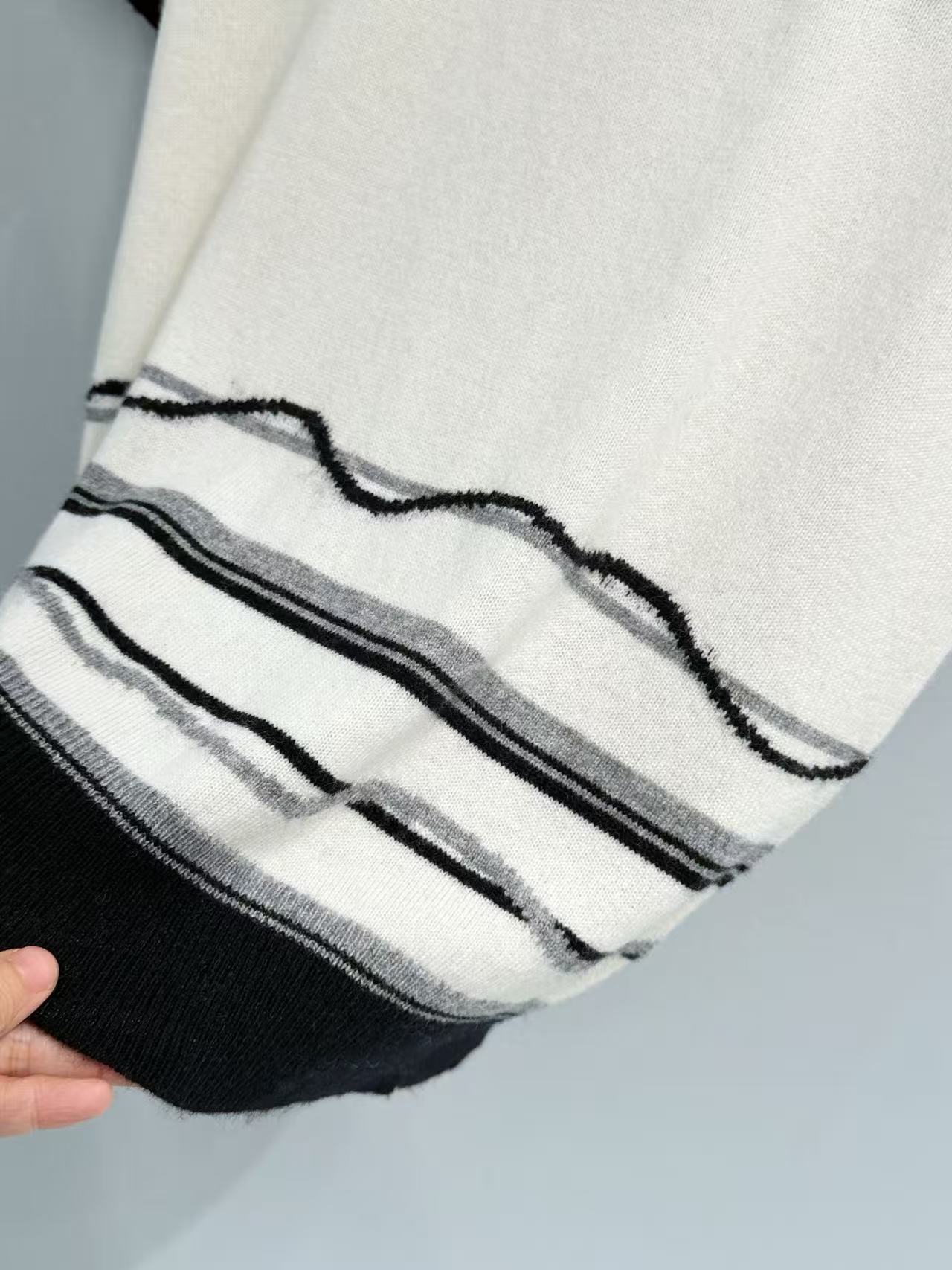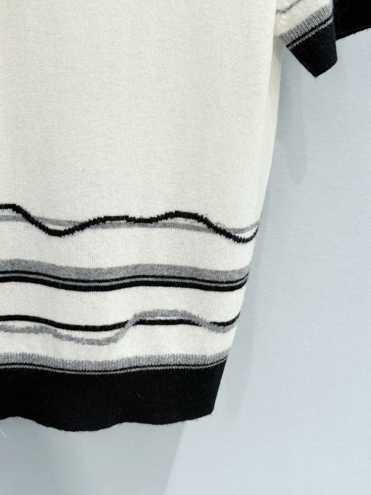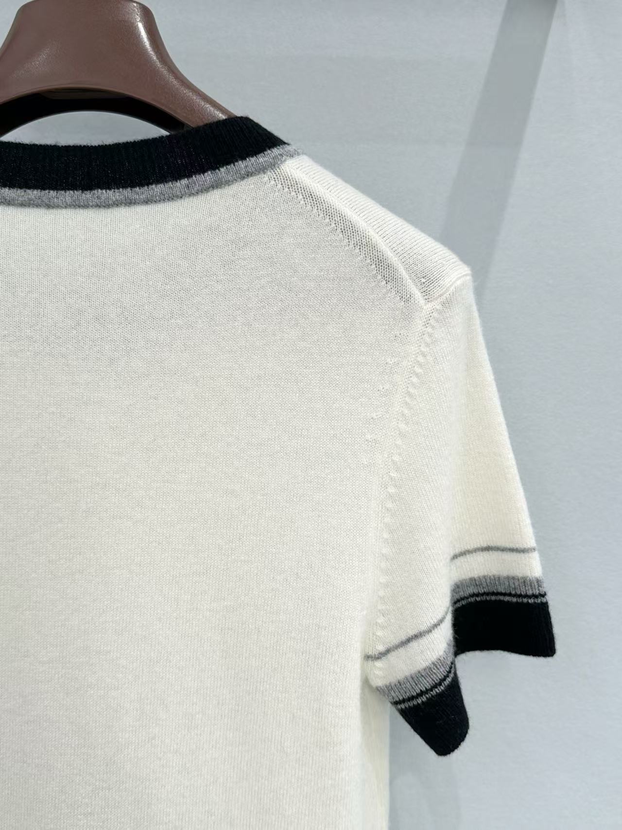 不易變形的緊實織法: 雖然手感柔軟,但織法紮實,特別是領口與袖口的撞色處經過加固處理,洗滌後依然能維持漂亮的廓形。