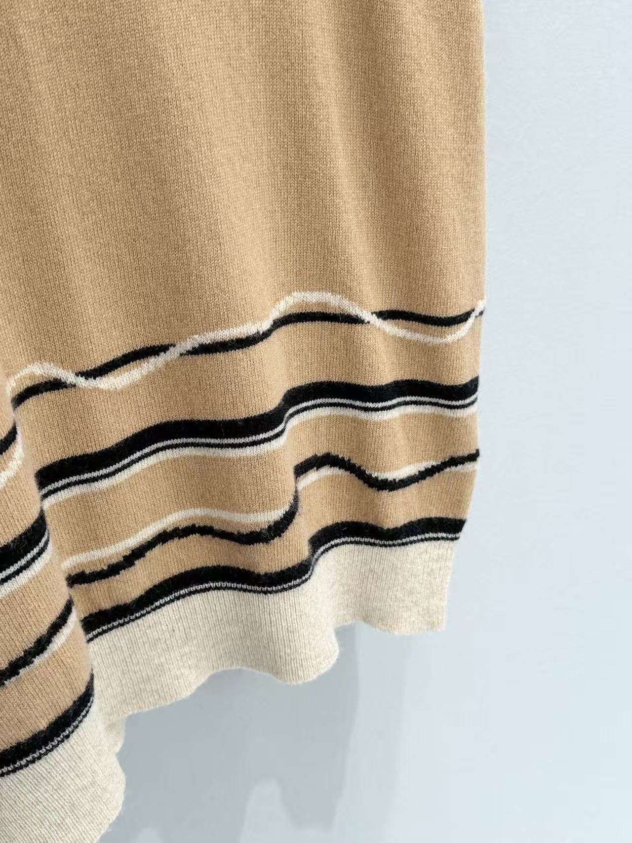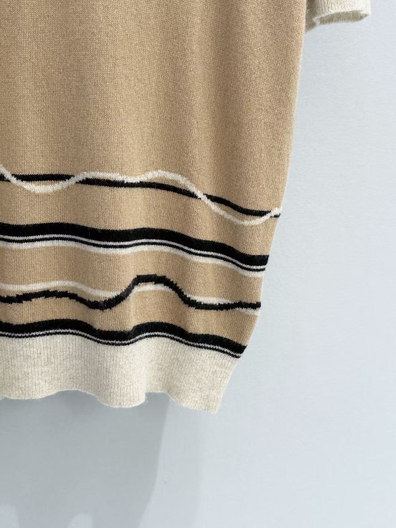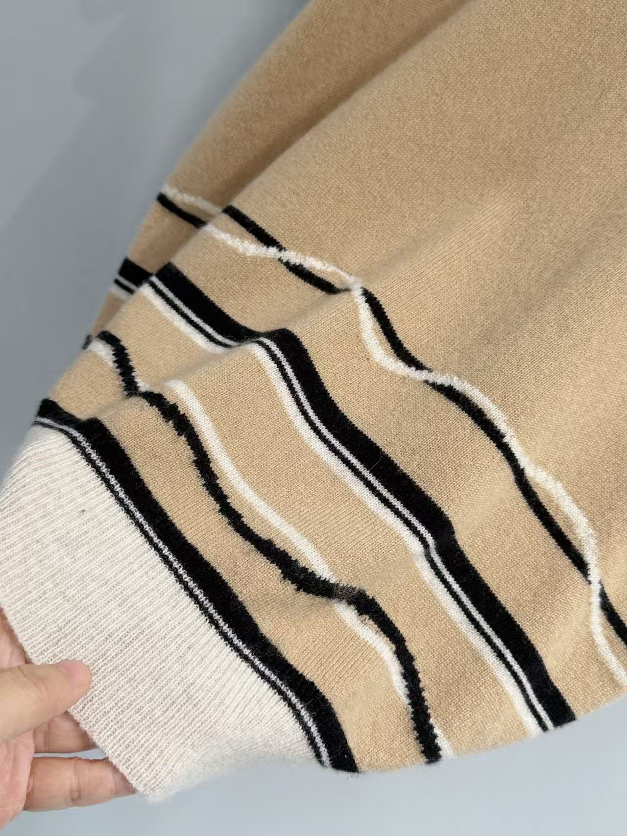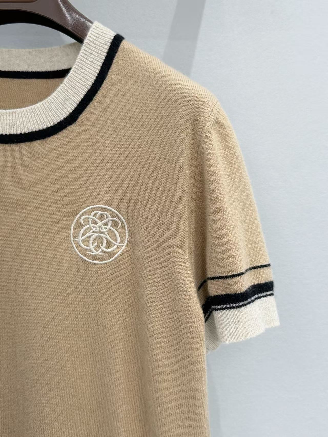 不易變形的緊實織法: 雖然手感柔軟,但織法紮實,特別是領口與袖口的撞色處經過加固處理,洗滌後依然能維持漂亮的廓形。