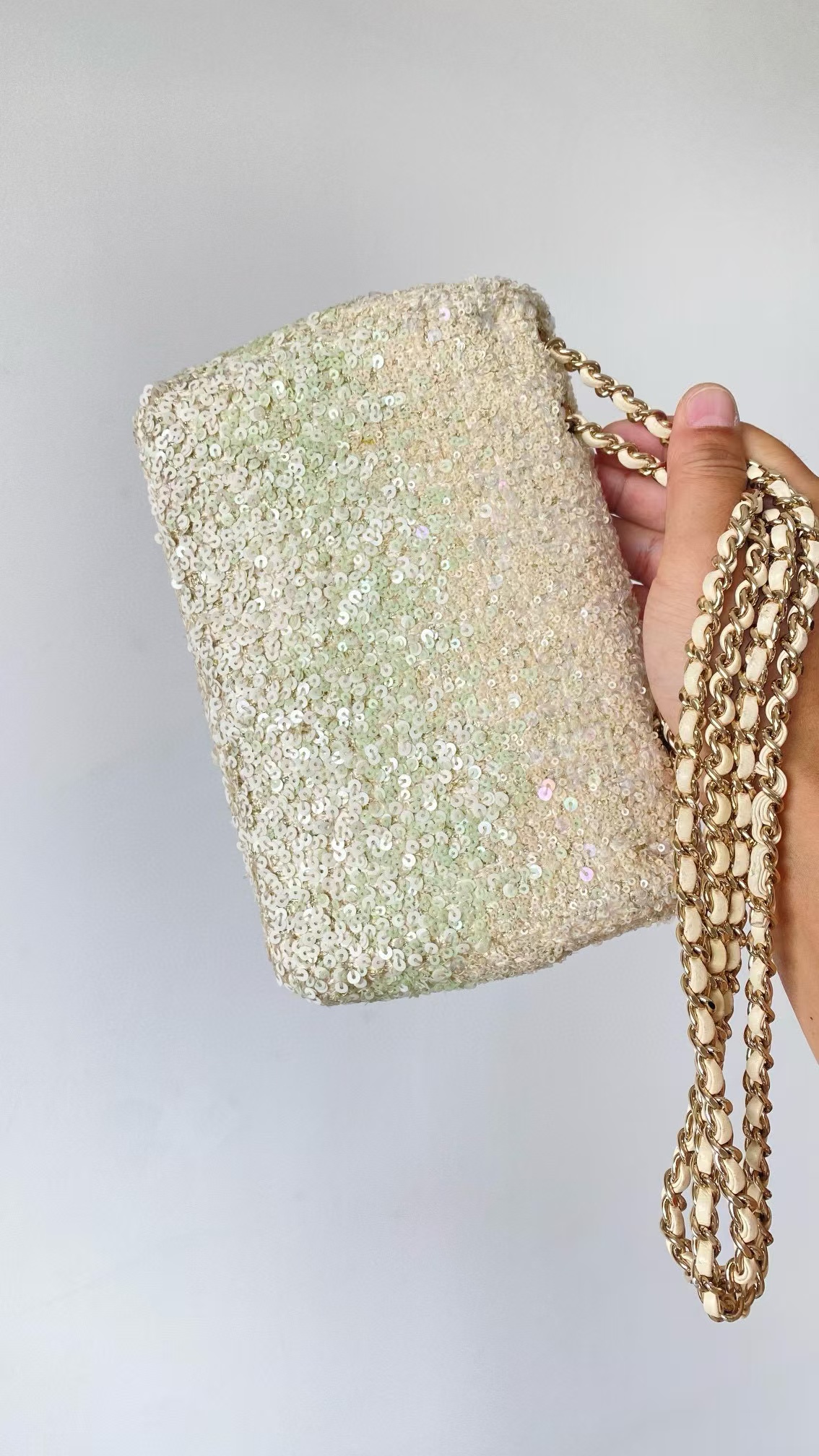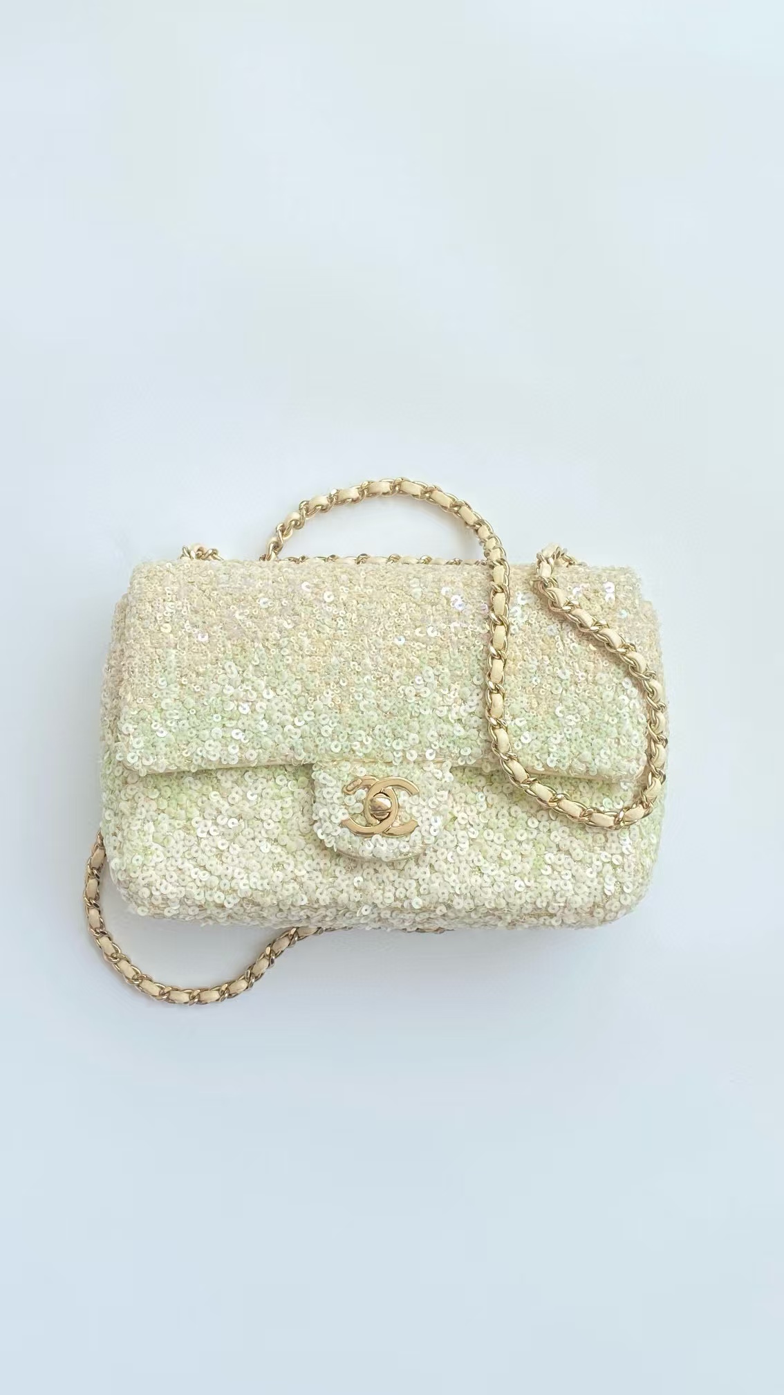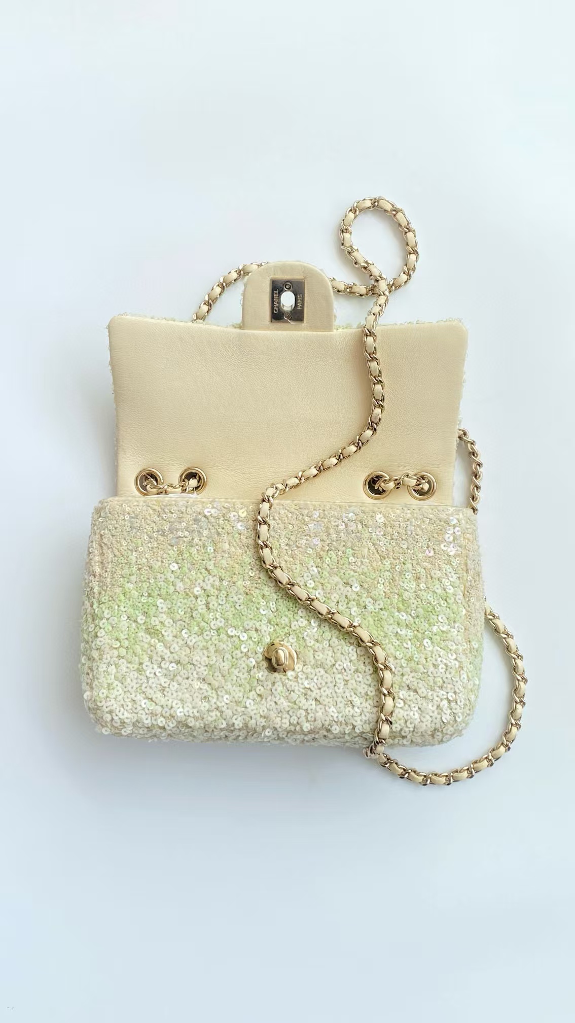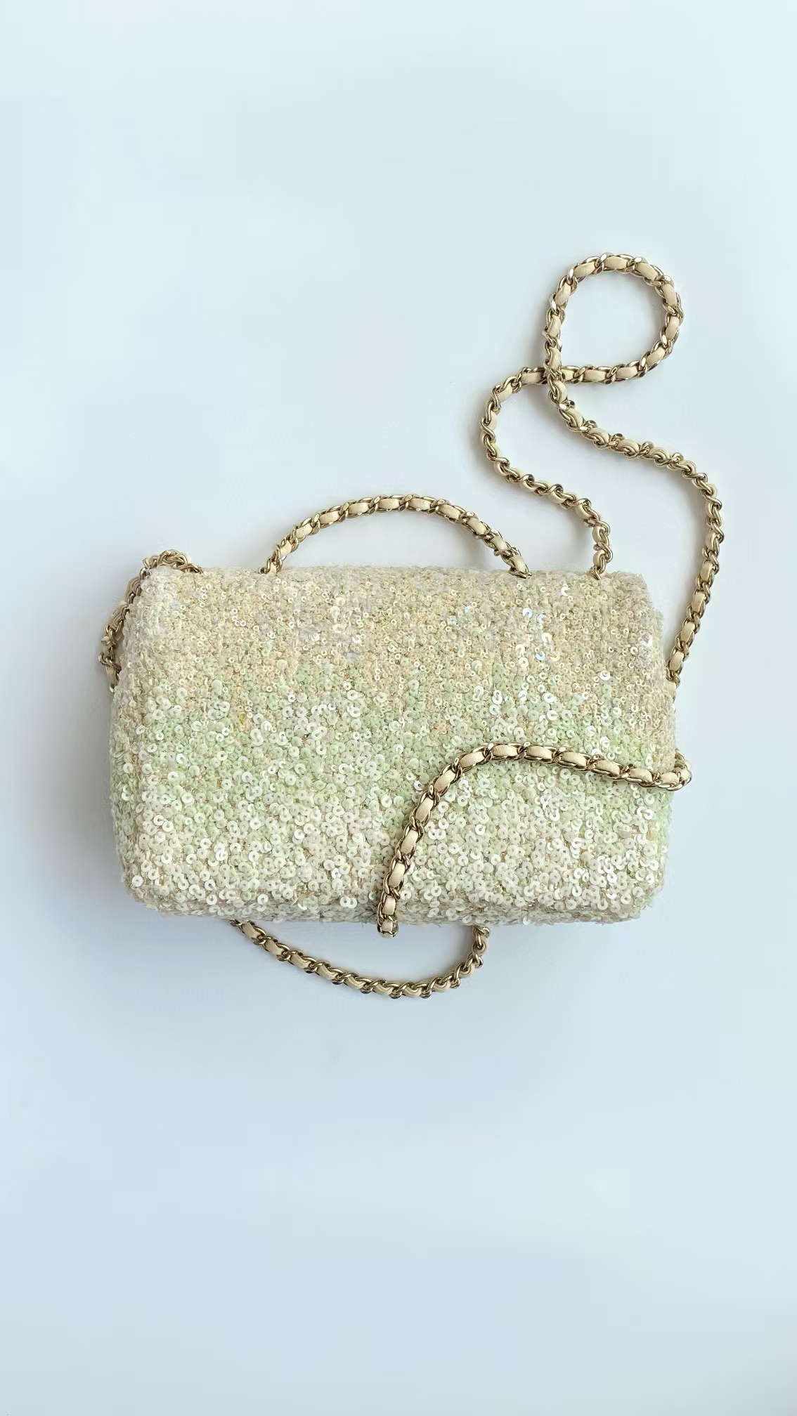 2024秋冬經典款 C家限定星空亮片口蓋包 黃綠漸變亮片