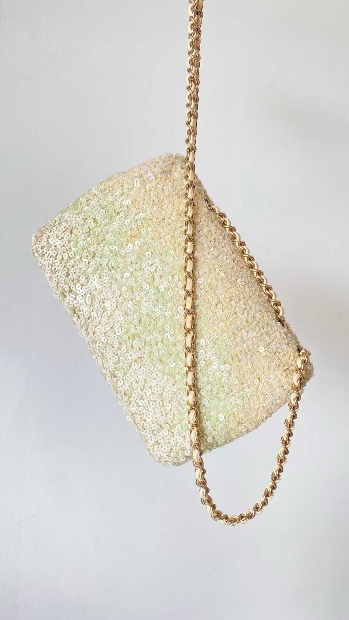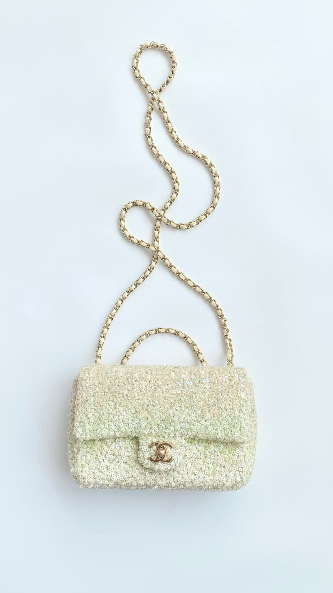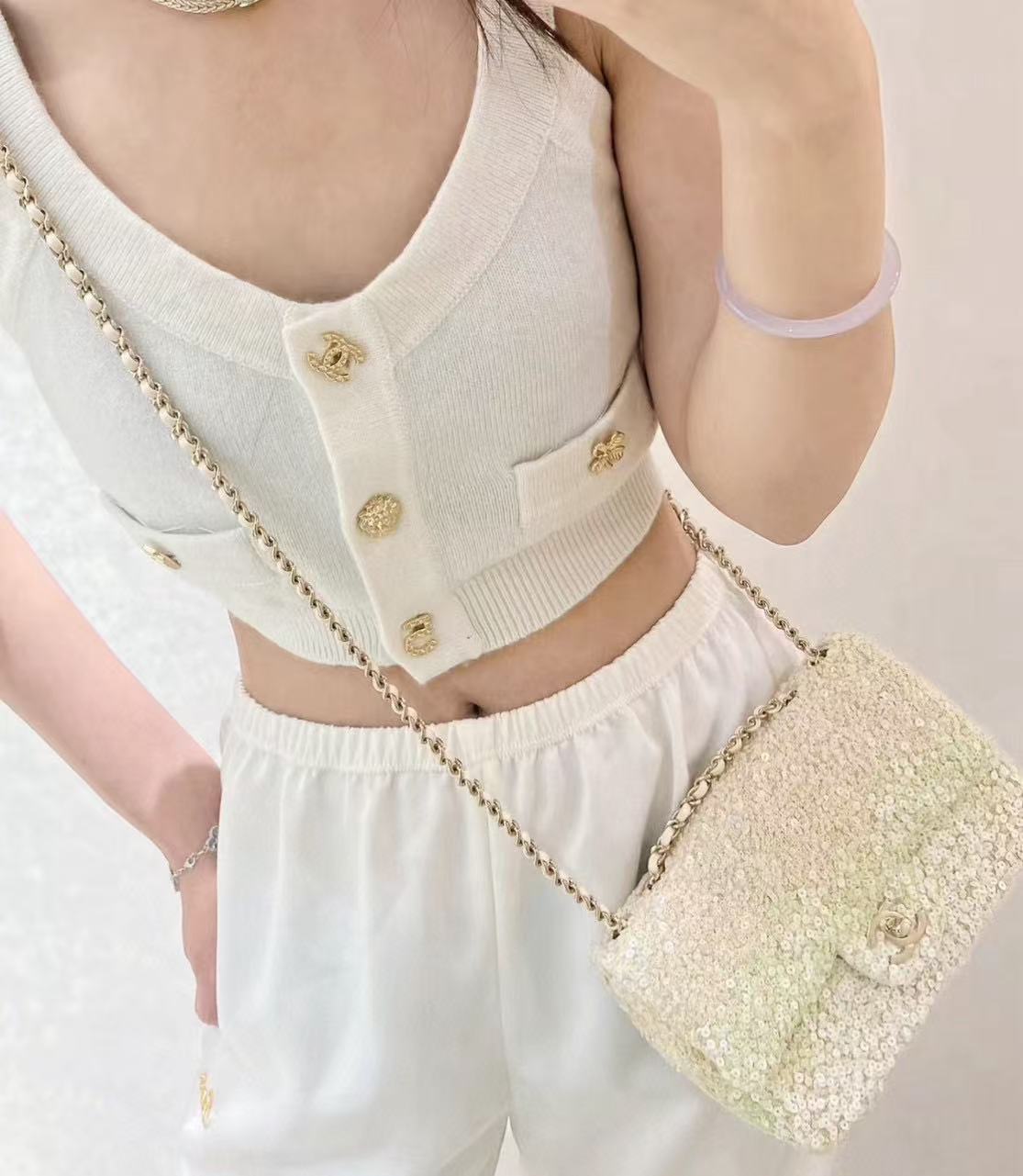 2024秋冬經典款 C家限定星空亮片口蓋包 黃綠漸變亮片