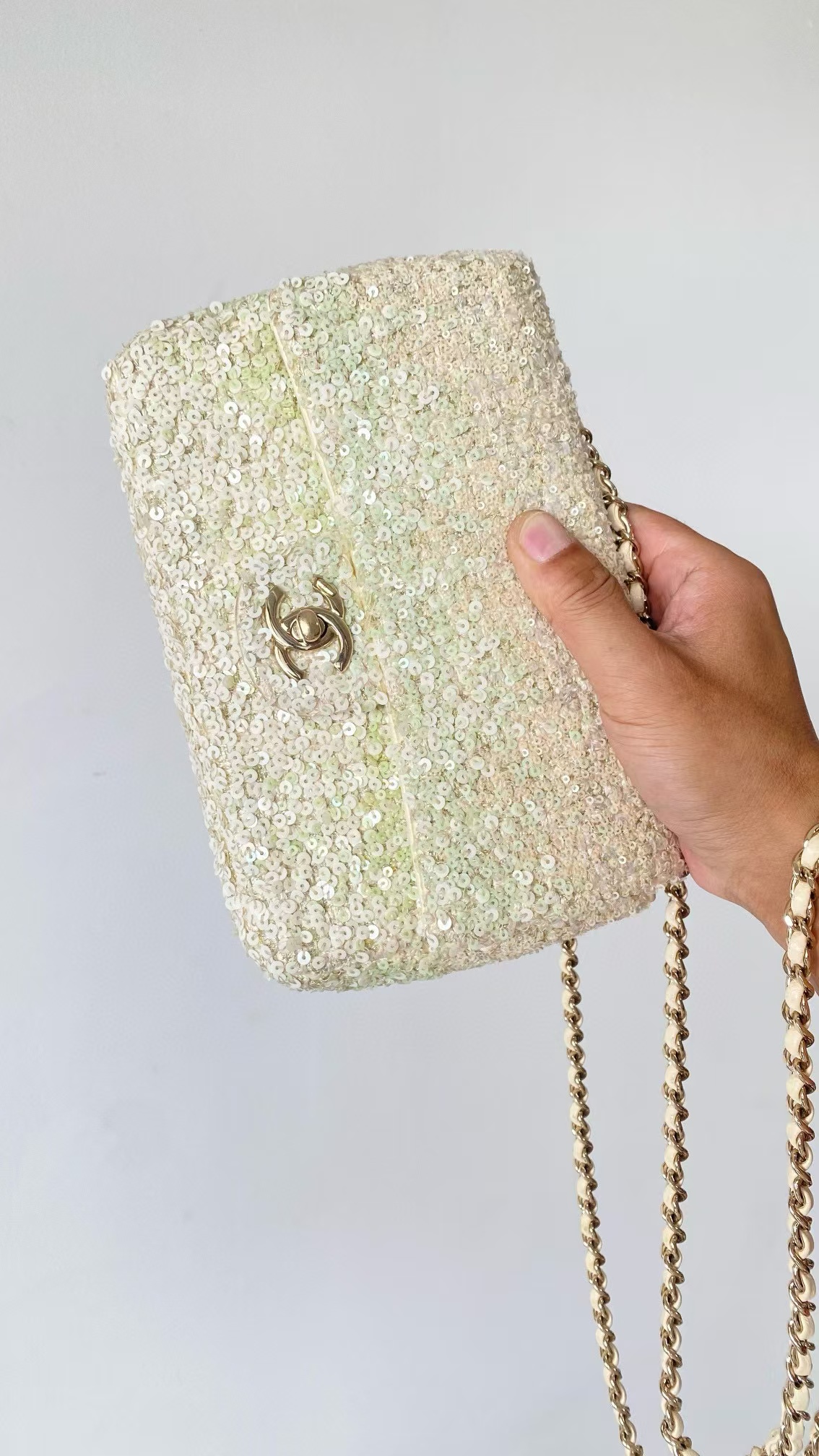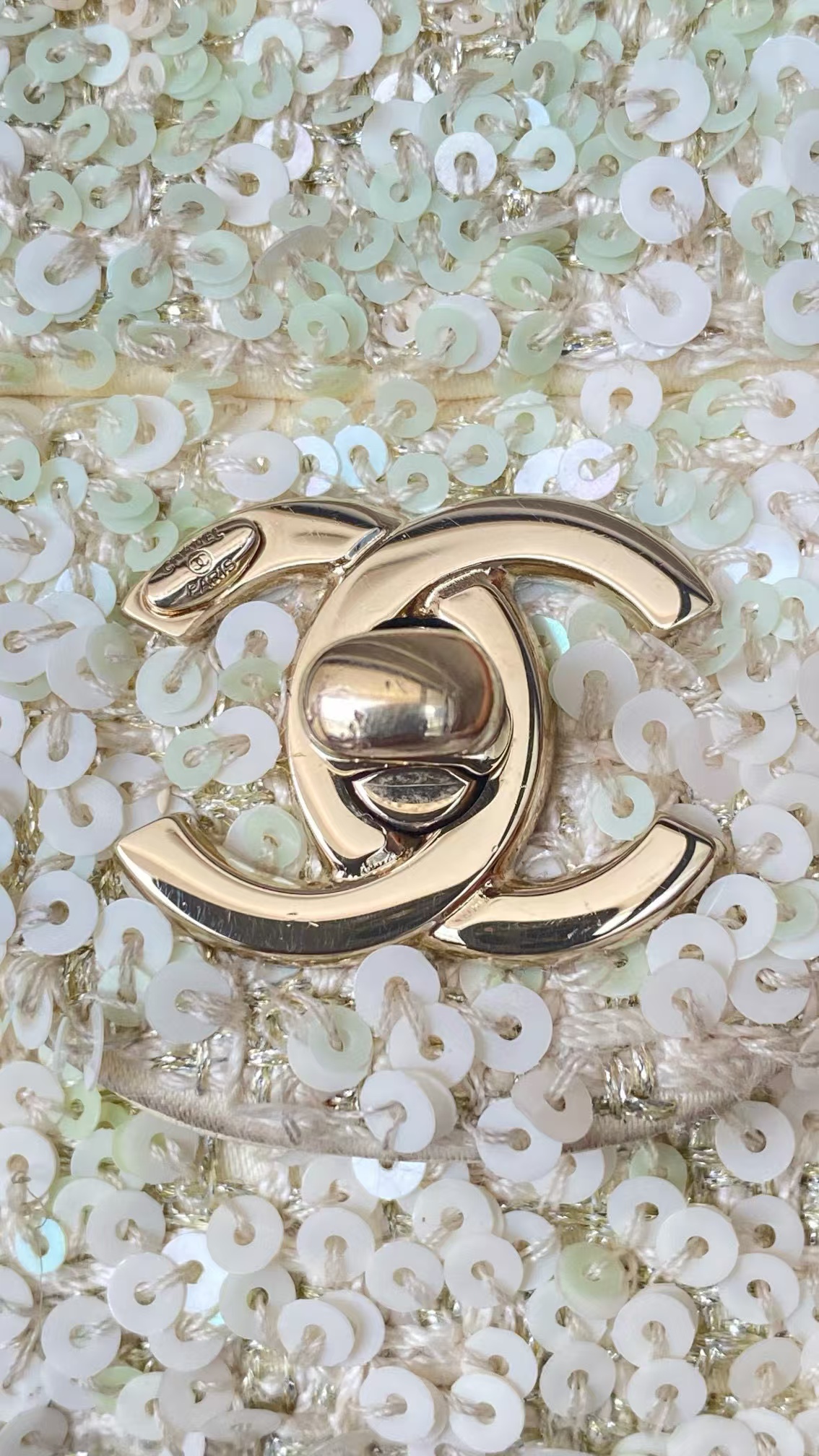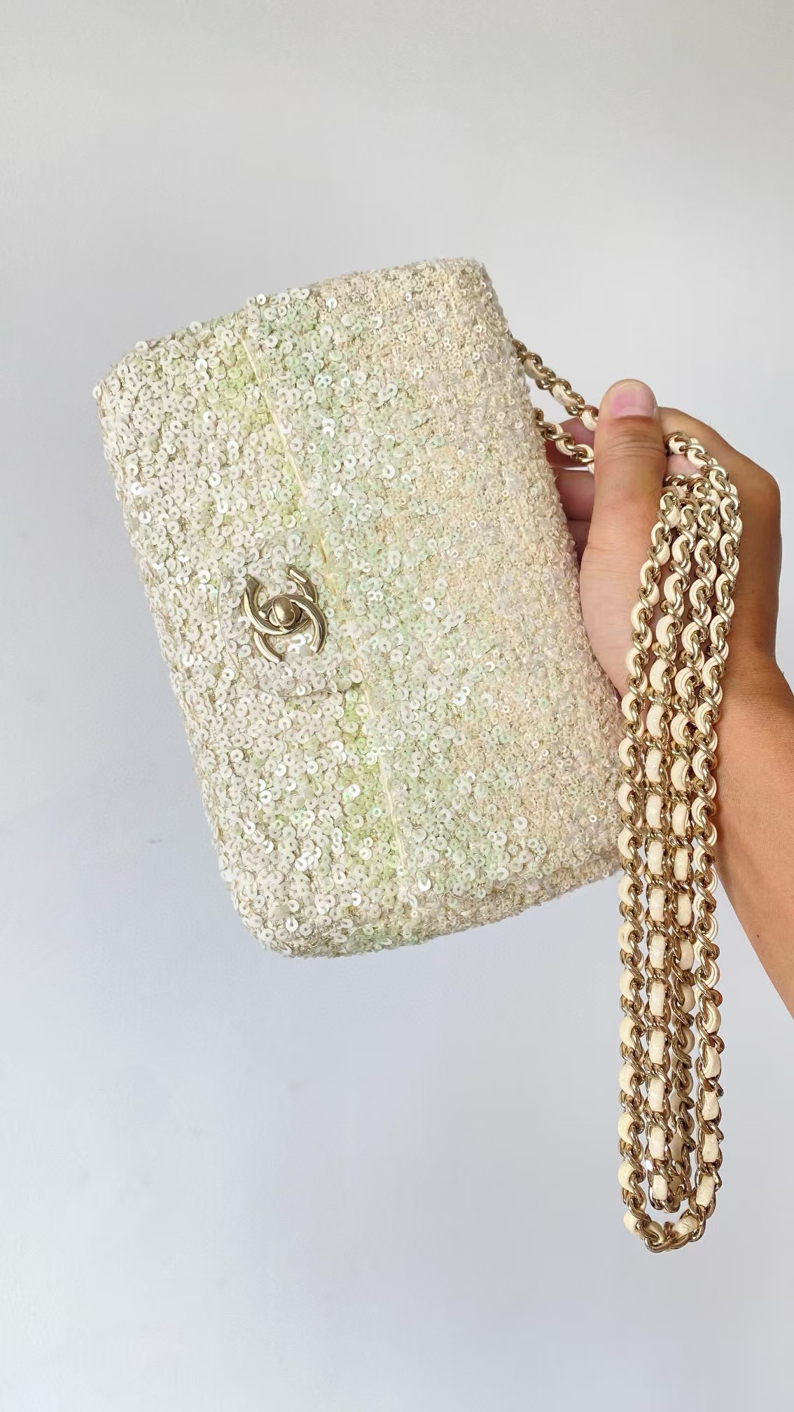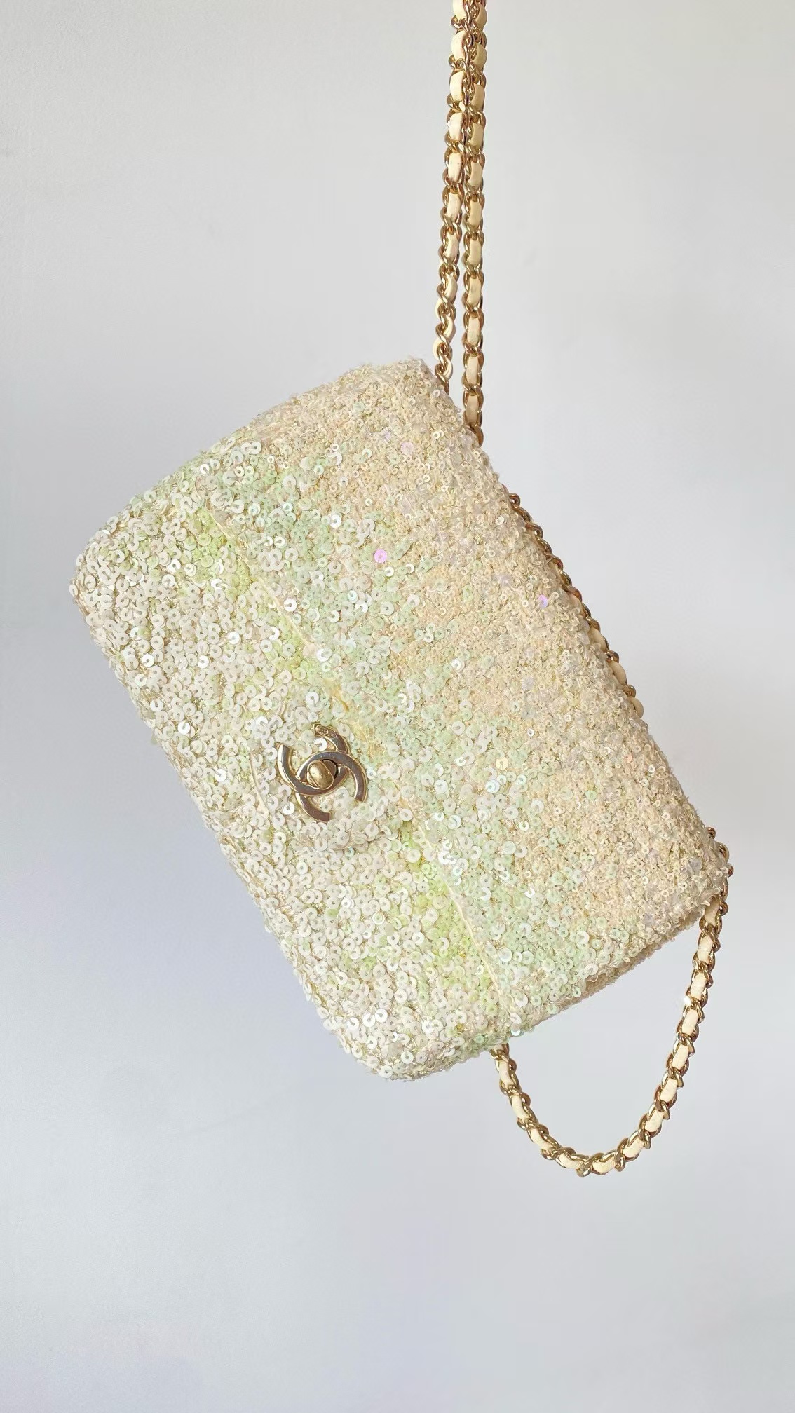 2024秋冬經典款 C家限定星空亮片口蓋包 黃綠漸變亮片