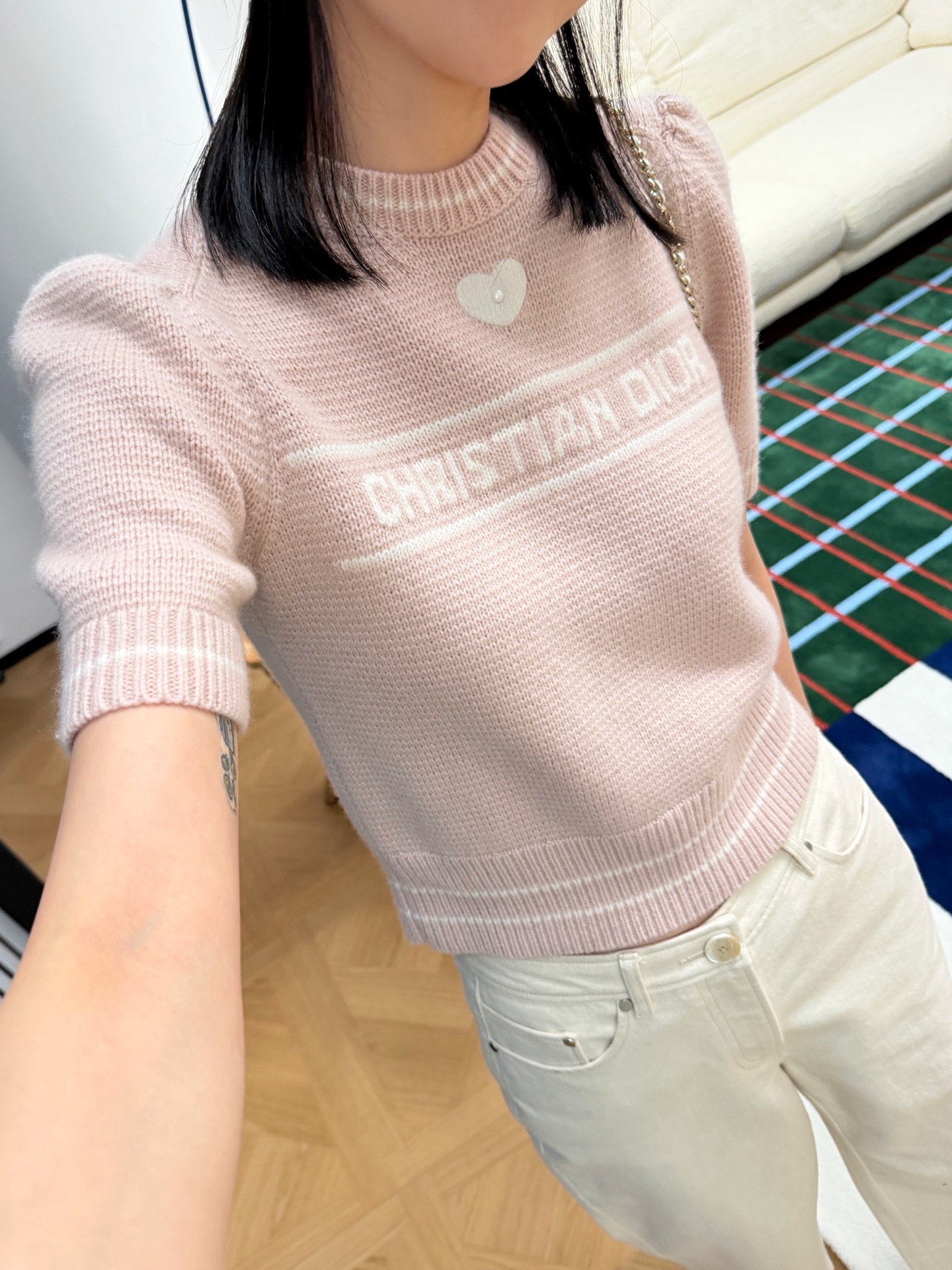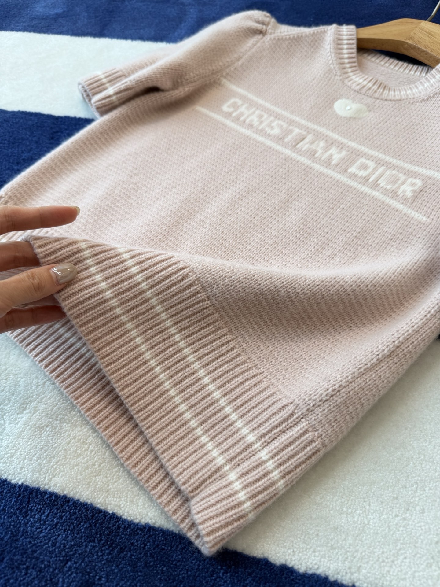 D家 愛心珍珠針織短袖