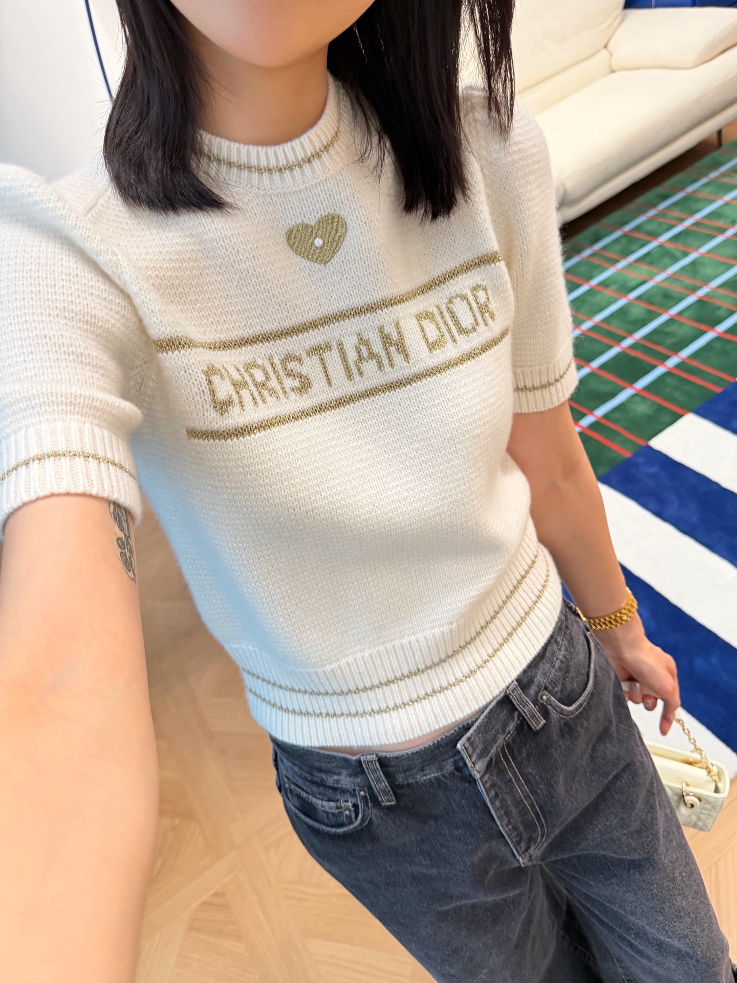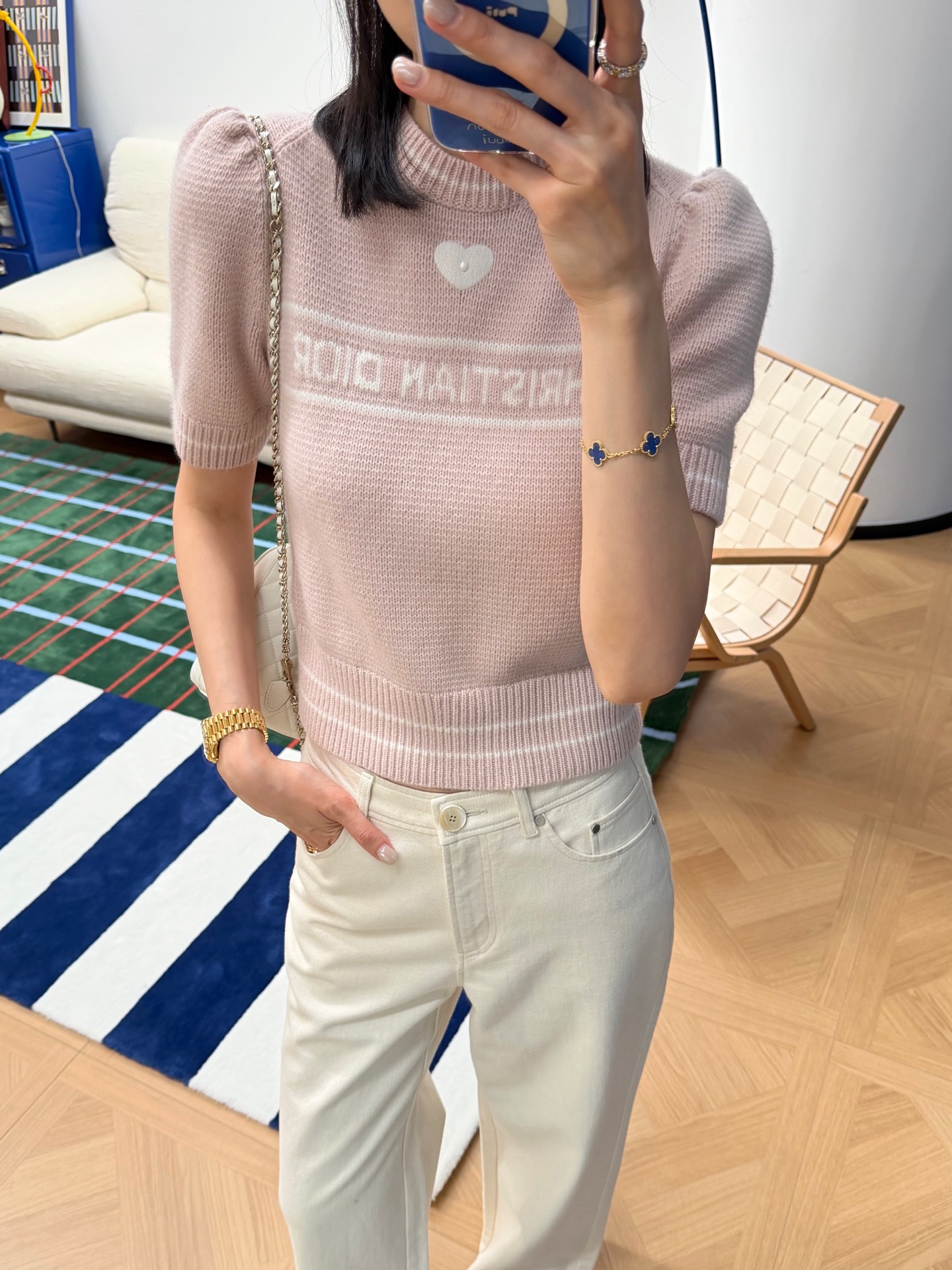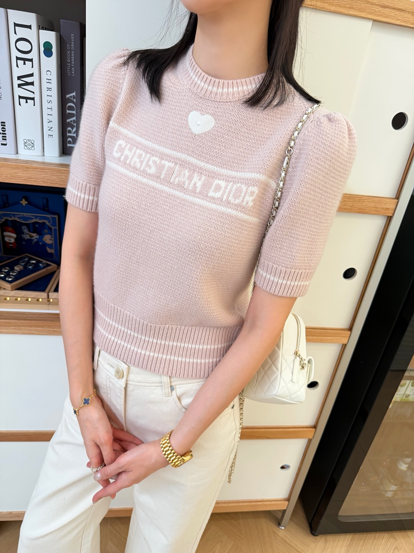 2025秋冬新品 D家 愛心珍珠針織短袖