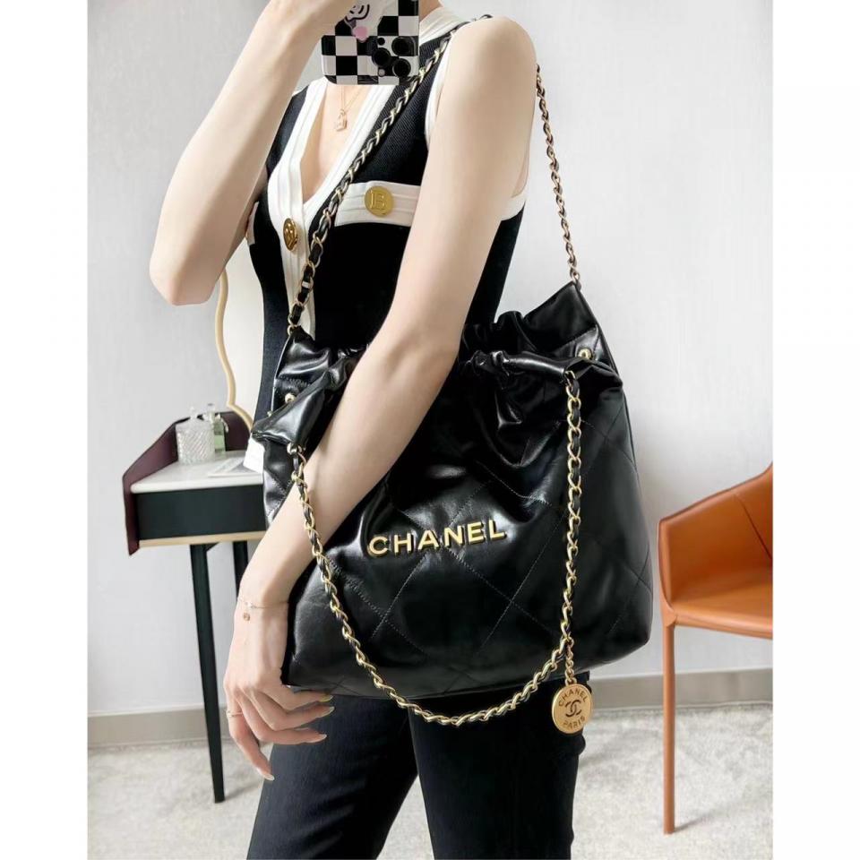 2022春夏新品 超級火爆款 22bag字母單肩購物袋 黑色金扣(小號)