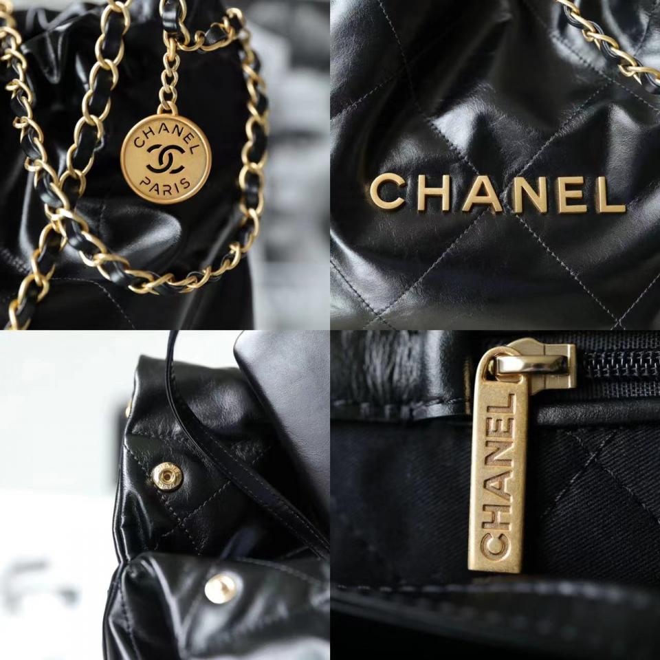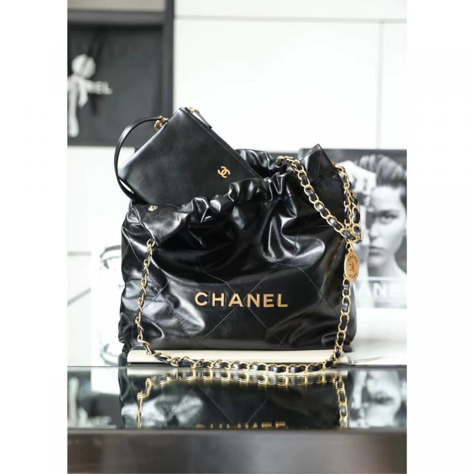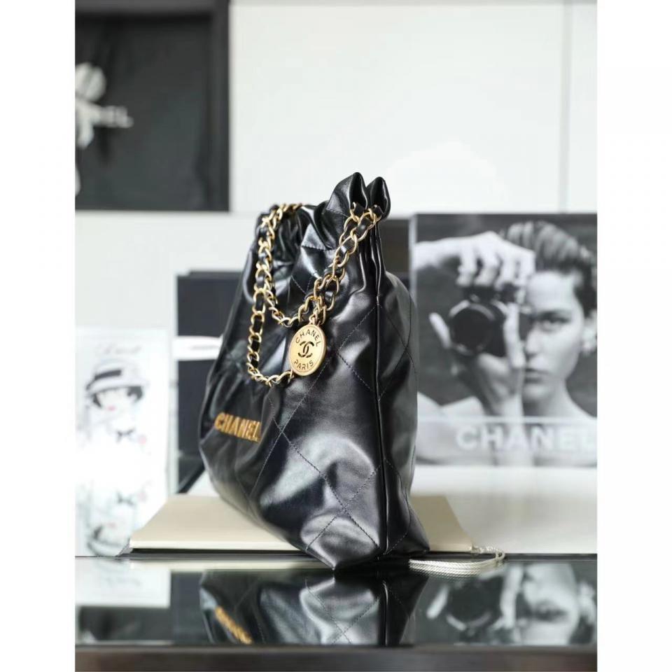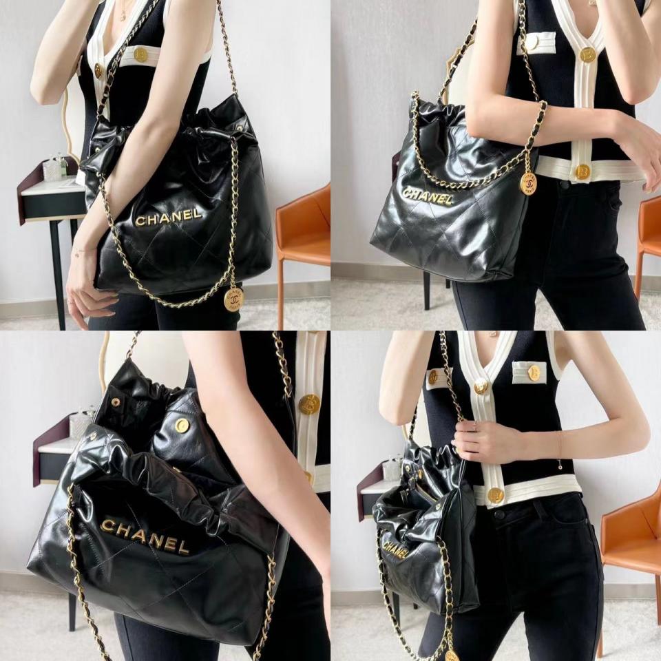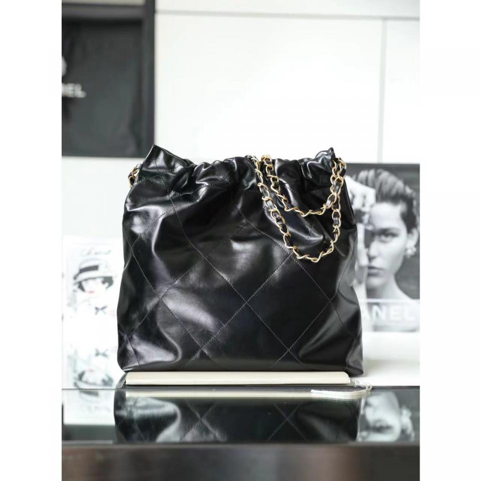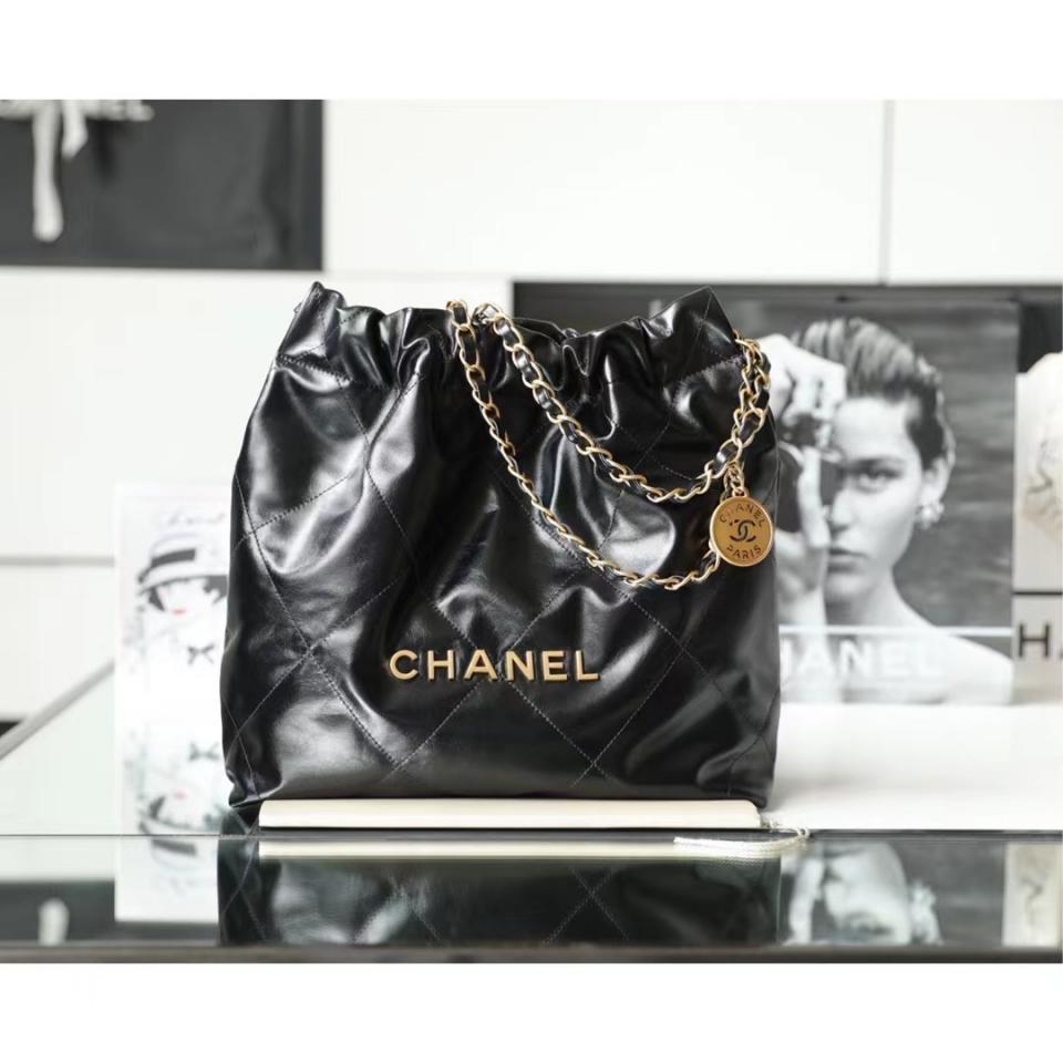 C家22bag字母單肩購物袋 黑色金扣(小號)