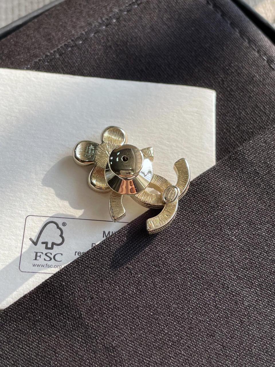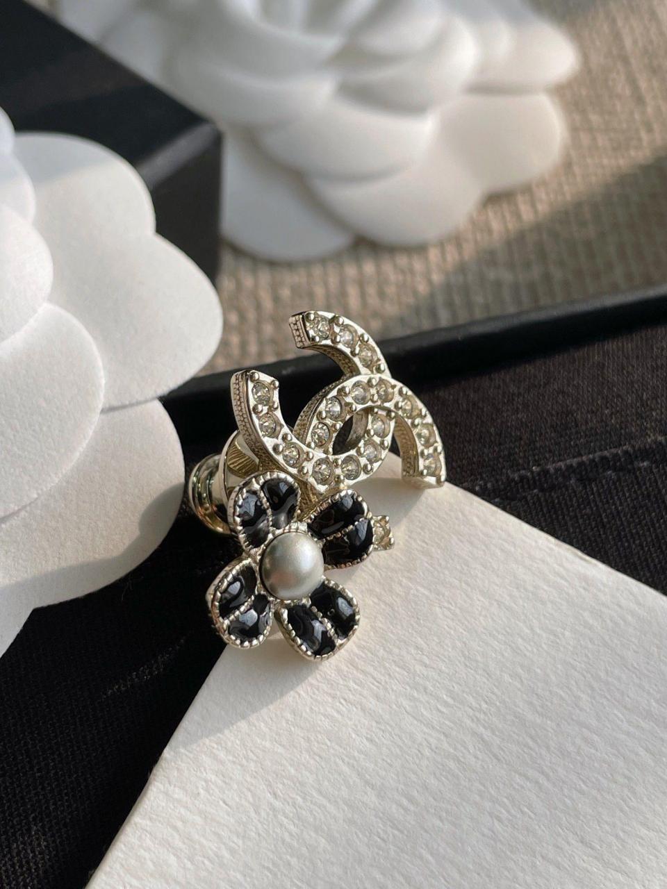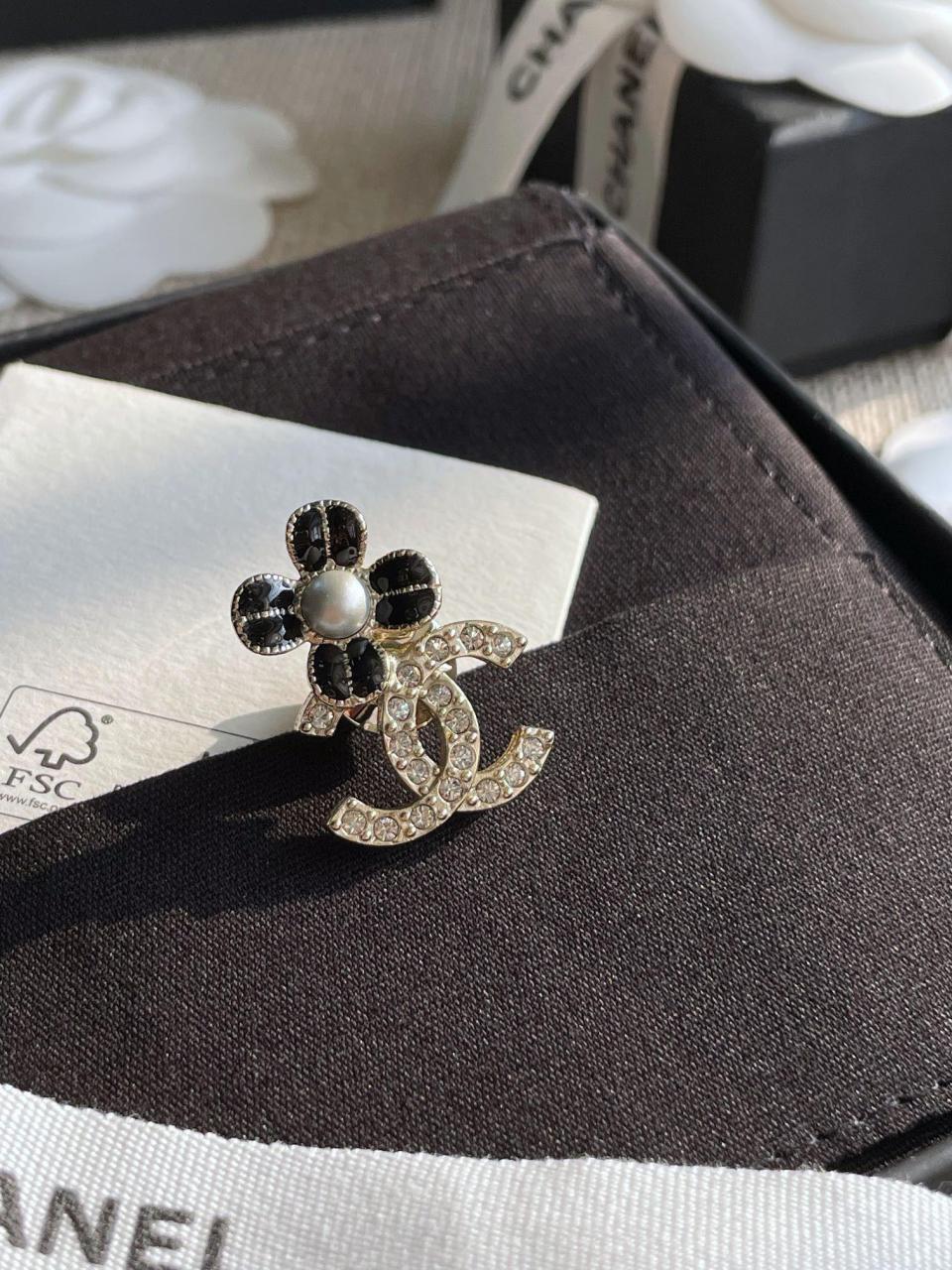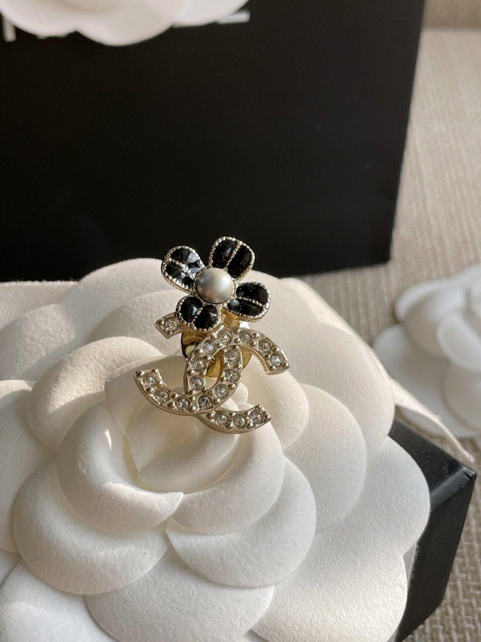 超級百搭經典!小巧的尺寸疊搭最佳選擇,黑色滴油的花瓣搭配淺金色不規則邊緣,低調而精緻,加上雙c上顆顆施華洛鑽超bling,小巧又不失存在感,背面純手工拉絲工藝,簡約而不簡單!