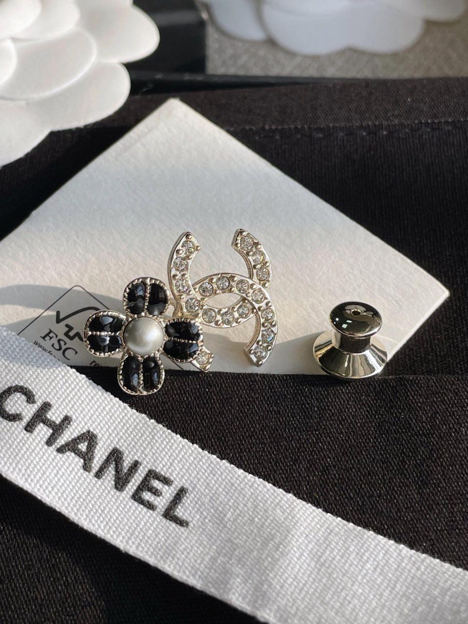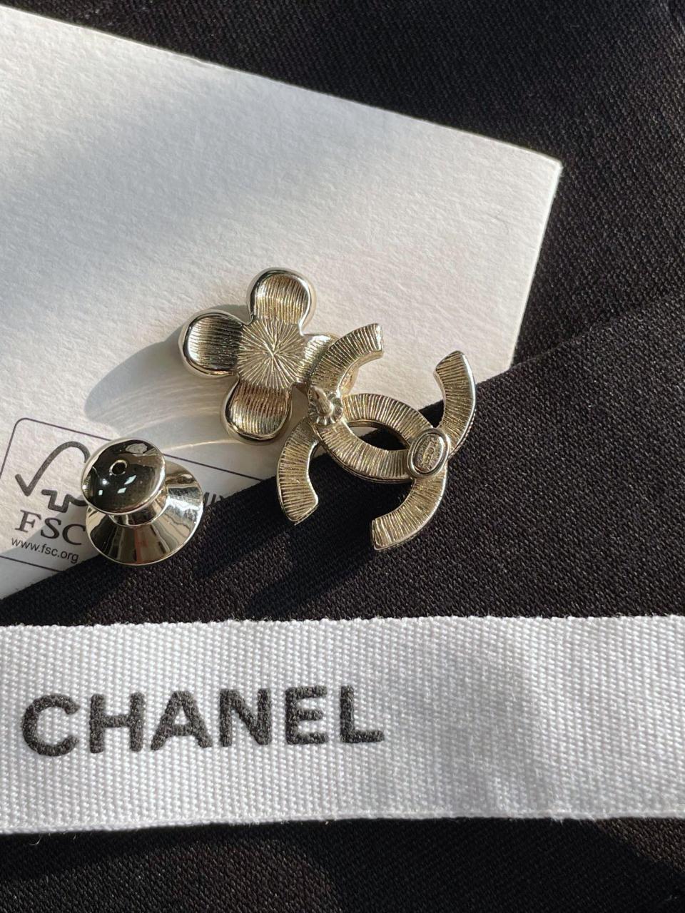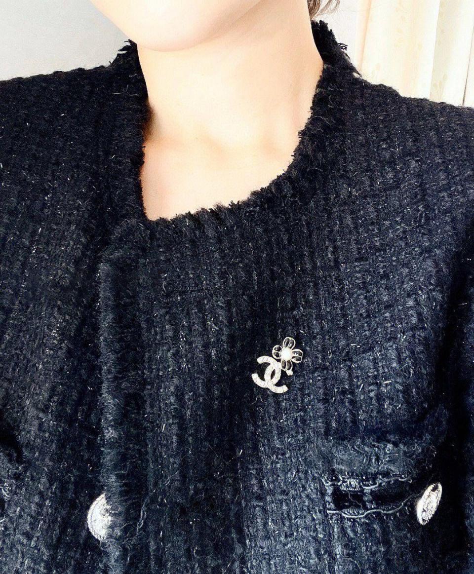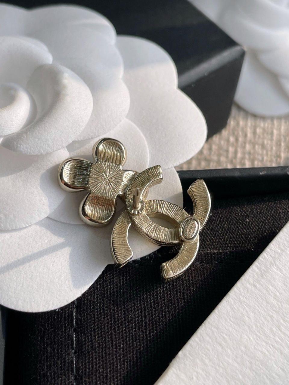 超級百搭經典!小巧的尺寸疊搭最佳選擇,黑色滴油的花瓣搭配淺金色不規則邊緣,低調而精緻,加上雙c上顆顆施華洛鑽超bling,小巧又不失存在感,背面純手工拉絲工藝,簡約而不簡單!