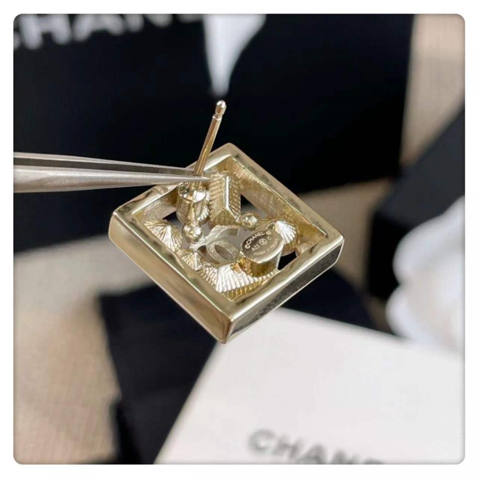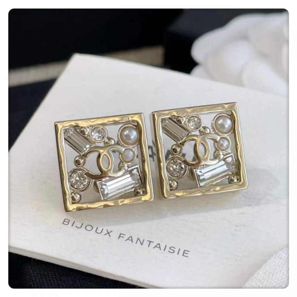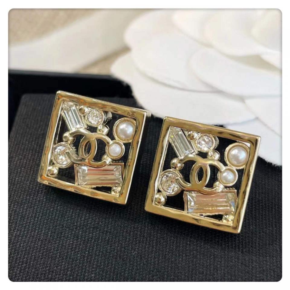 2022早春 C家方形珠鑽耳釘
