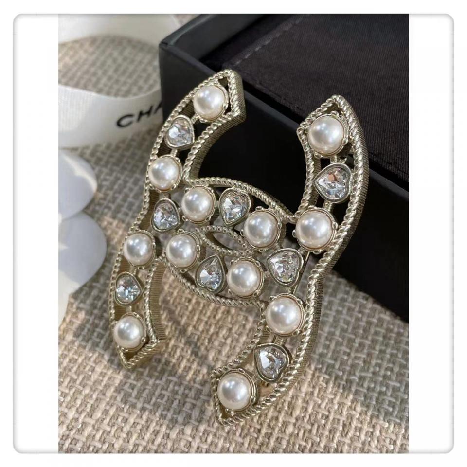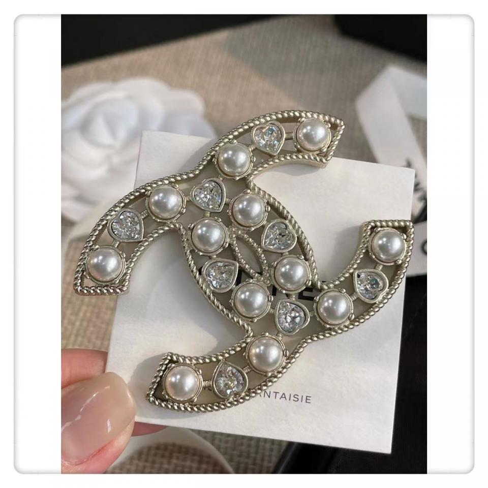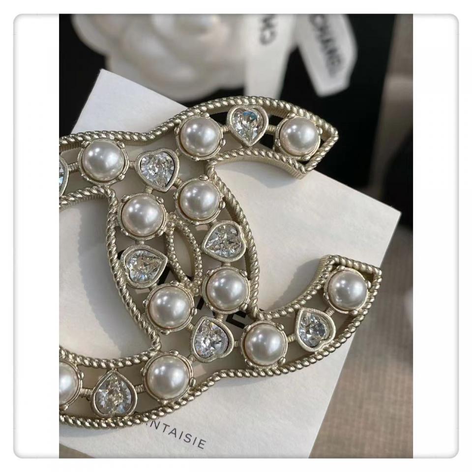2022春夏 C家鏤空愛心水晶珍珠胸針