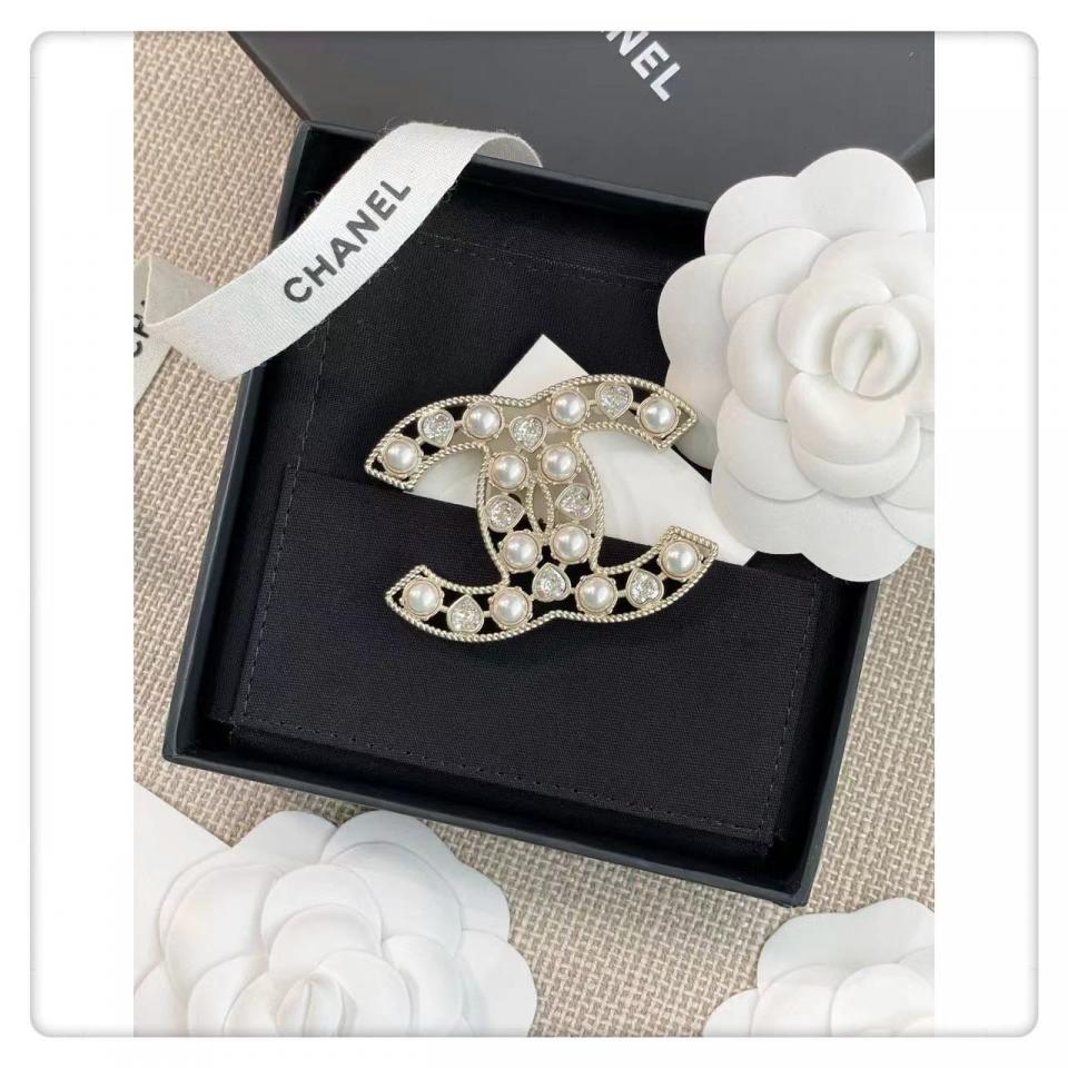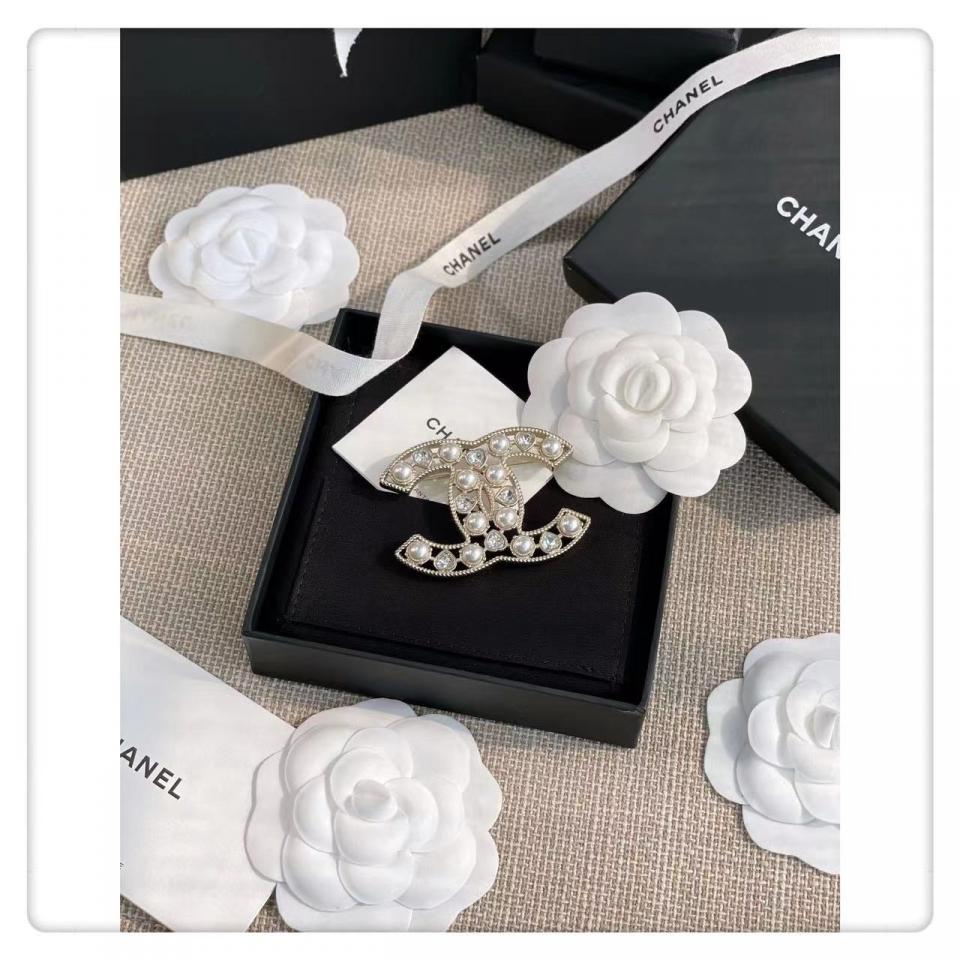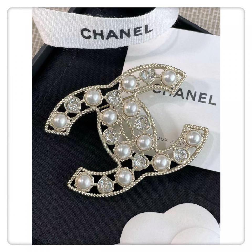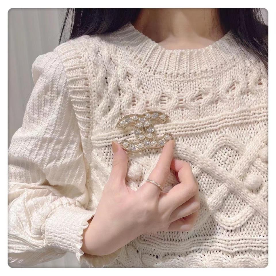 2022春夏 C家鏤空愛心水晶珍珠胸針