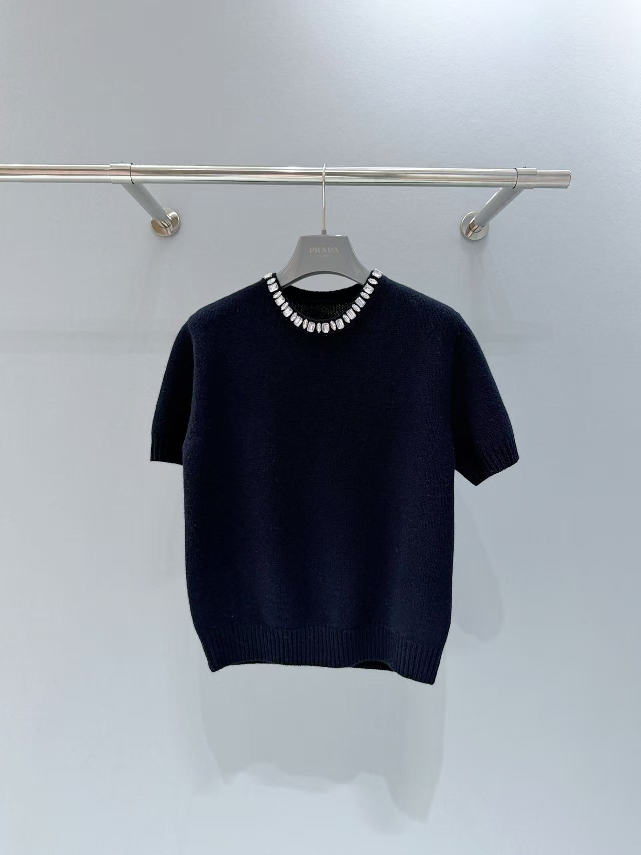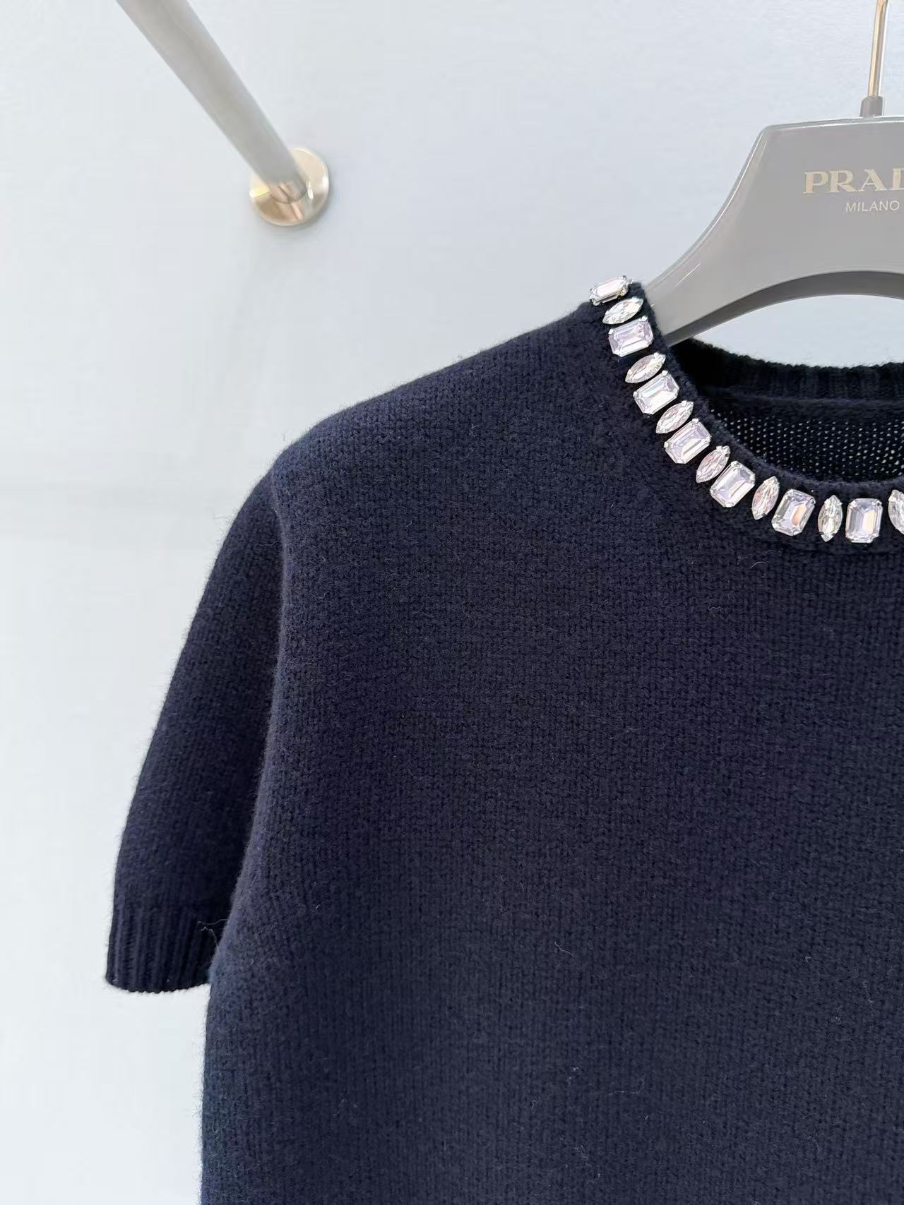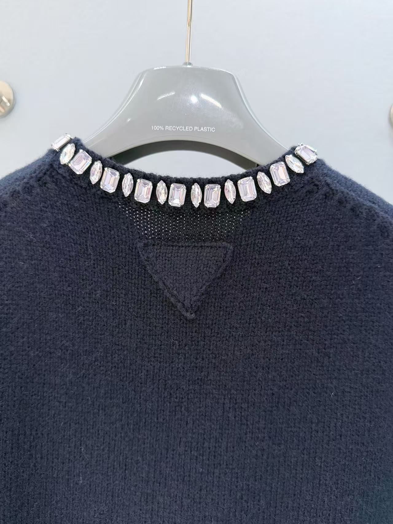 2025秋冬 PD家 領口鑲鑽羊絨短袖